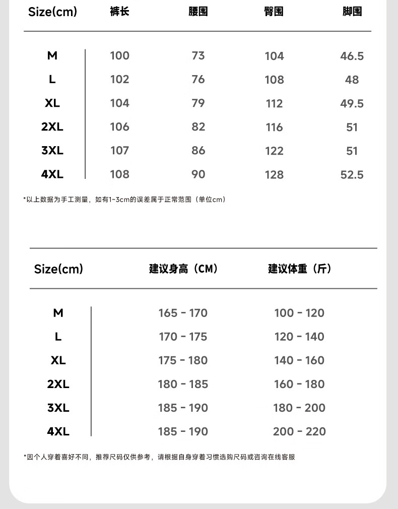 Outseam (cm) 99 cm 101.5 cm 104 cm 106.5 cm 109 cm