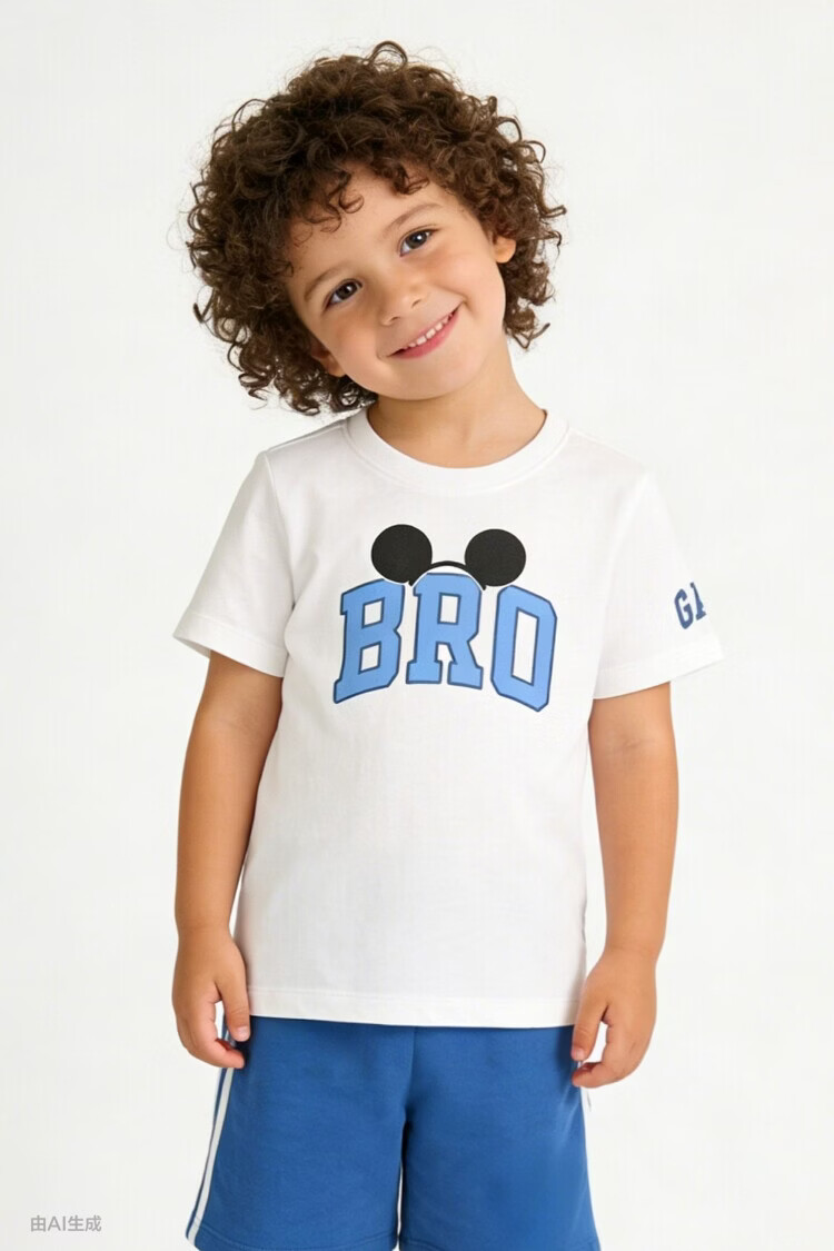 GAP (GAP) Boys 2026 Spring New Logo Cotton Cartoon Print Short Sleeve T-shirt Children's Clothing US Version 870479