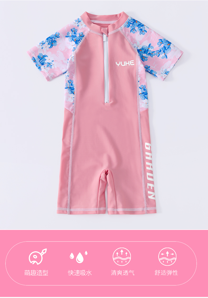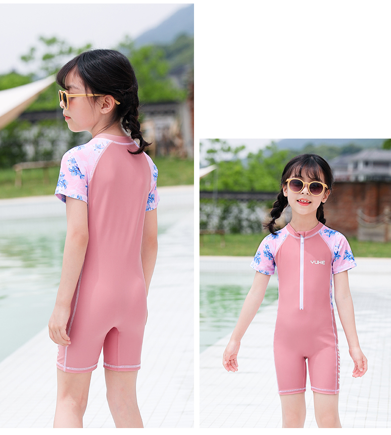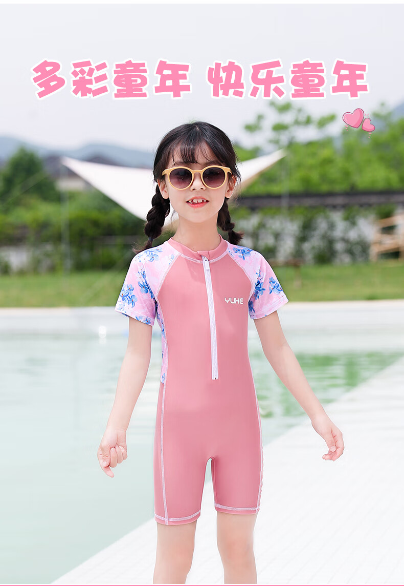 Yuke children's swimsuit girls summer 2024 new quick-drying sun protection one-piece swimsuit girls small, medium and large children baby swimsuit lilac camouflage XL size (recommended height 110 120cm)