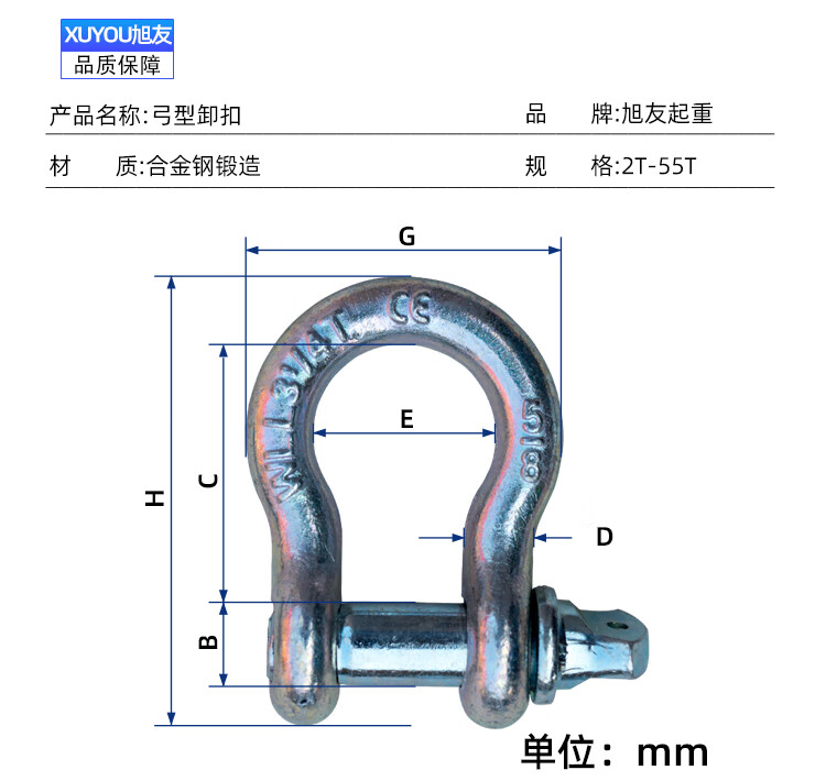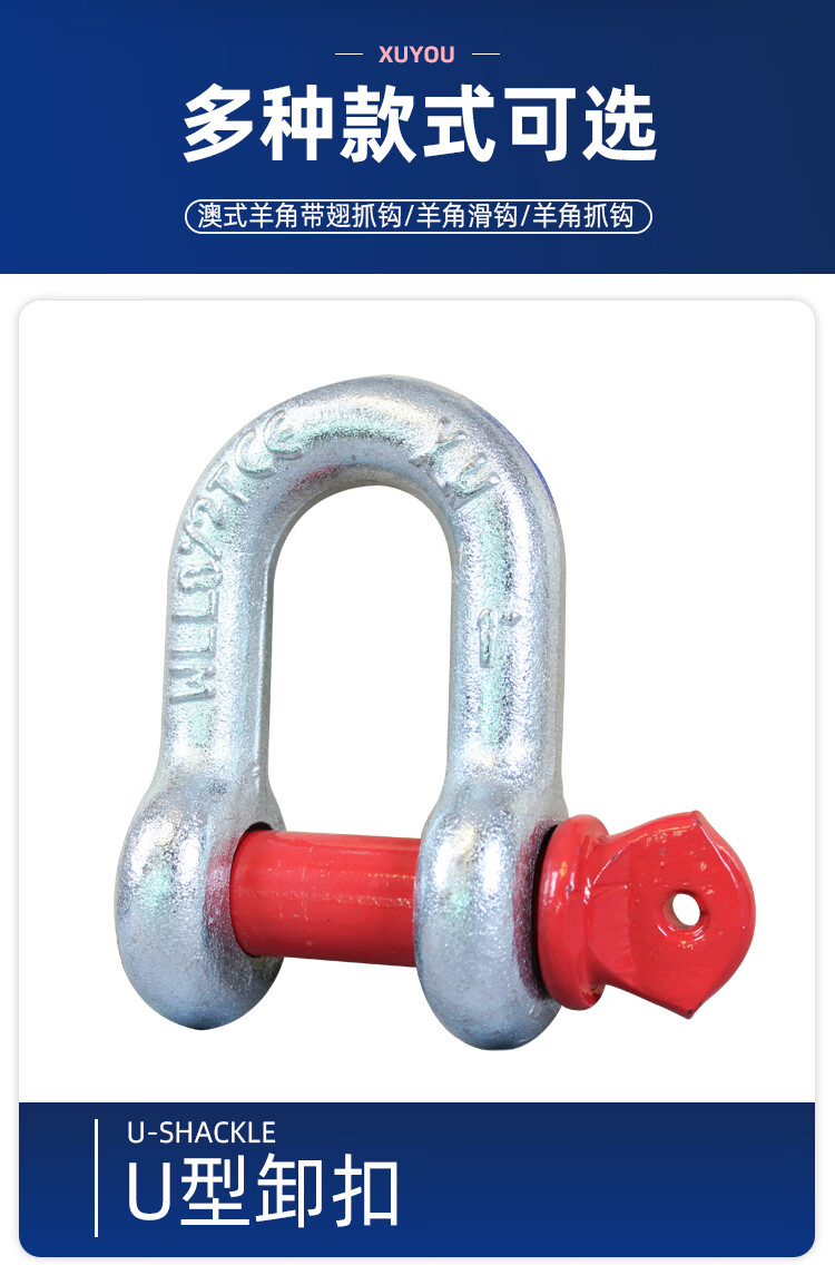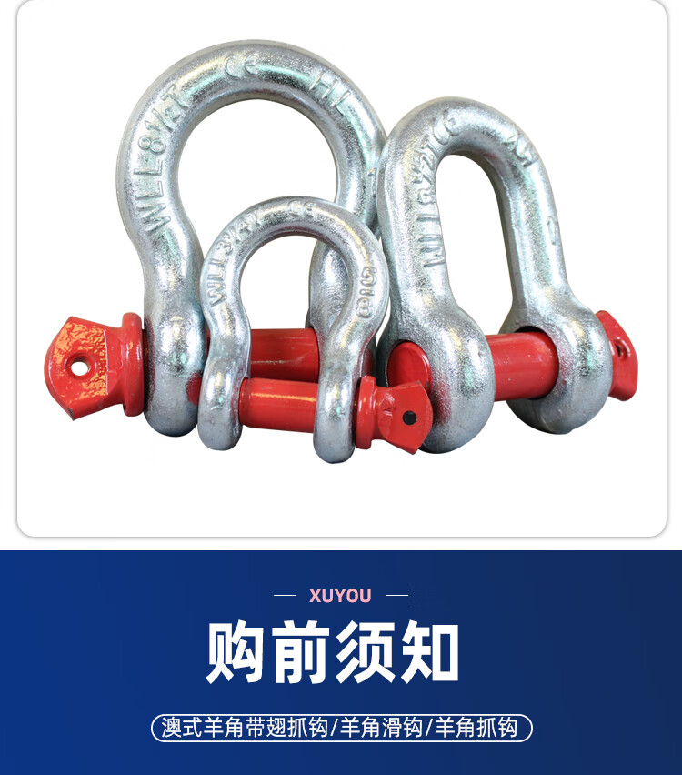 American bow shackle, high strength D-shaped U-shaped snap ring buckle, lifting and hoisting tool connection buckle, milky white, high-quality bow 35 tons
