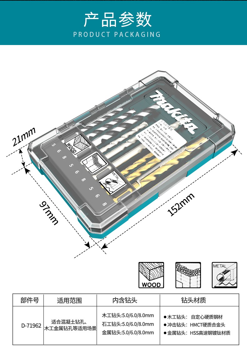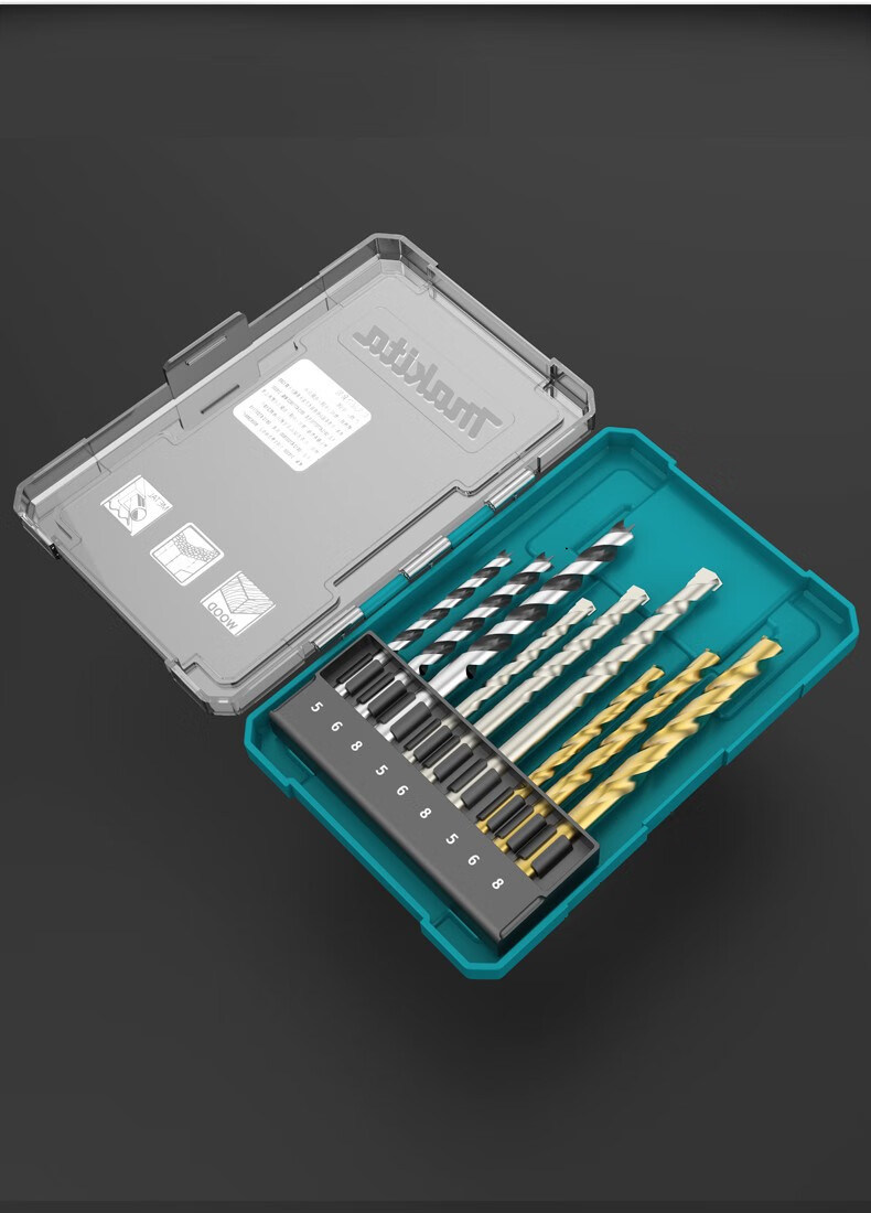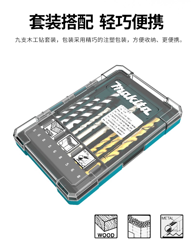 Makita Makita electric hand drill drill bit set household multi-functional combination universal wood cement steel drilling drill Makita hybrid drill 9 pieces set D-71962