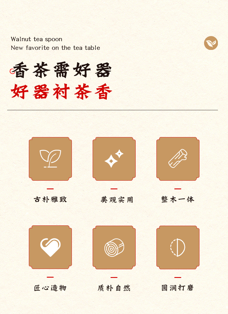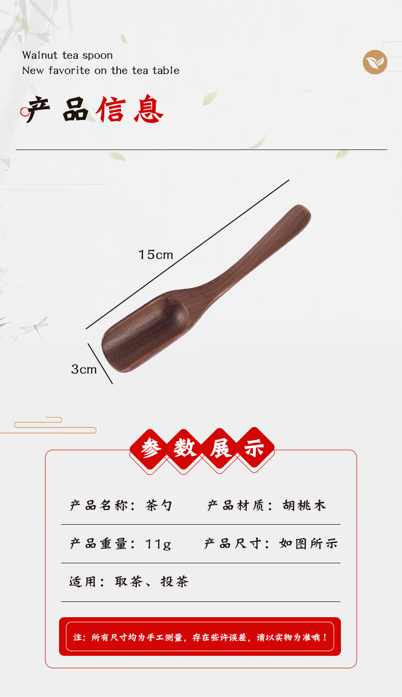 Yijuke walnut tea spoon tea spoon wooden tea spoon household Liujunzi Kung Fu tea set accessories tea spoon tea spoon walnut