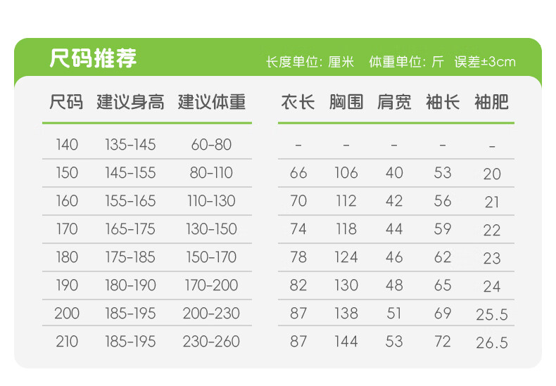 China (cm) 165 / 88-90 170 / 96-98 175 / 108-110 180 / 118-122 185 / 126-130