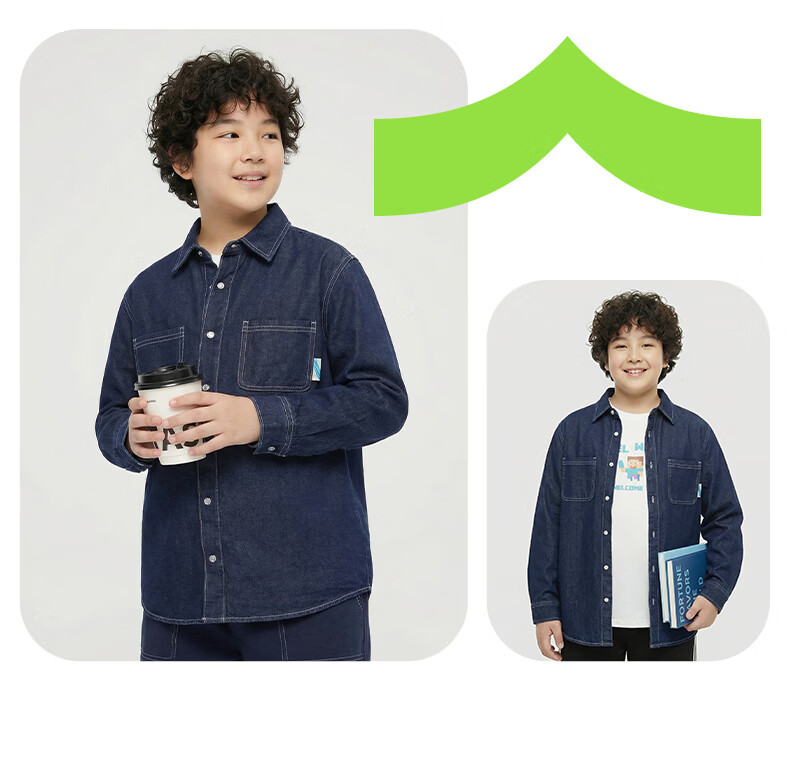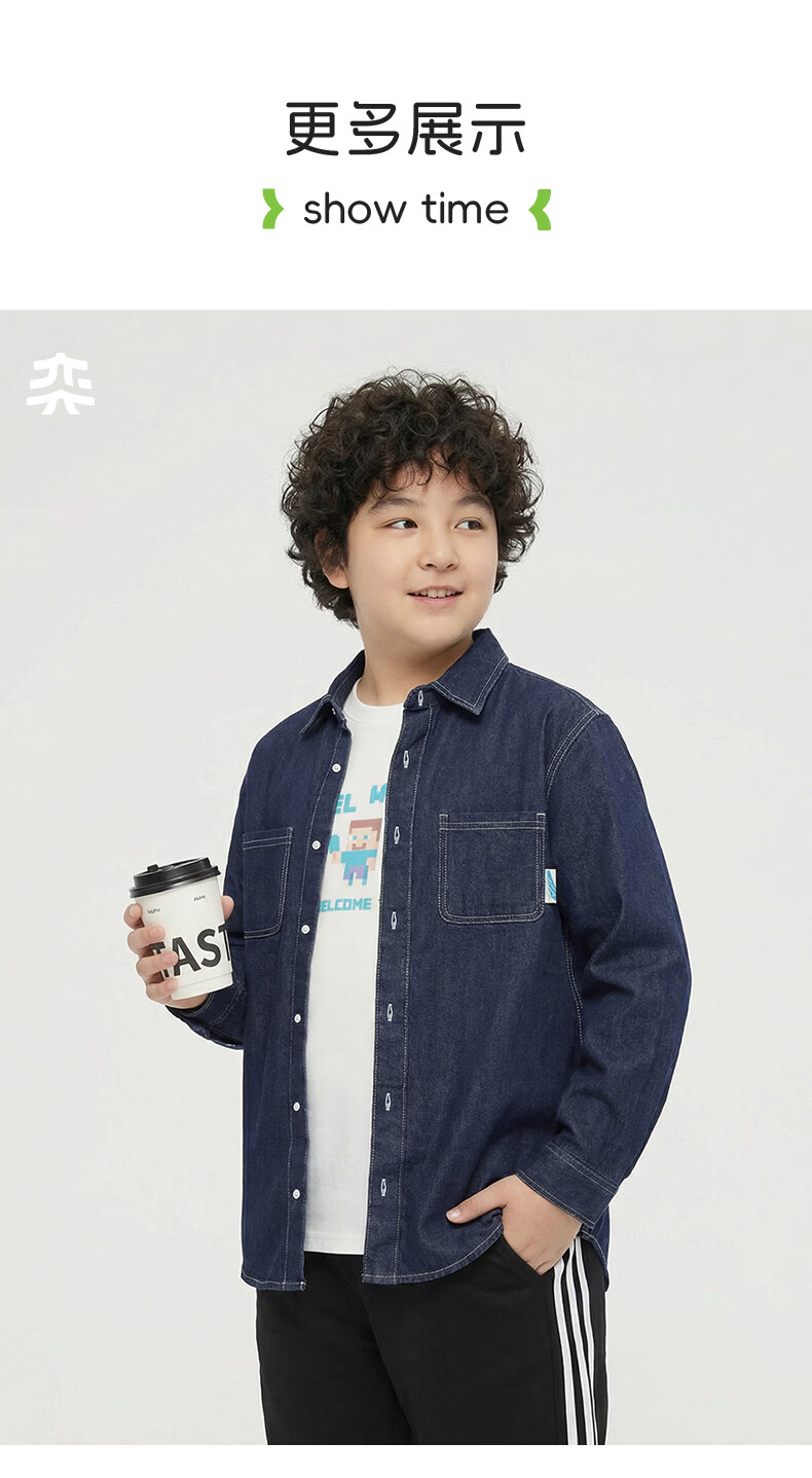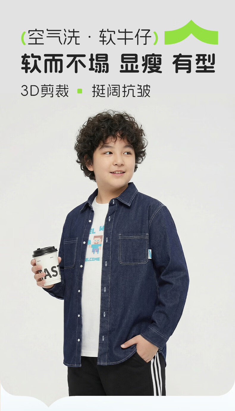 Yi Times Soft Denim Shirt Yi Times Fat Boy Denim Shirt Spring and Autumn Big Children's Shirt Jacket Loose Cardigan