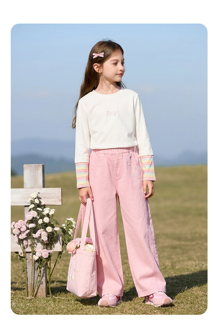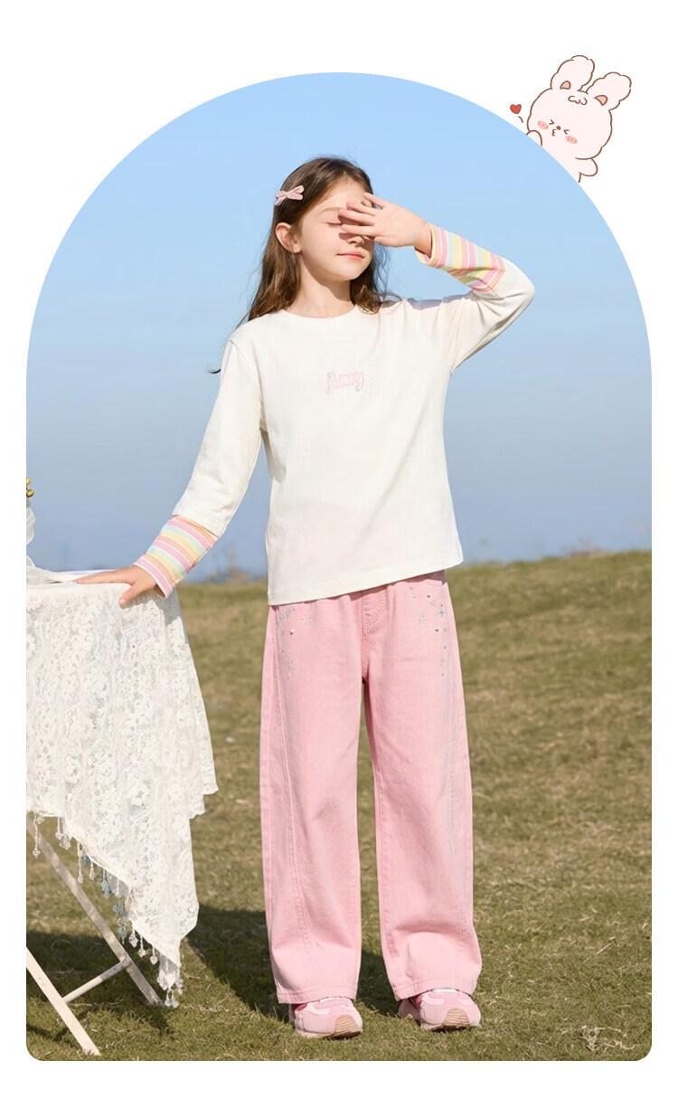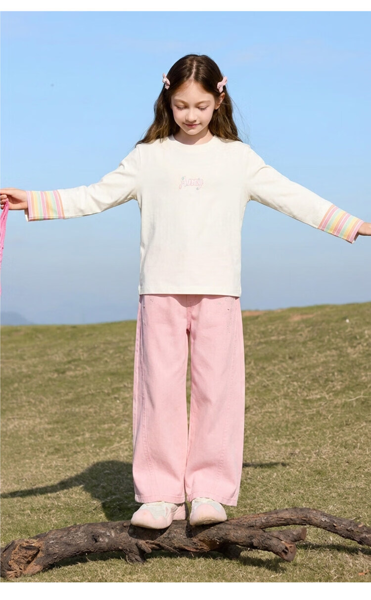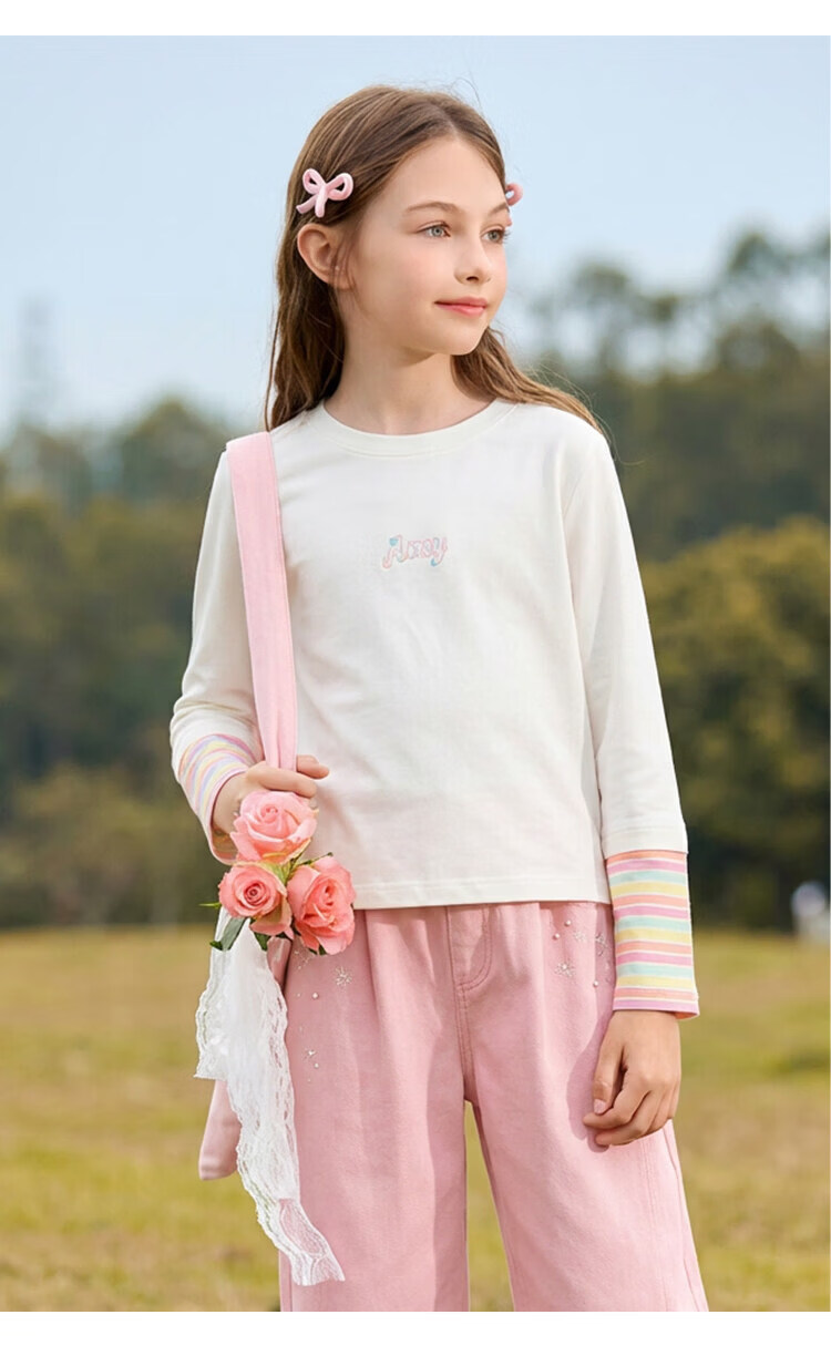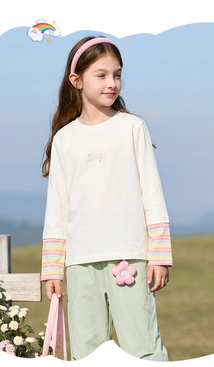 CHANZUIGOU children's clothing girls dopamine fake two-piece letter T-shirt 2026 spring new style versatile tops for women