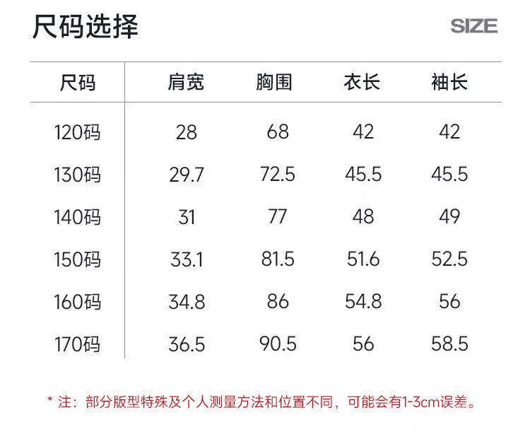 China (cm) 160-165/84-86 165-170 / 88-90 167-172 / 92-96 168-173 / 98-102 170-176 / 106-110