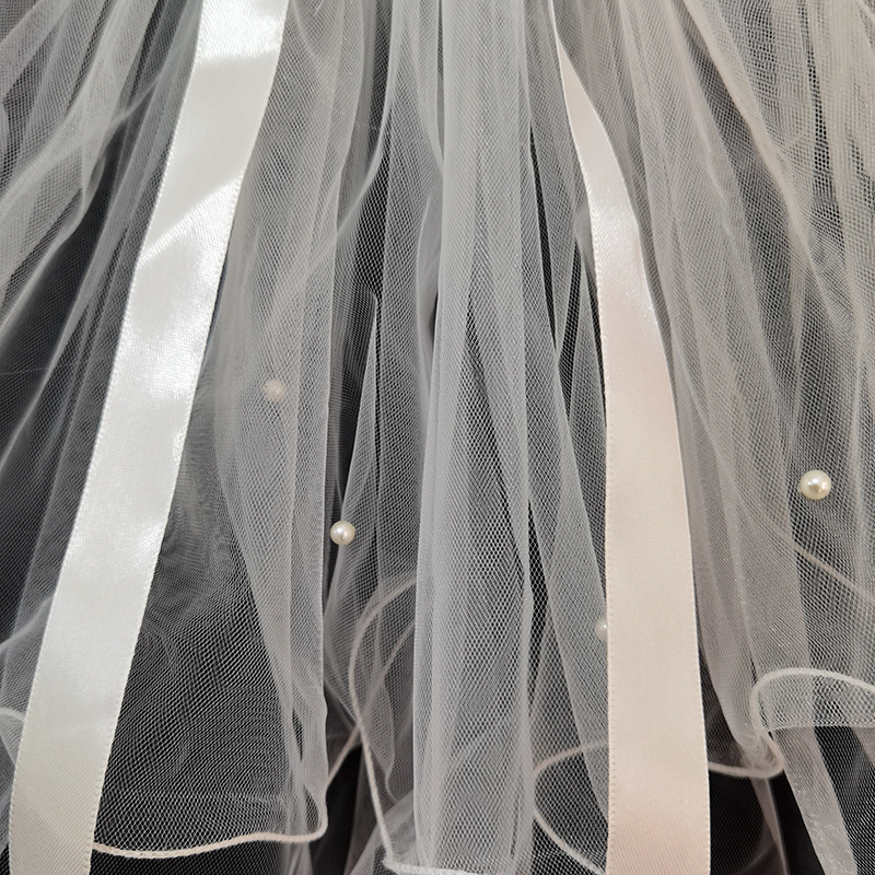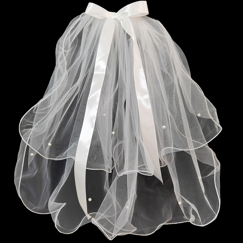 Lingmeng Korean style pearl bow veil, children's stage catwalk style headwear, parent-child veil photo props 1 piece, children's ribbon bow curling and beads 40-50