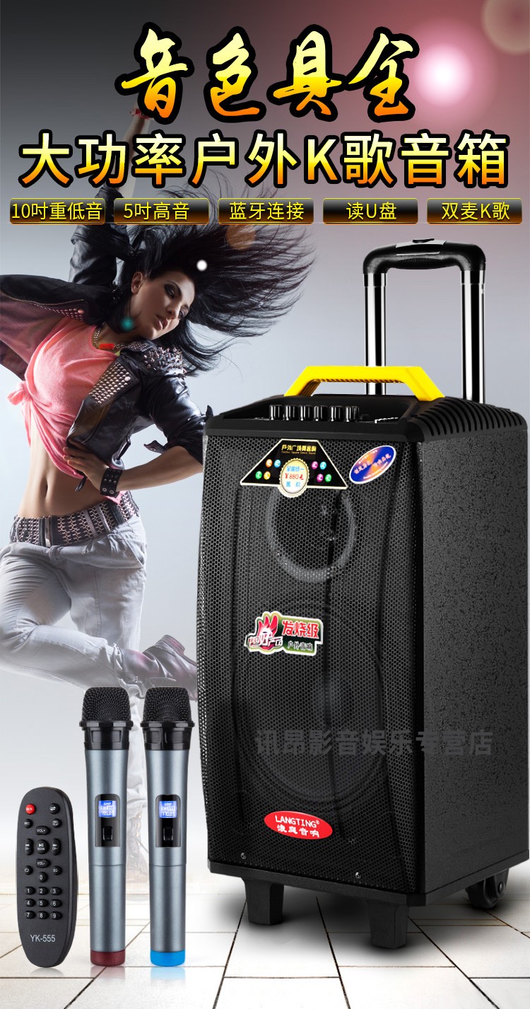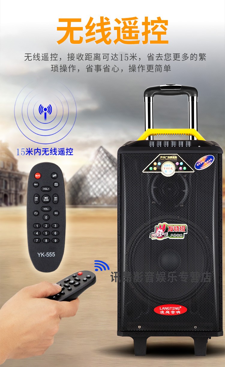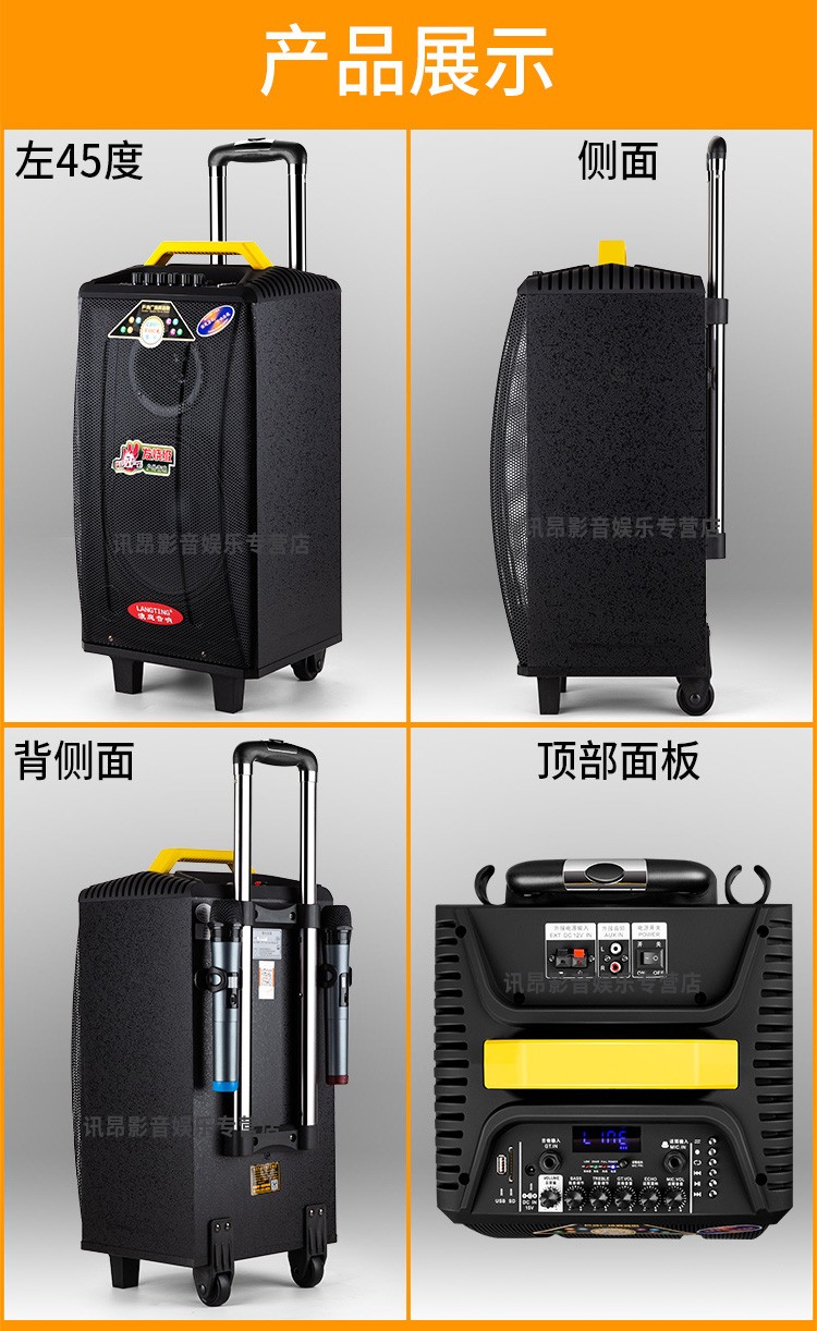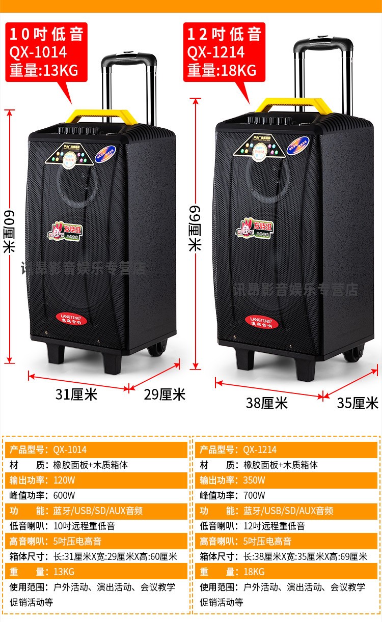 LANGTING QX1014 square dance audio professional outdoor karaoke high volume singing and dancing mobile portable trolley Bluetooth performance speaker built-in sound card version GD08-41+2 microphones