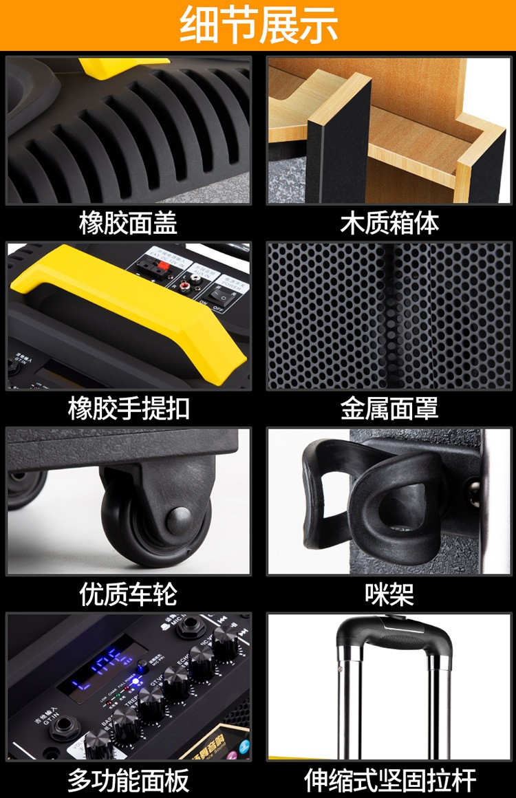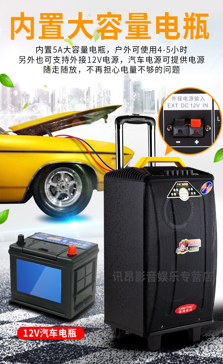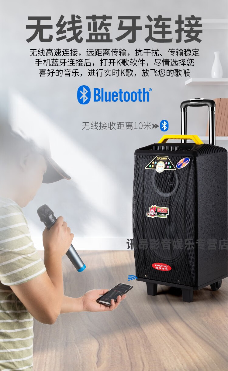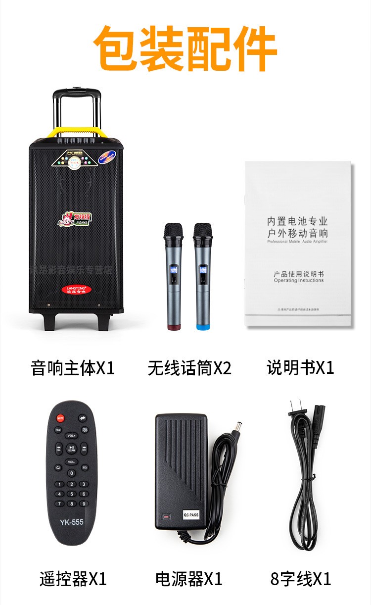 LANGTING QX1014 square dance audio professional outdoor karaoke high volume singing and dancing mobile portable trolley Bluetooth performance speaker built-in sound card version GD08-41+2 microphones