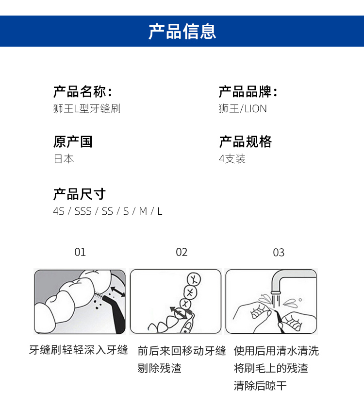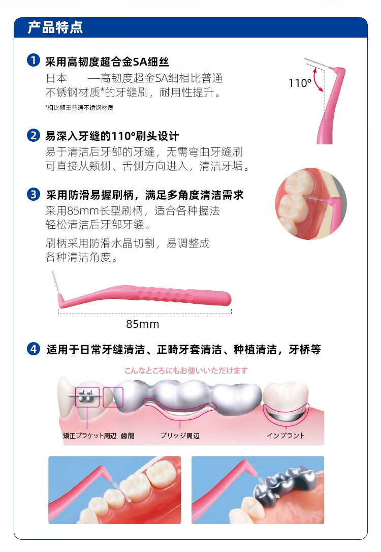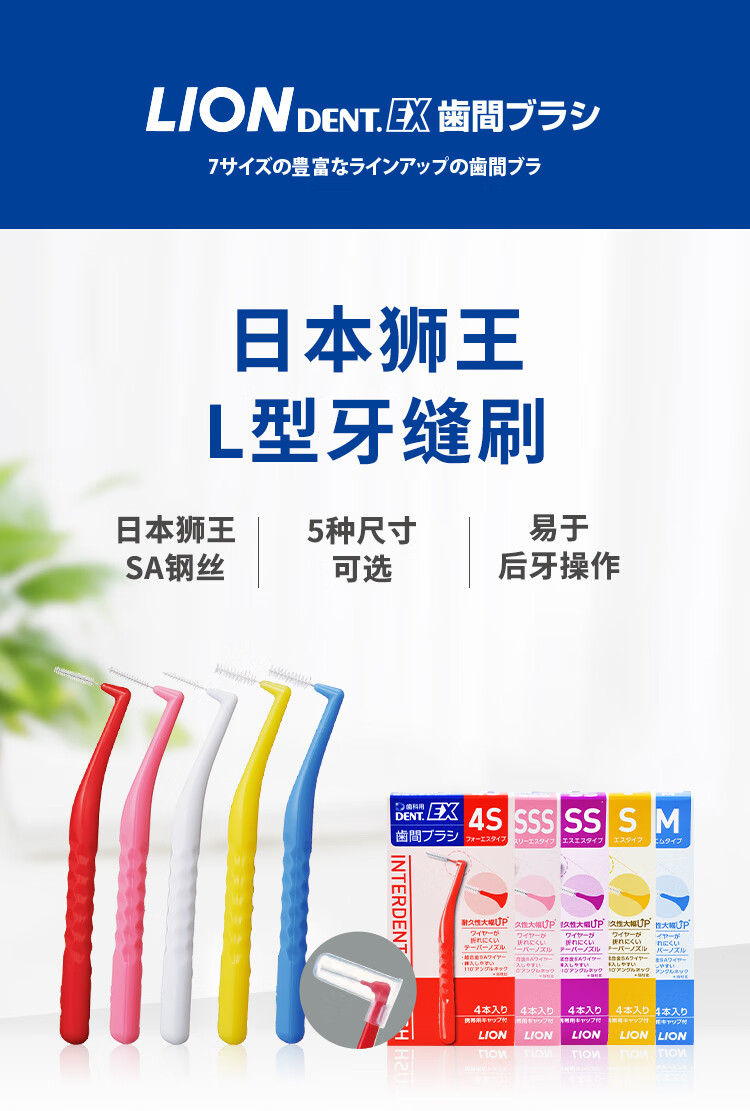 Lion L-shaped interdental brush, Japanese imported orthodontic interdental brush, correction of tooth gaps, brushing between teeth, toothbrush and braces cleaning (M-1.5mm)