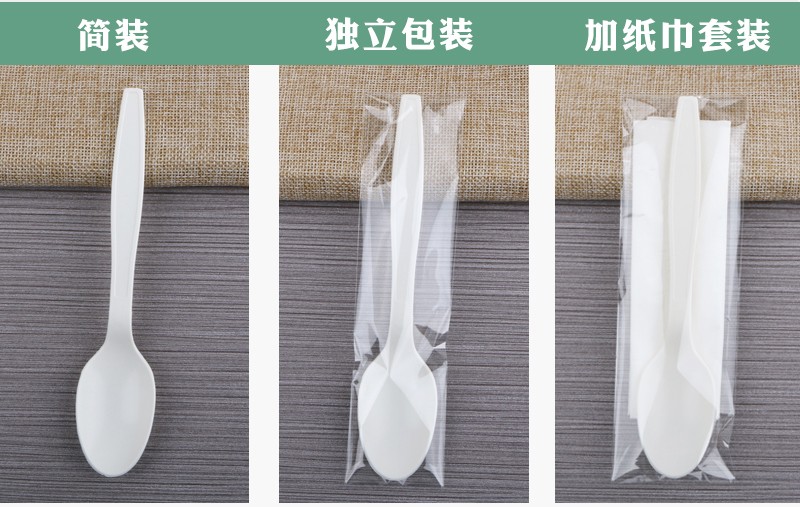 Shenfu disposable spoons and forks, biodegradable tableware, individually packaged wheat straw knife, soup spoon, restaurant spoon, single package of 100 pieces, biodegradable S170 spoon