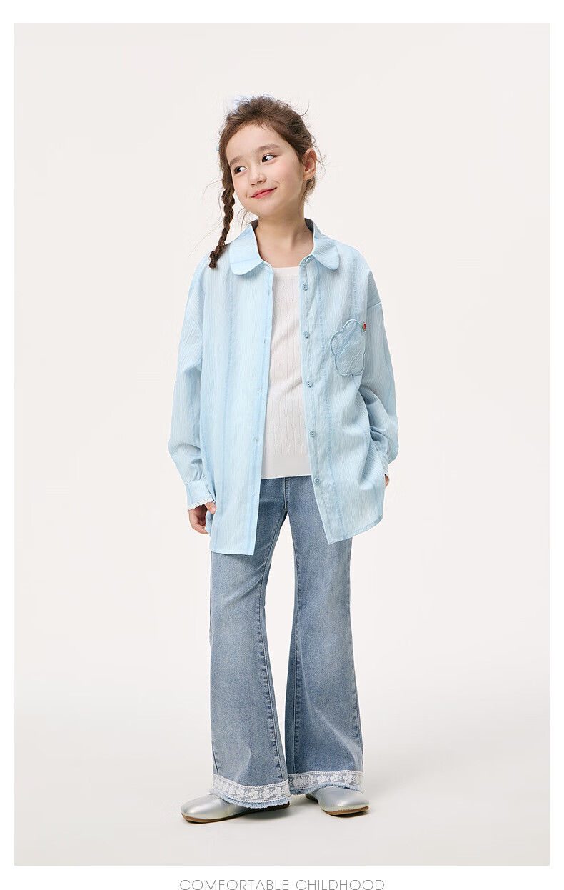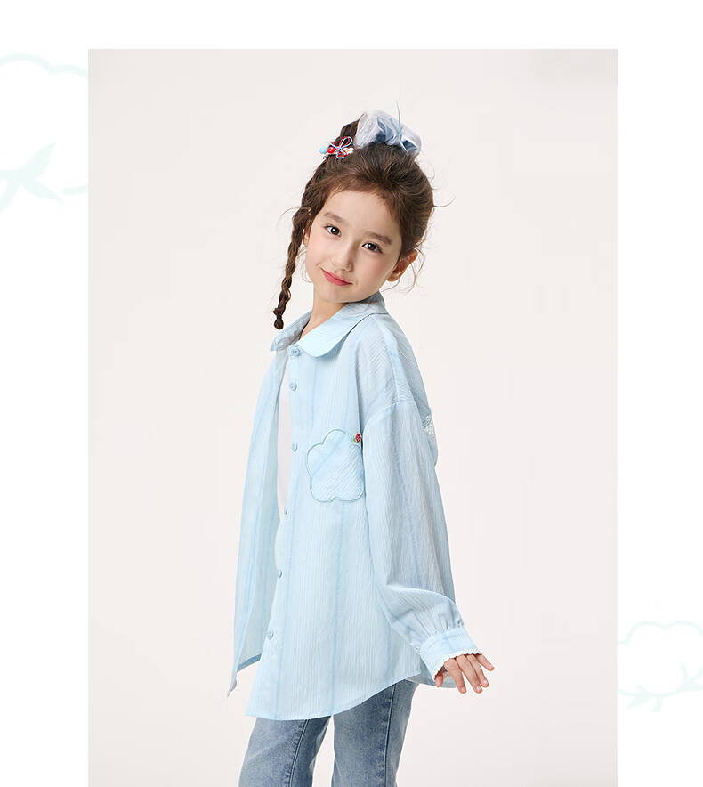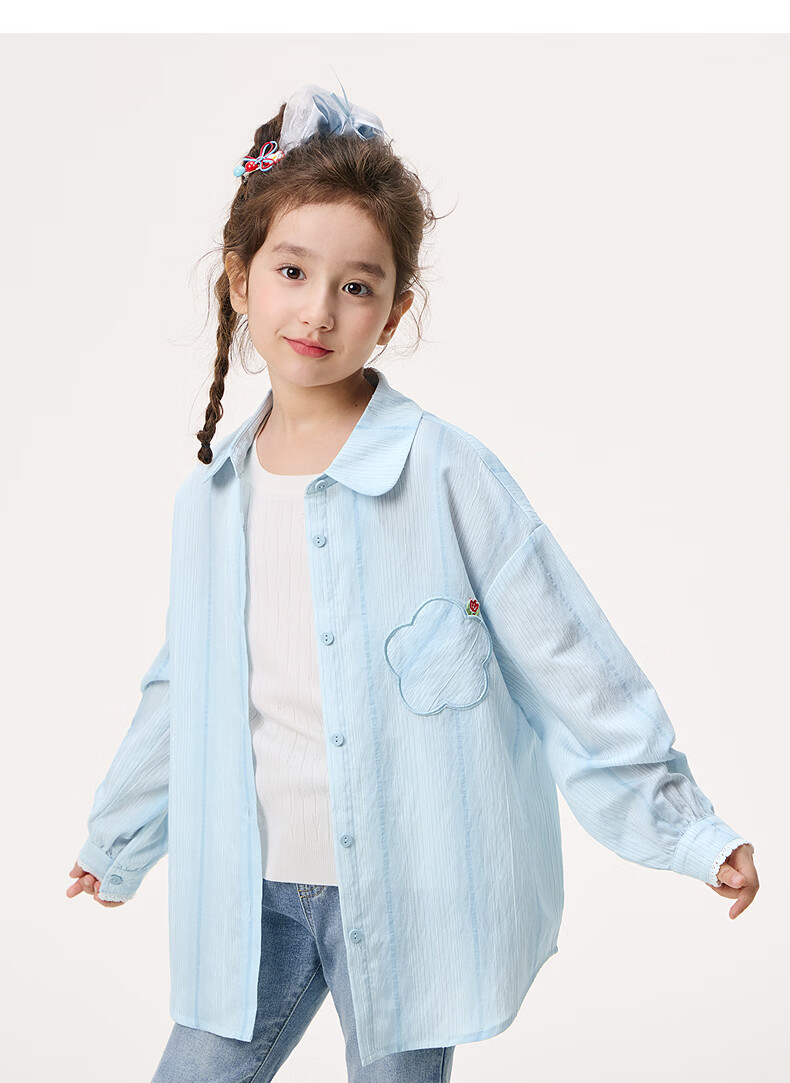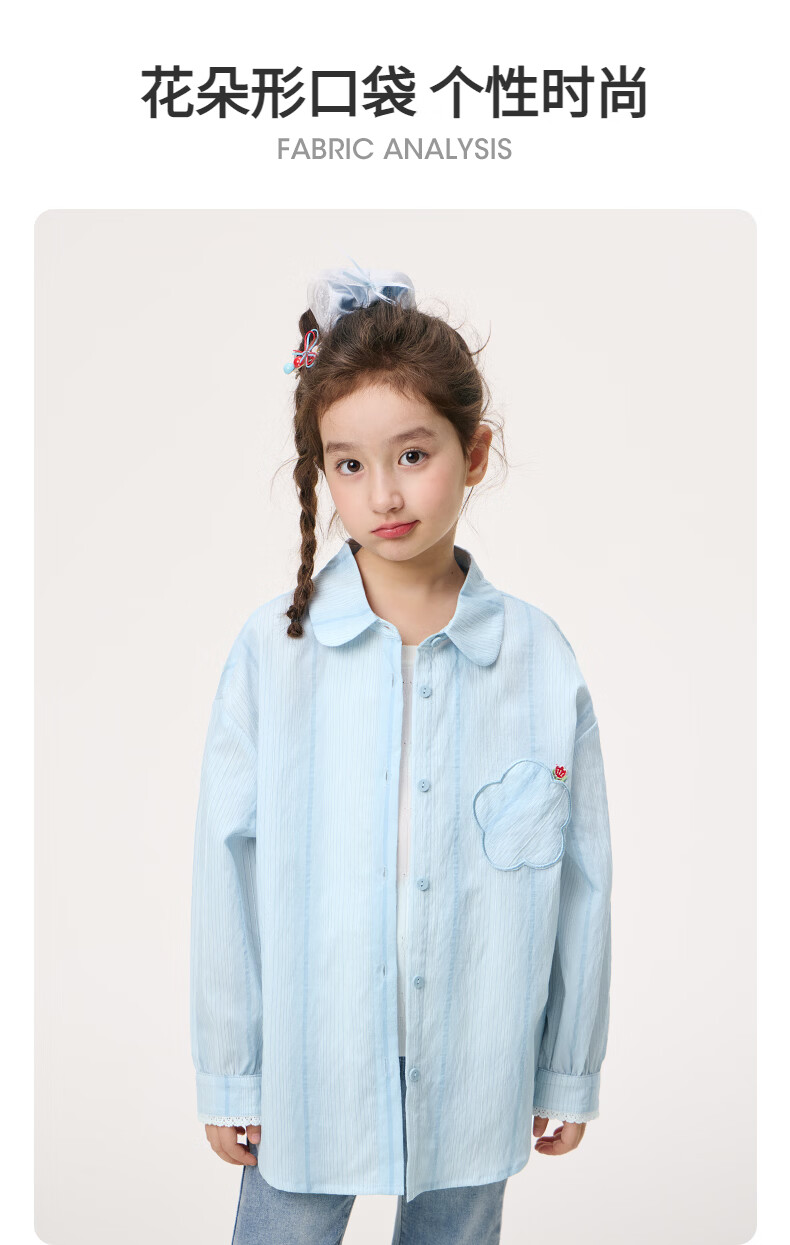 Xiaoyinman Ropa para niños Camisa Ligera y Transpirable para niñas con Bolsillos de Flores 26 Tops Informales de Moda de Primavera para niños medianos y Grandes