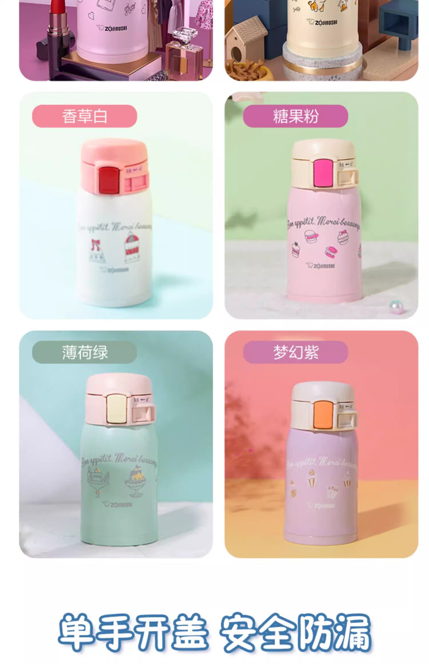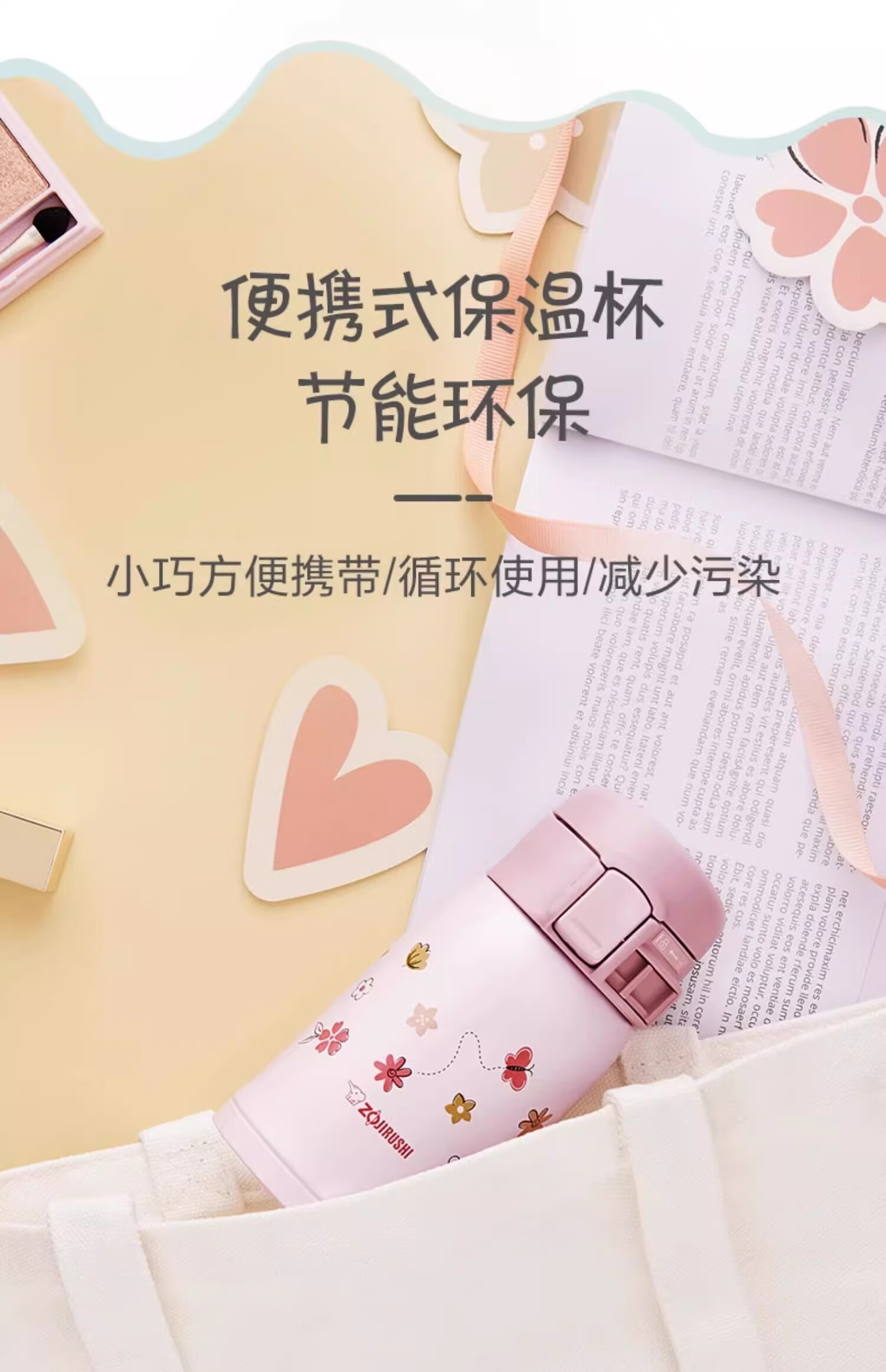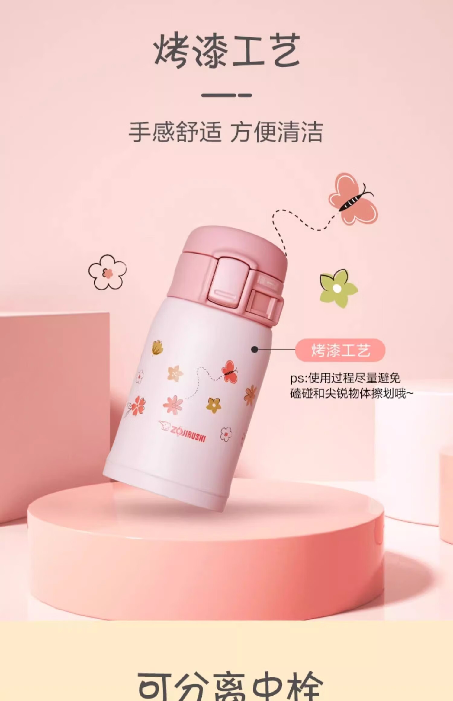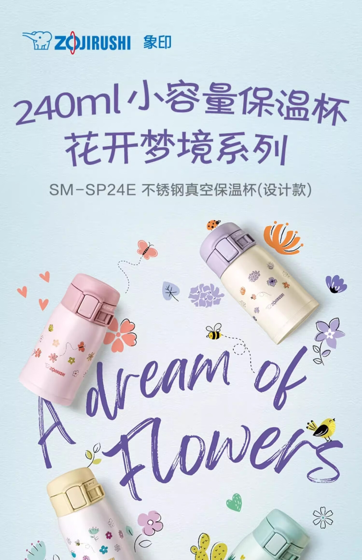 Zojirushi (ZO JIRUSHI) Zojirushi thermos cup SM-SP24 vacuum stainless steel mini compact pop-up lid design portable macaron color imported SP24E-PZ cherry blossom powder 240ml 240ml