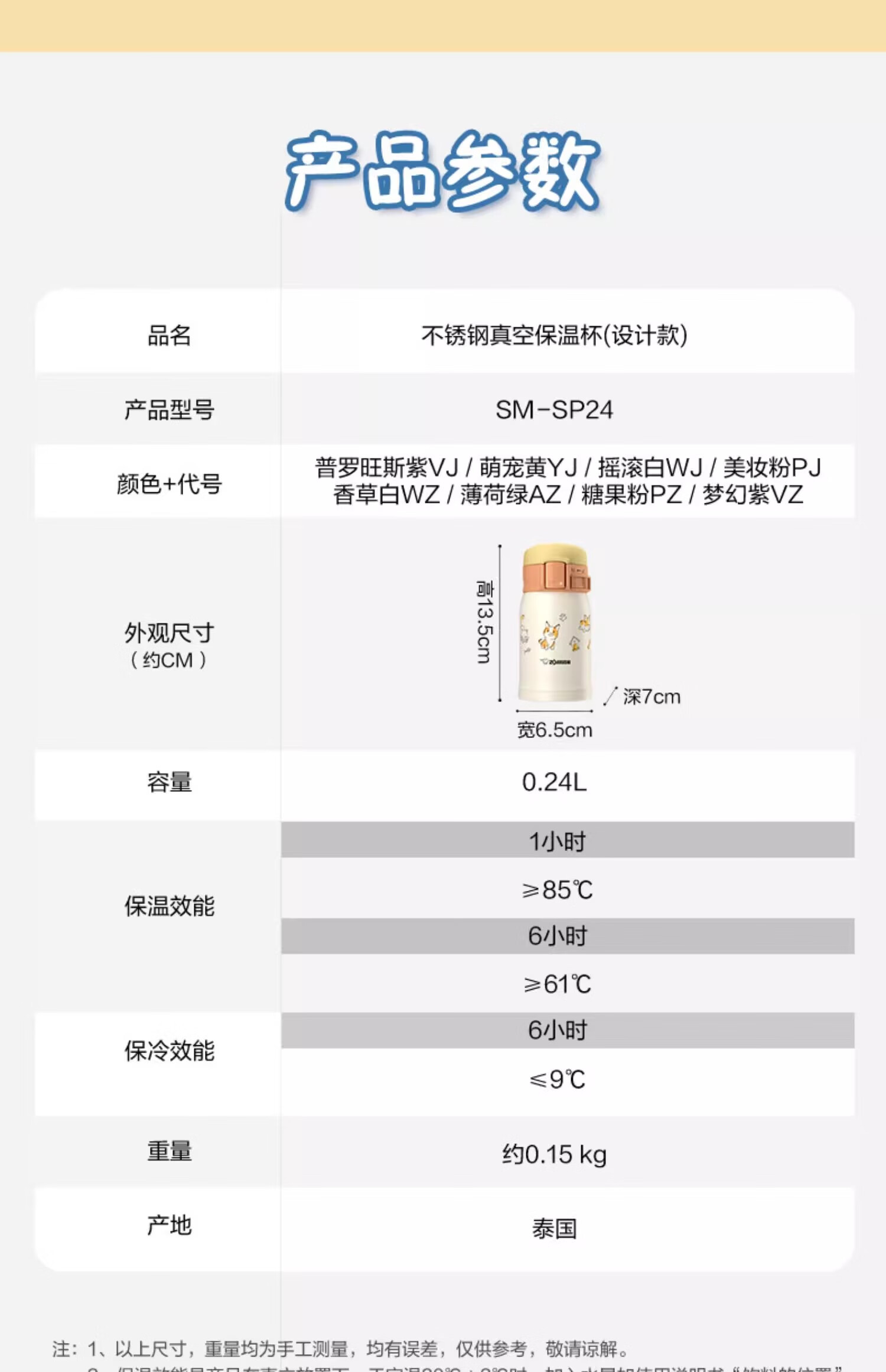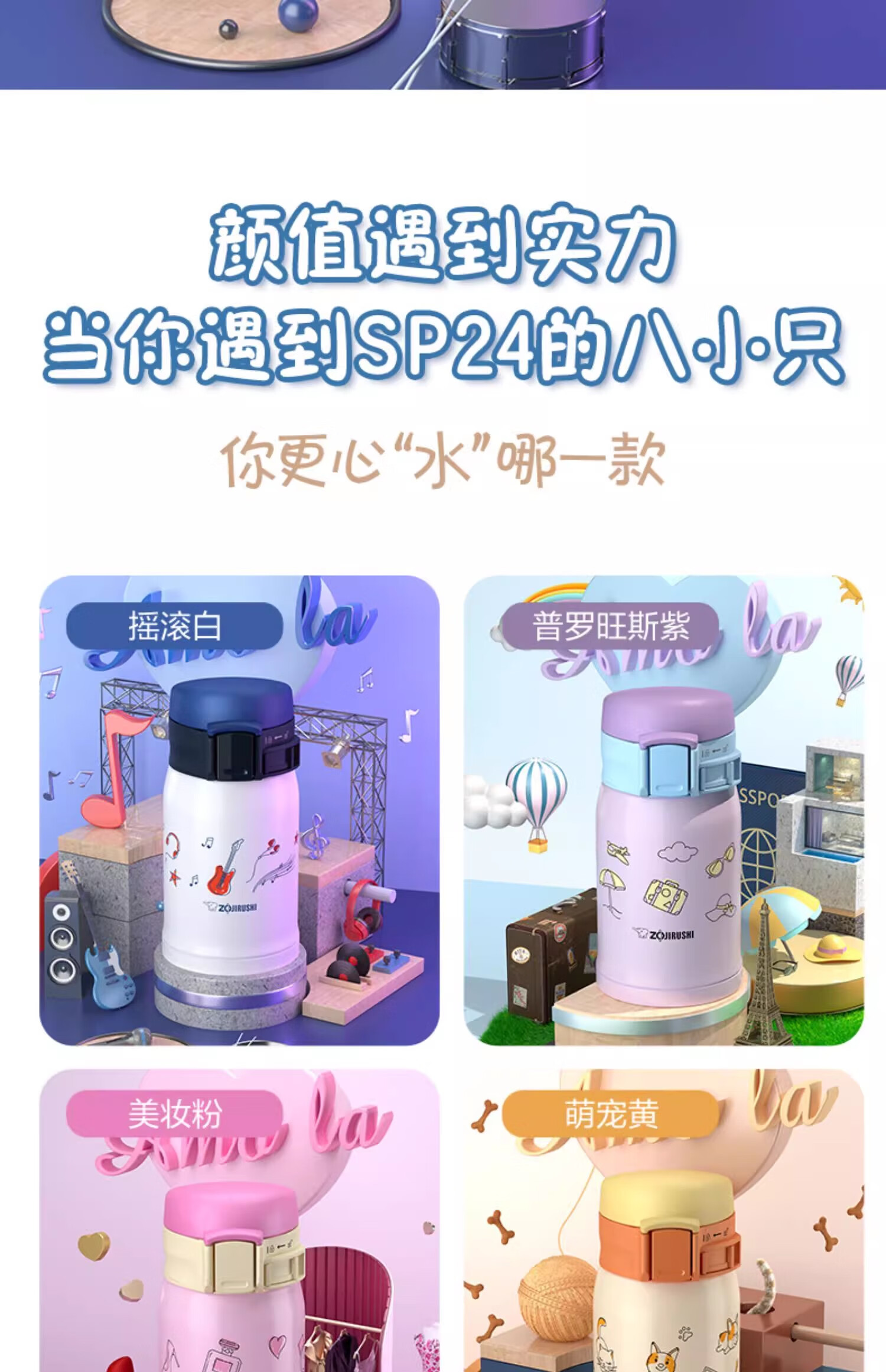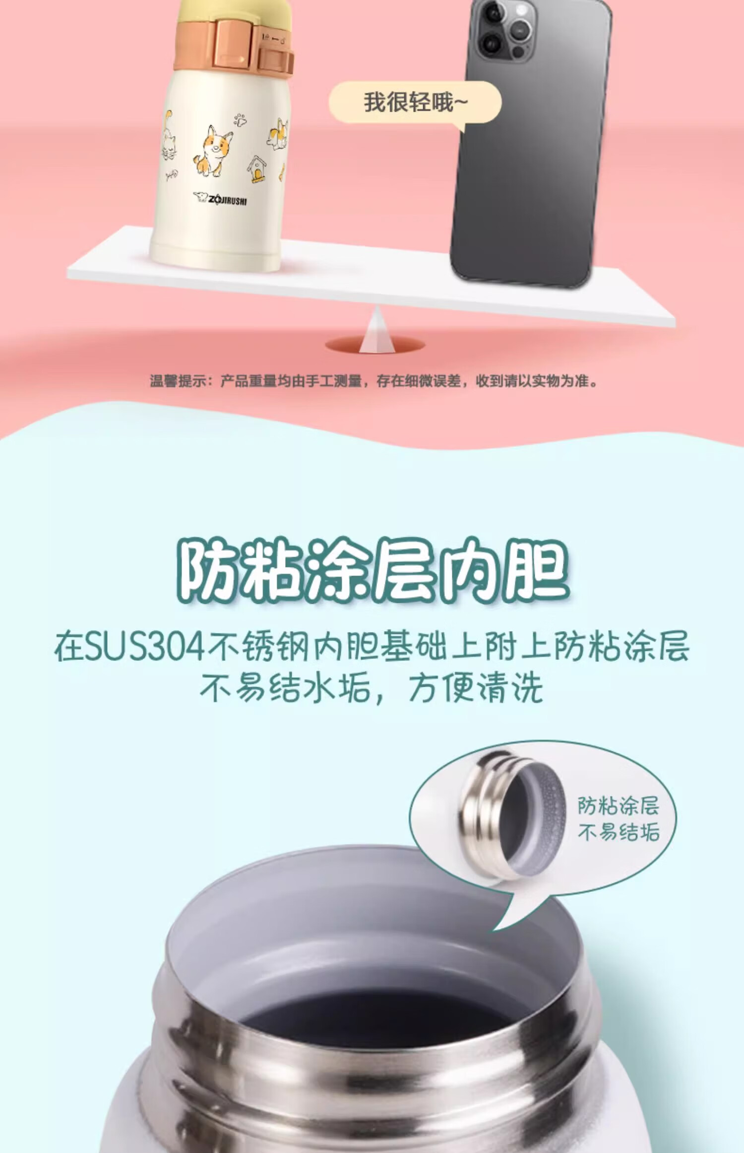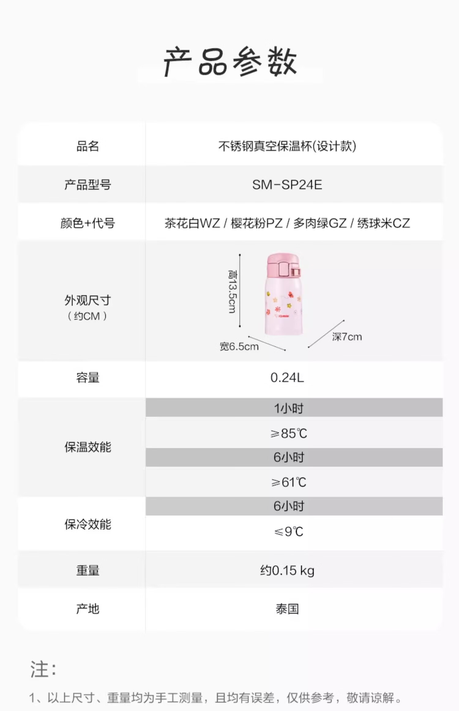 Zojirushi (ZO JIRUSHI) Zojirushi thermos cup SM-SP24 vacuum stainless steel mini compact pop-up lid design portable macaron color imported SP24E-PZ cherry blossom powder 240ml 240ml