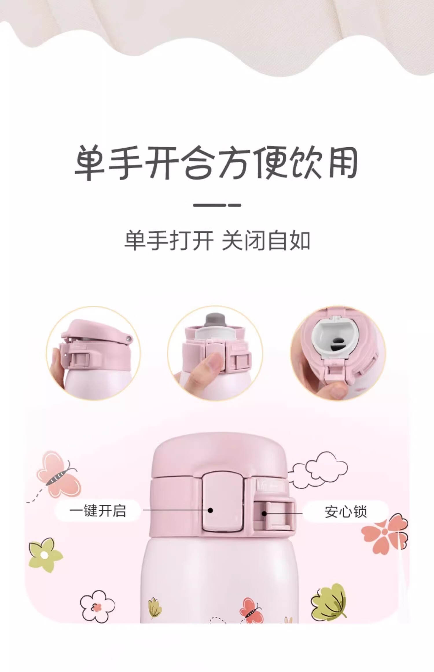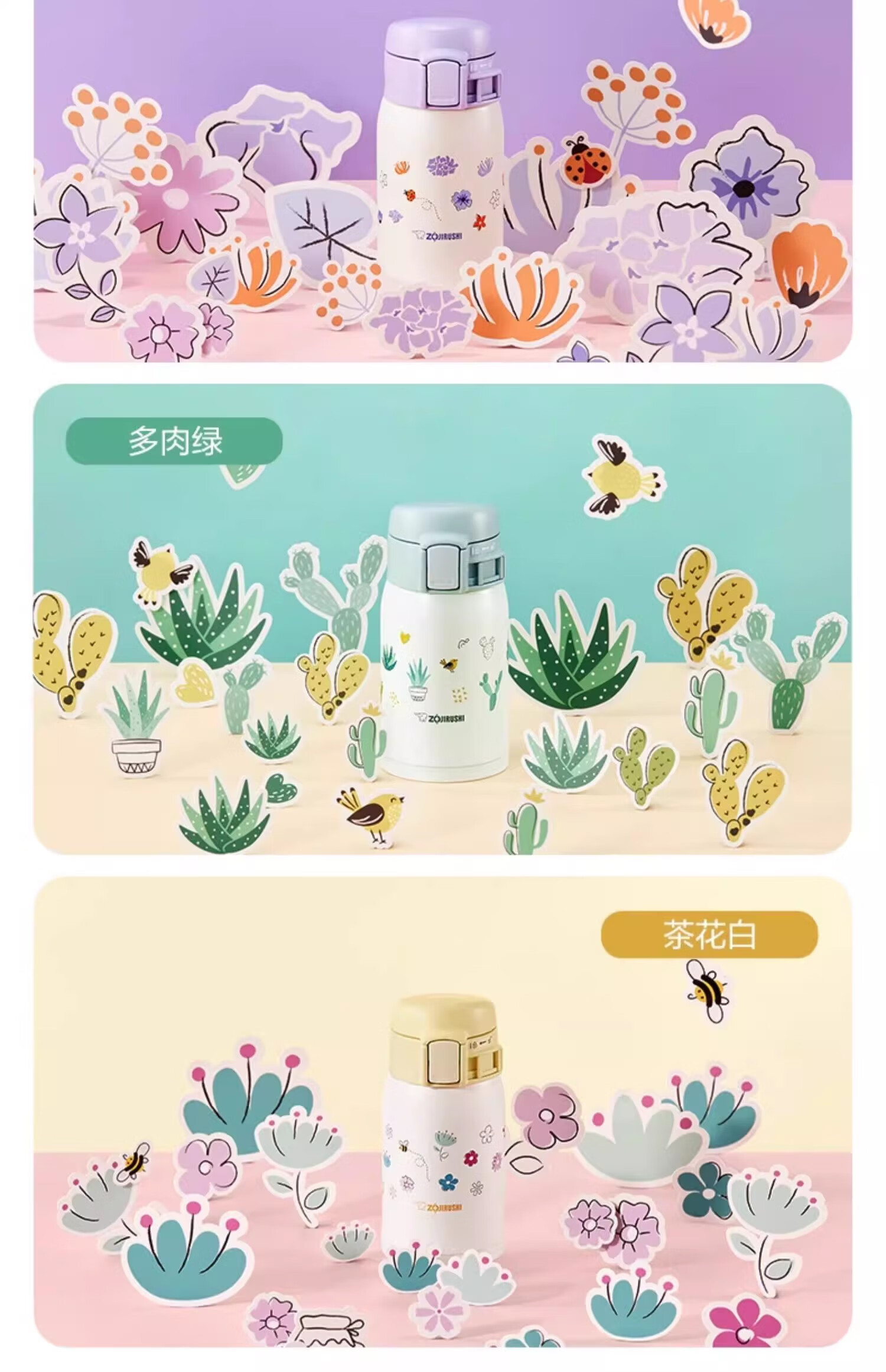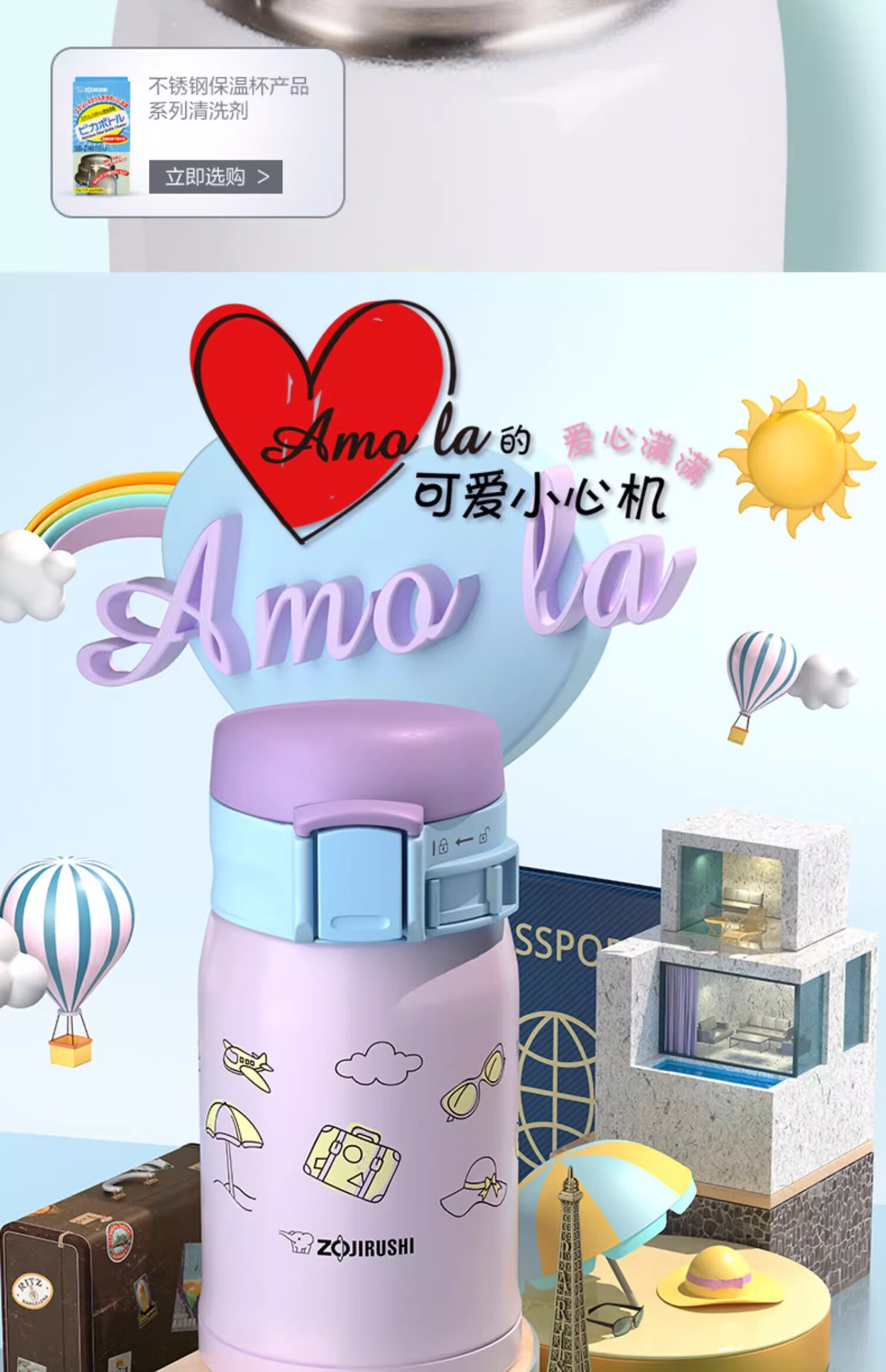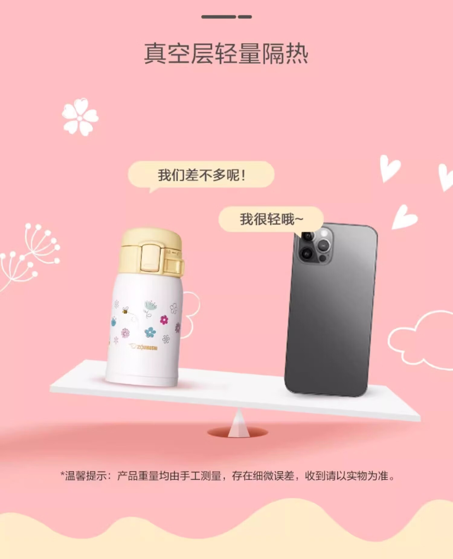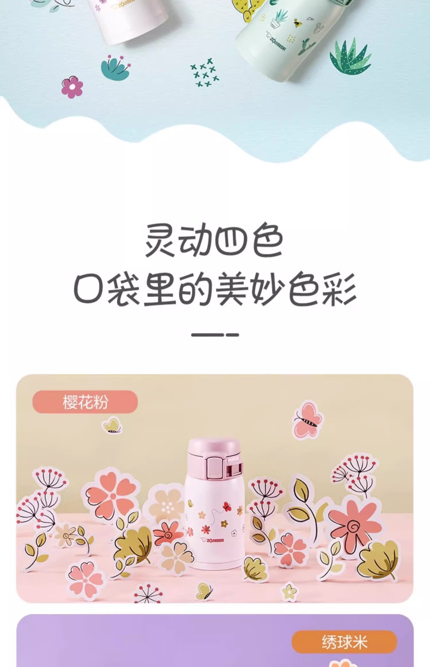 Zojirushi (ZO JIRUSHI) Zojirushi thermos cup SM-SP24 vacuum stainless steel mini compact pop-up lid design portable macaron color imported SP24E-PZ cherry blossom powder 240ml 240ml