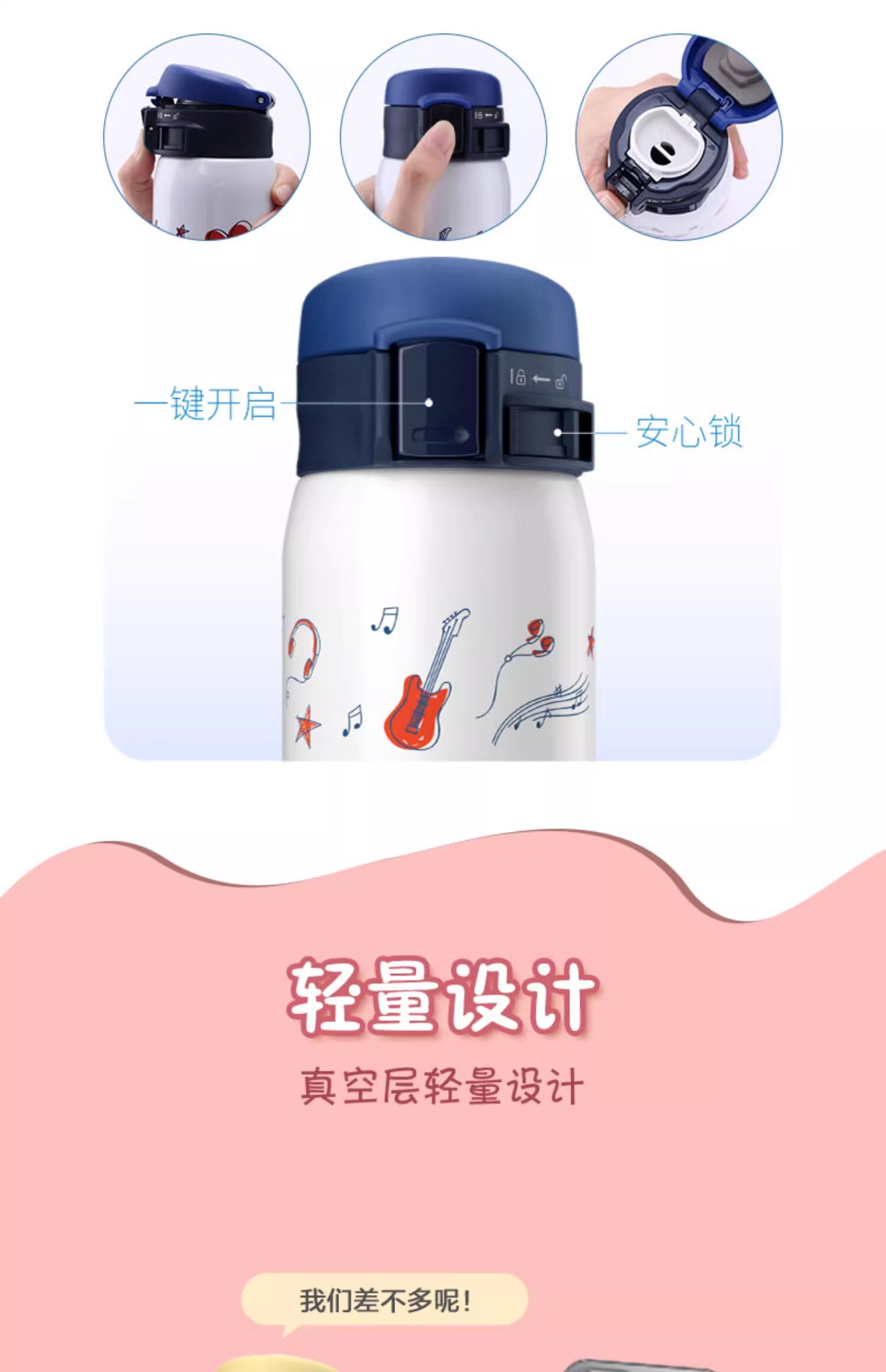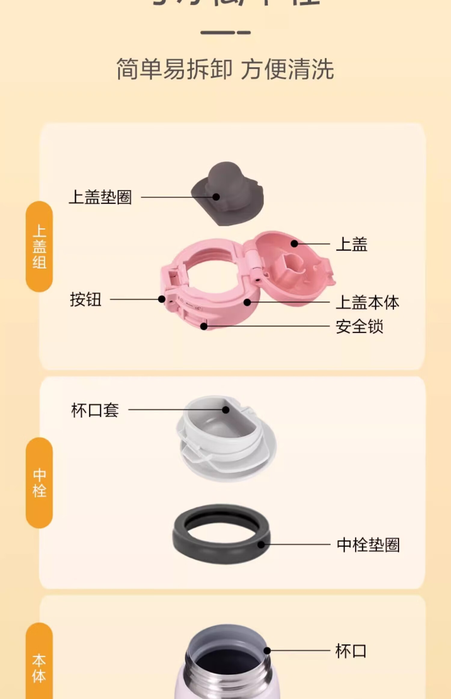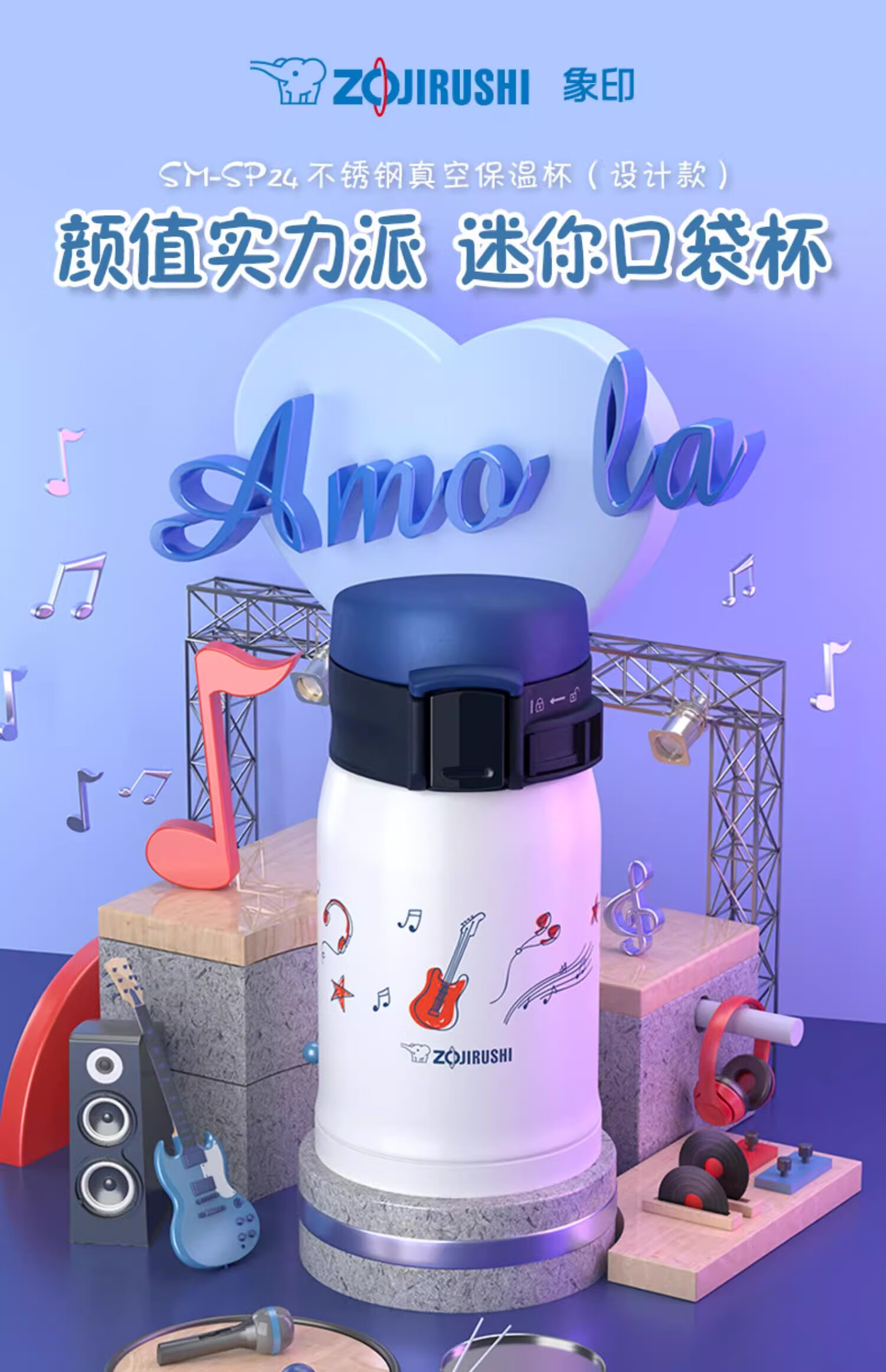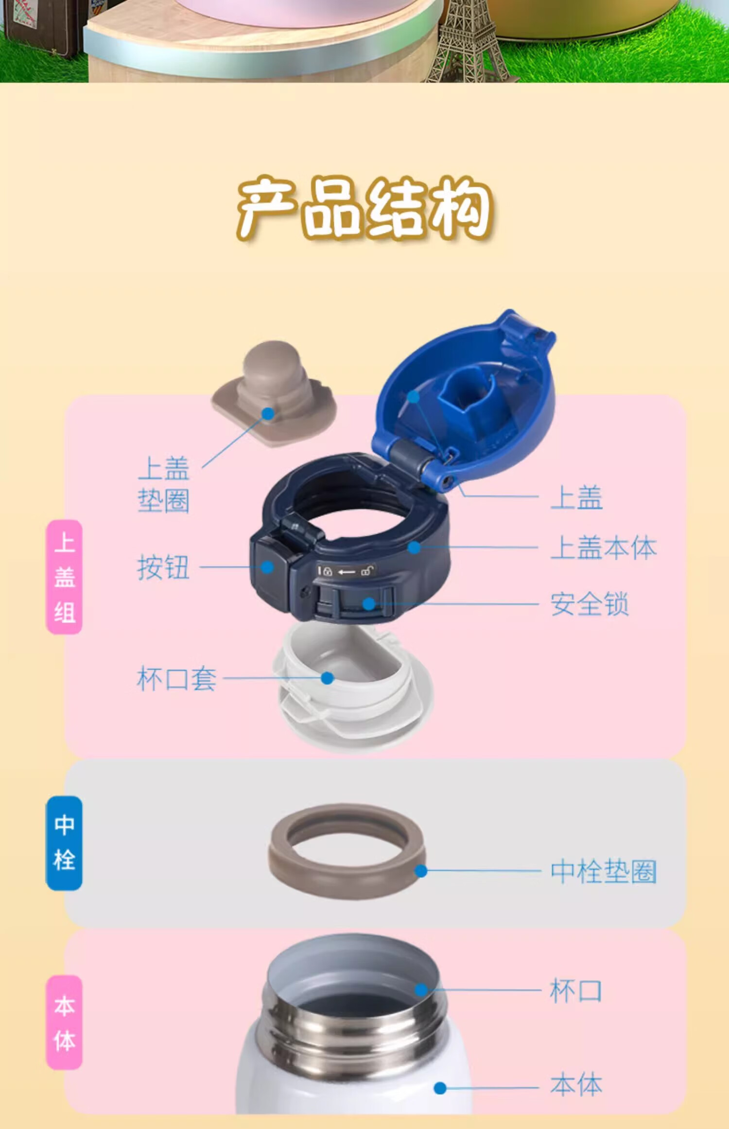Zojirushi (ZO JIRUSHI) Zojirushi thermos cup SM-SP24 vacuum stainless steel mini compact pop-up lid design portable macaron color imported SP24E-PZ cherry blossom powder 240ml 240ml