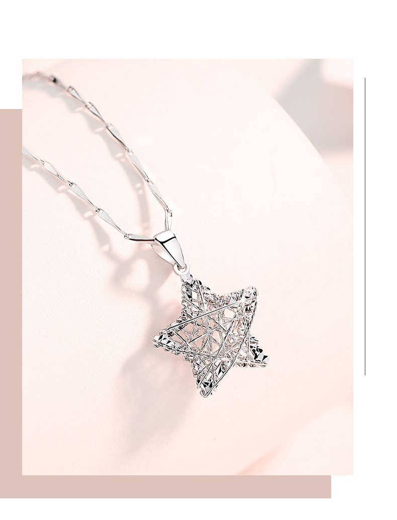 Misu Platinum Wishing Star Pendant for Women PT950 Platinum Dreamnet Hollow Pendant as a Birthday Gift for Girlfriend Wishing Star 1.6-1.8g + with Silver Necklace
