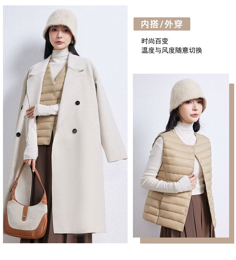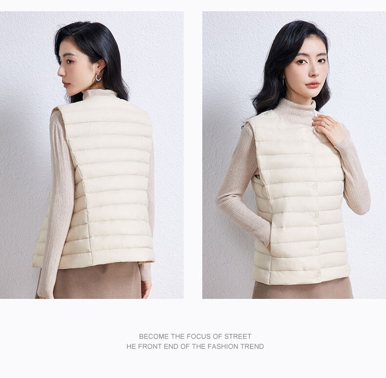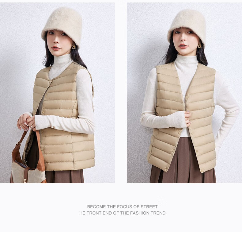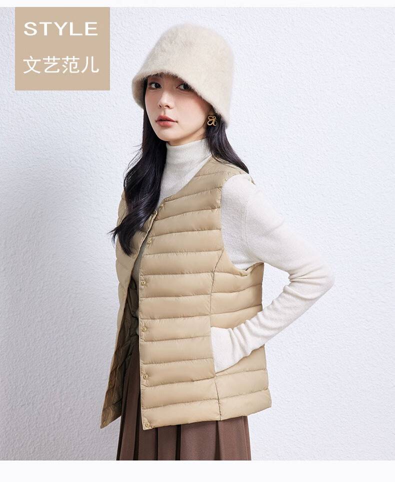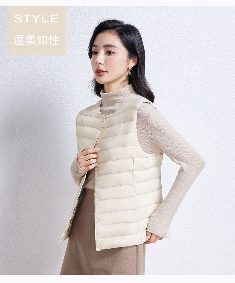 YAYA Vest Women's Light Down Jacket Autumn and Winter Slim Fit Warm Vest Vest Women's Versatile Inner Top Women's K Beige L