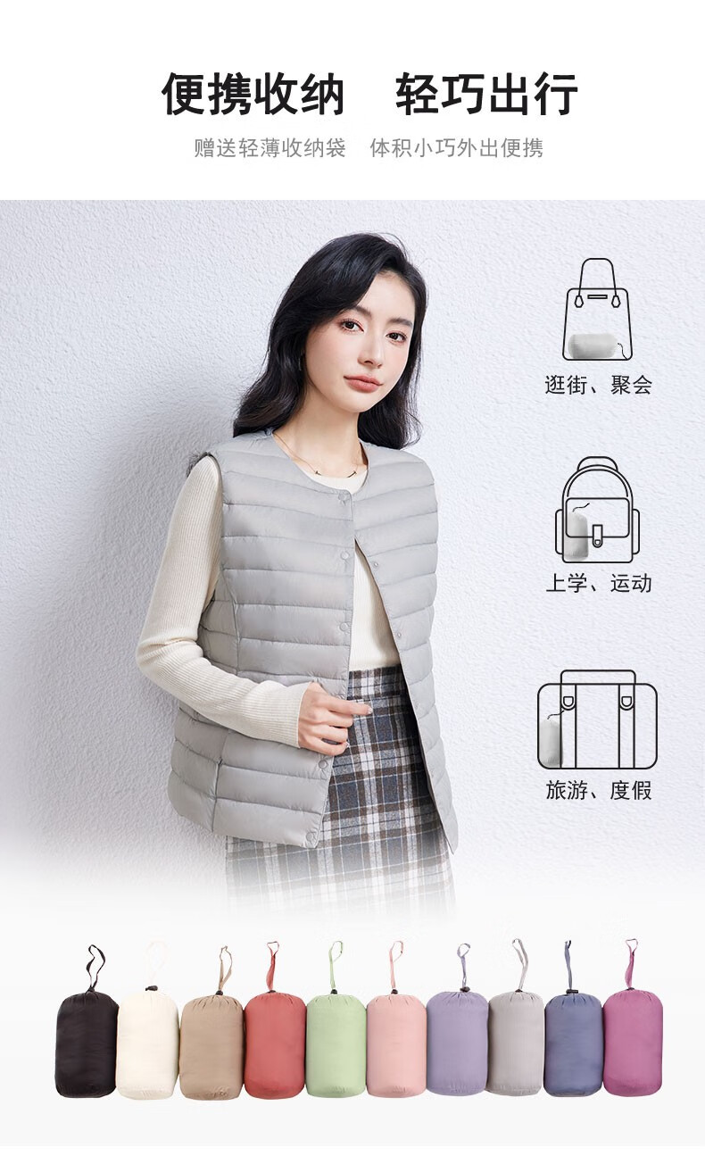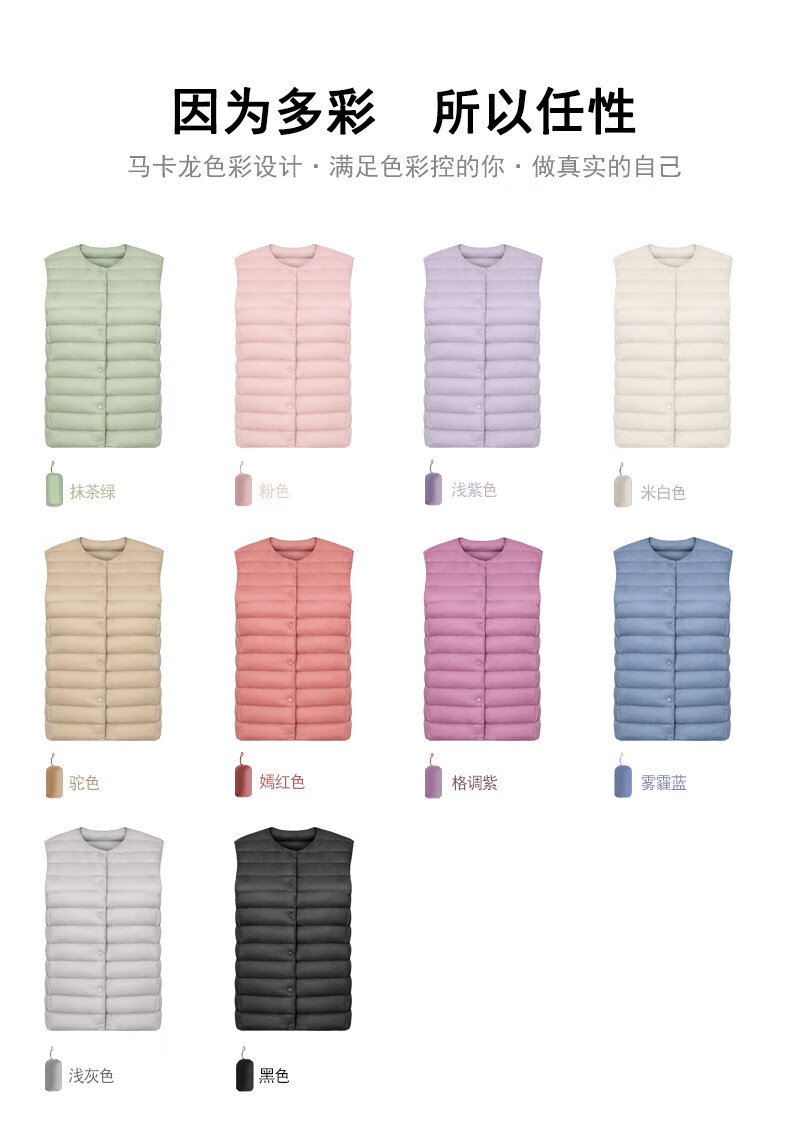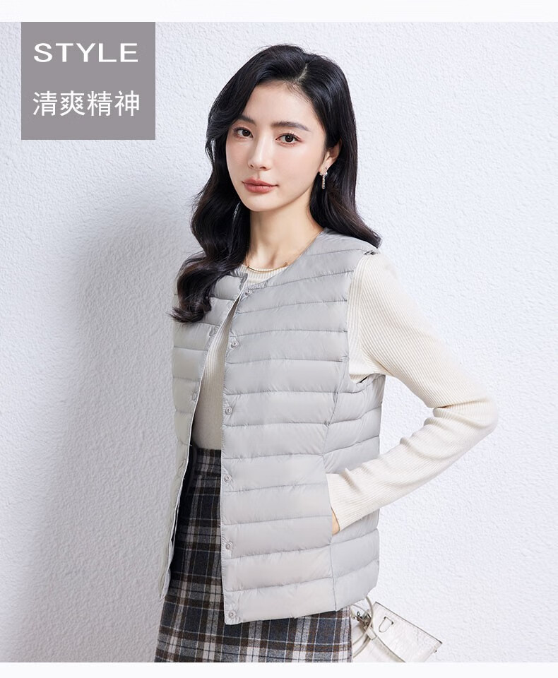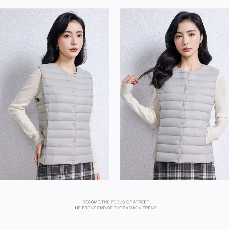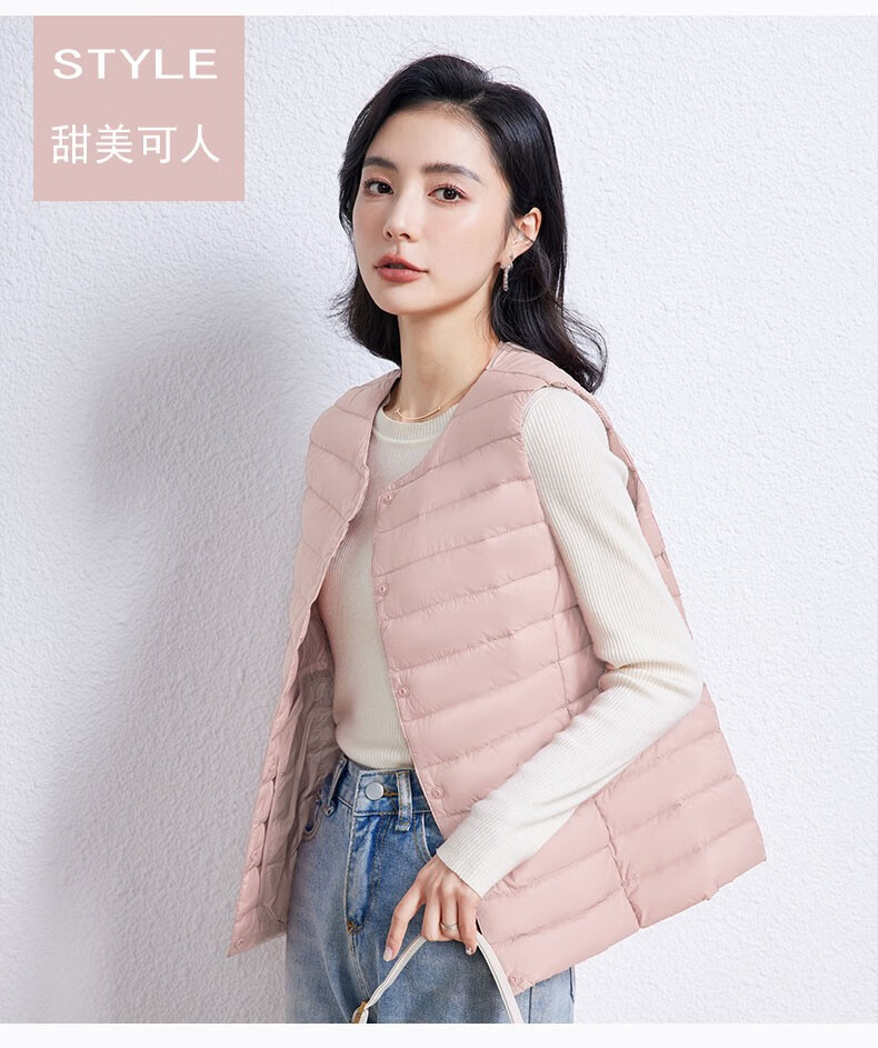 YAYA Vest Women's Light Down Jacket Autumn and Winter Slim Fit Warm Vest Vest Women's Versatile Inner Top Women's K Beige L
