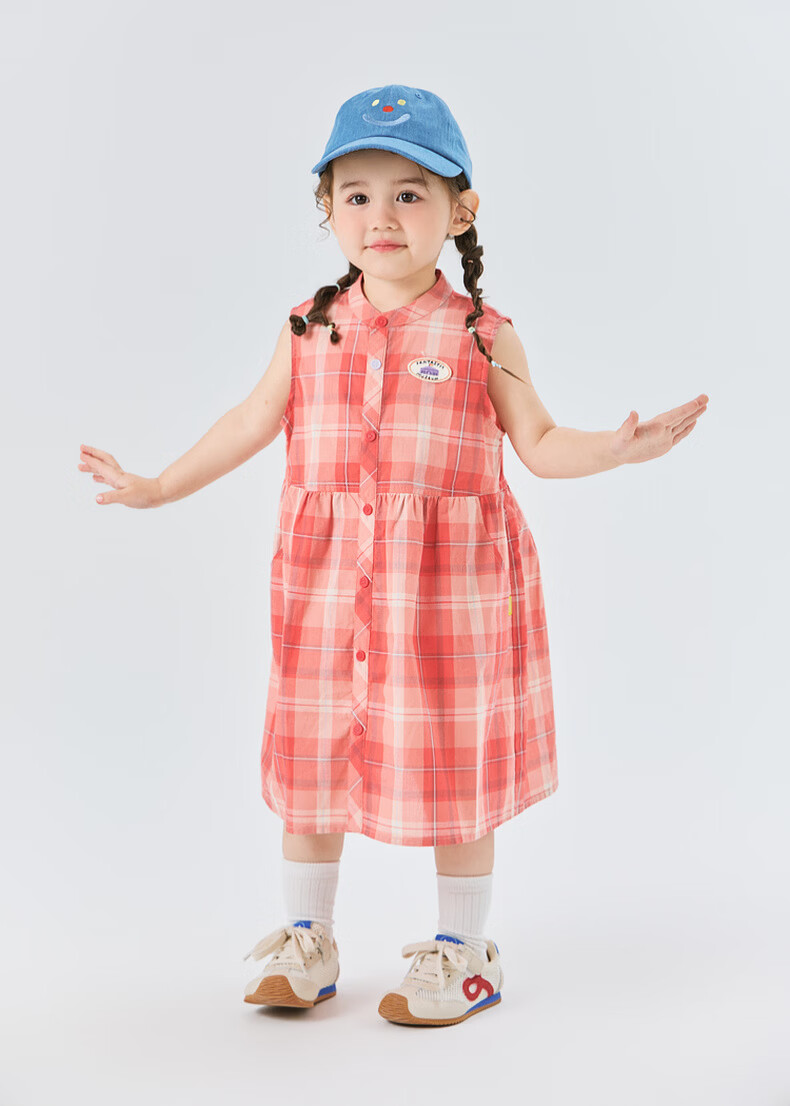 Papa Climbing Summer Children's Skirt Girls' Pure Cotton Sleeveless Dress Loose, Breathable and Fashionable Red 120