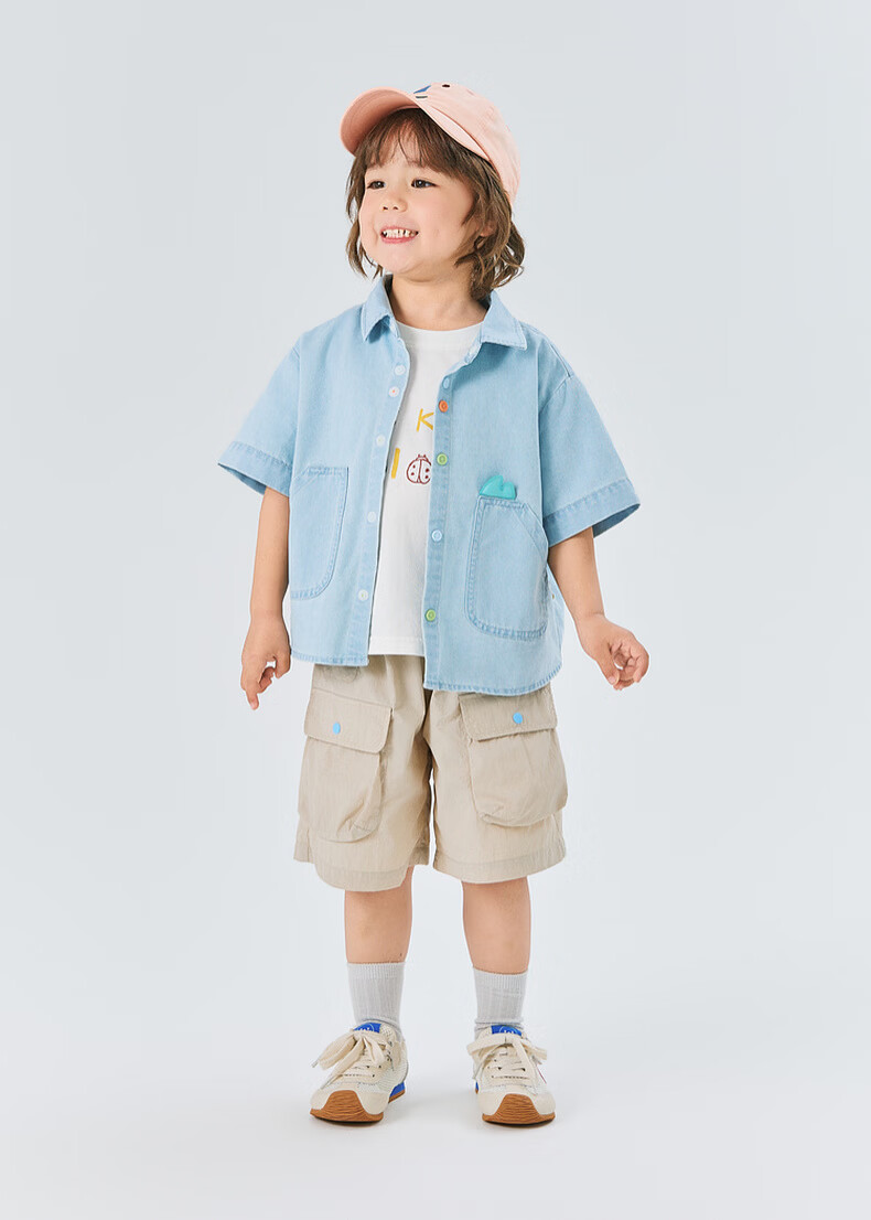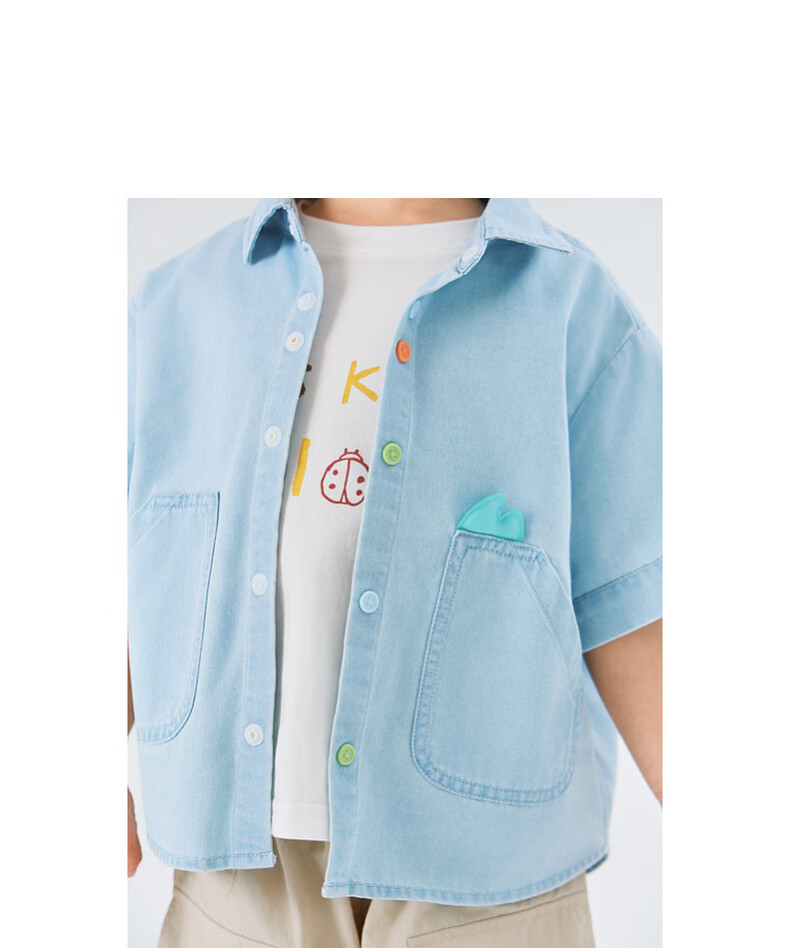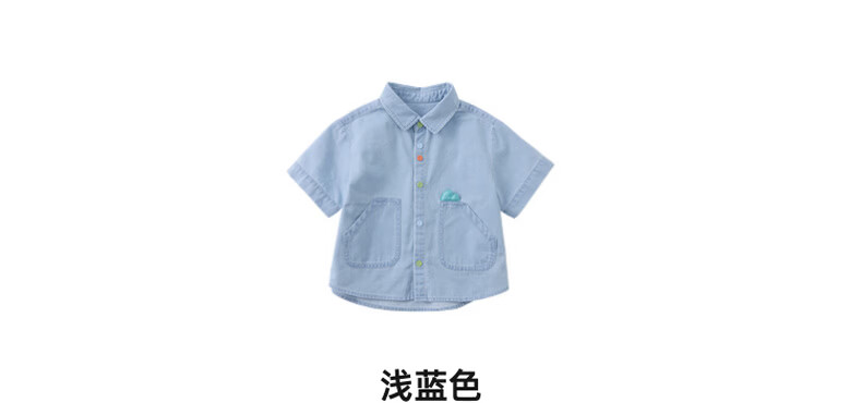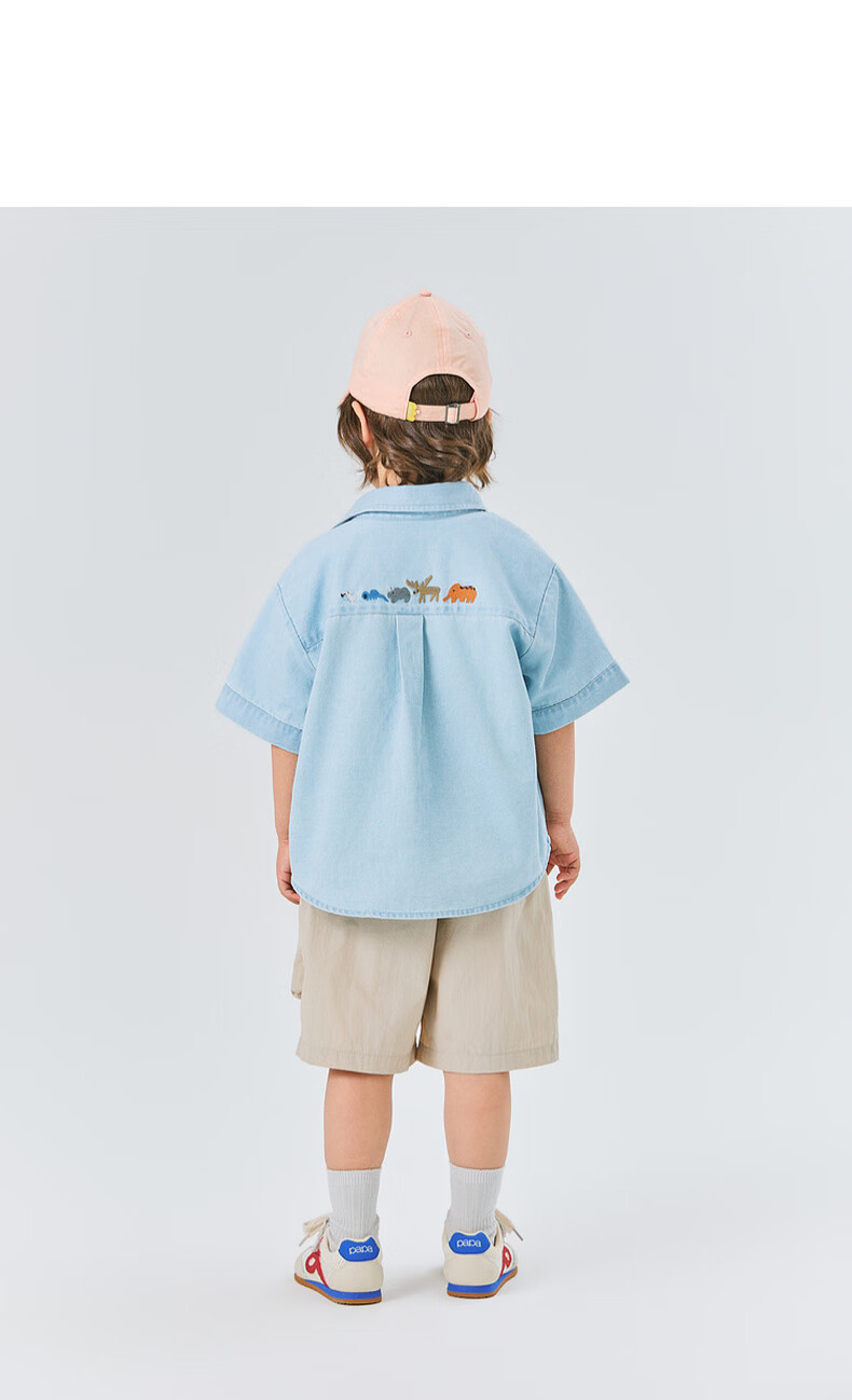 Papa climbing summer children's shirt boys embroidered denim top cool sun protection cute and versatile light blue 130