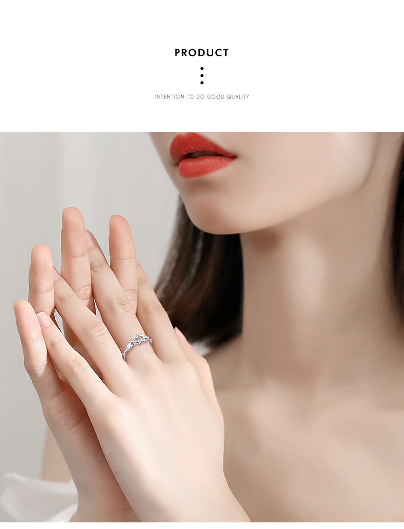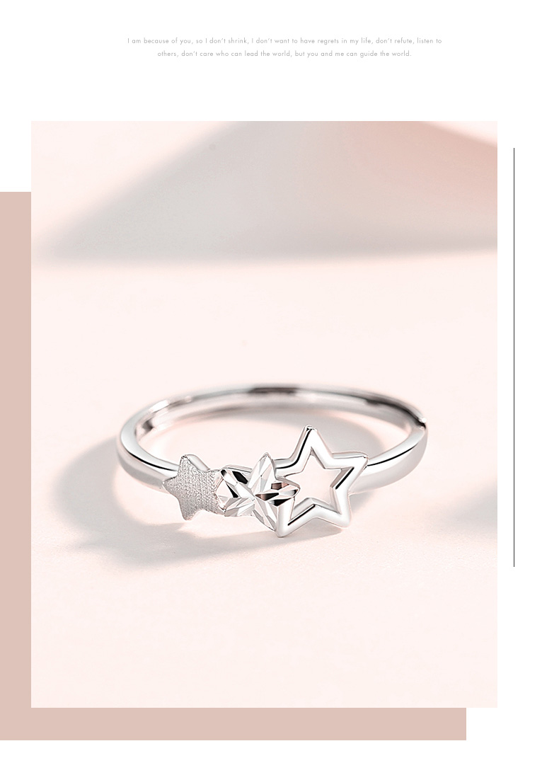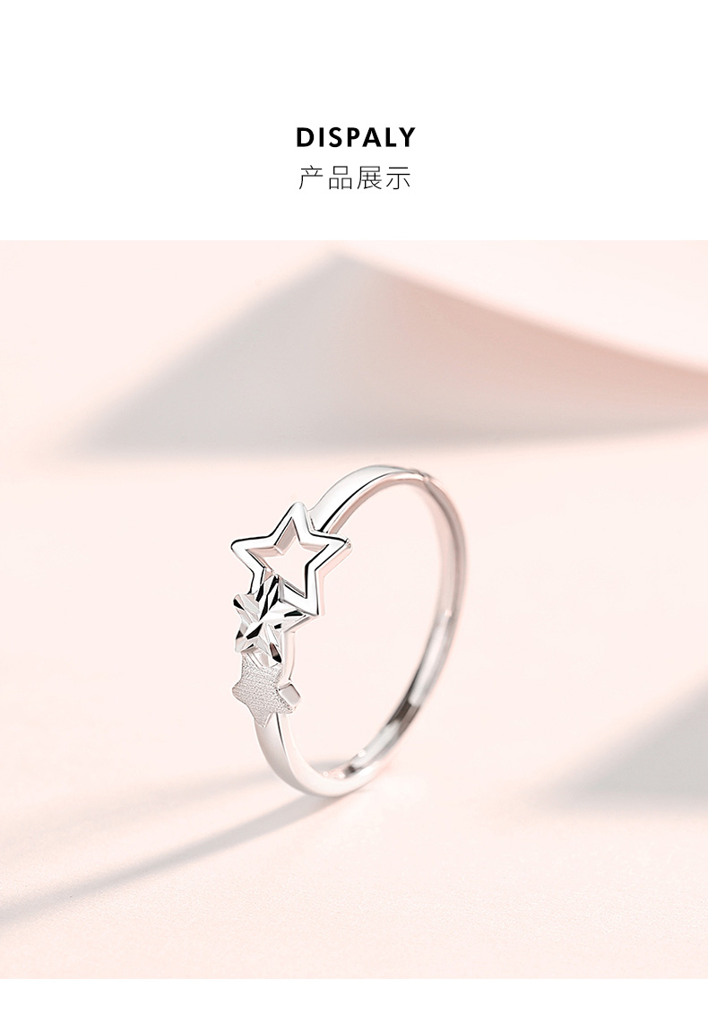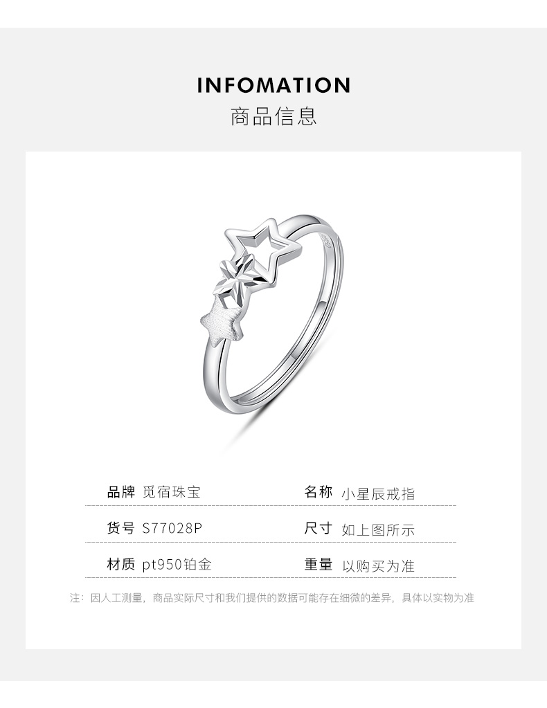 Misu PT950 platinum star ring for women, platinum car flower, hollow five-pointed star ring, adjustable Christmas gift, weight 2.2-2.4 grams + delivery certificate