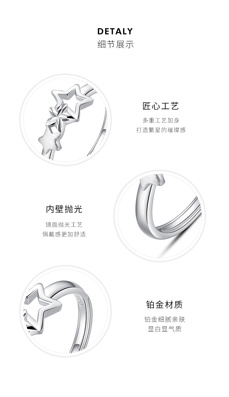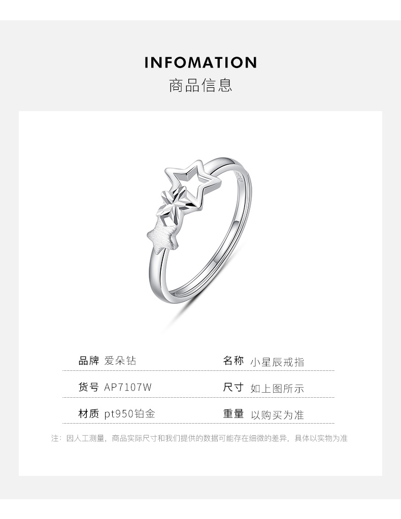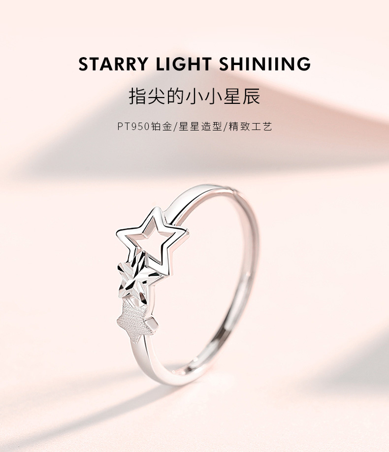Aido Diamond pt950 platinum star ring for women, fashionable platinum five-pointed star ring, adjustable gift for girlfriend, weight 2.2-2.4 grams + free engraving