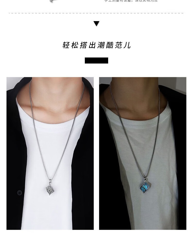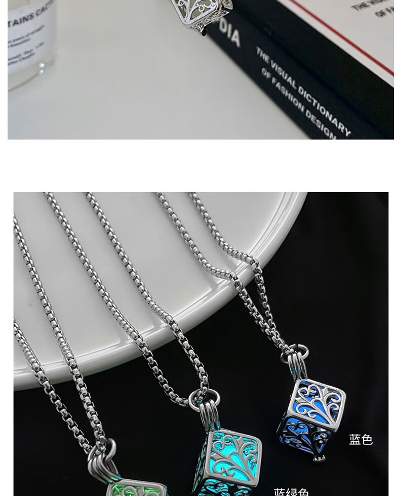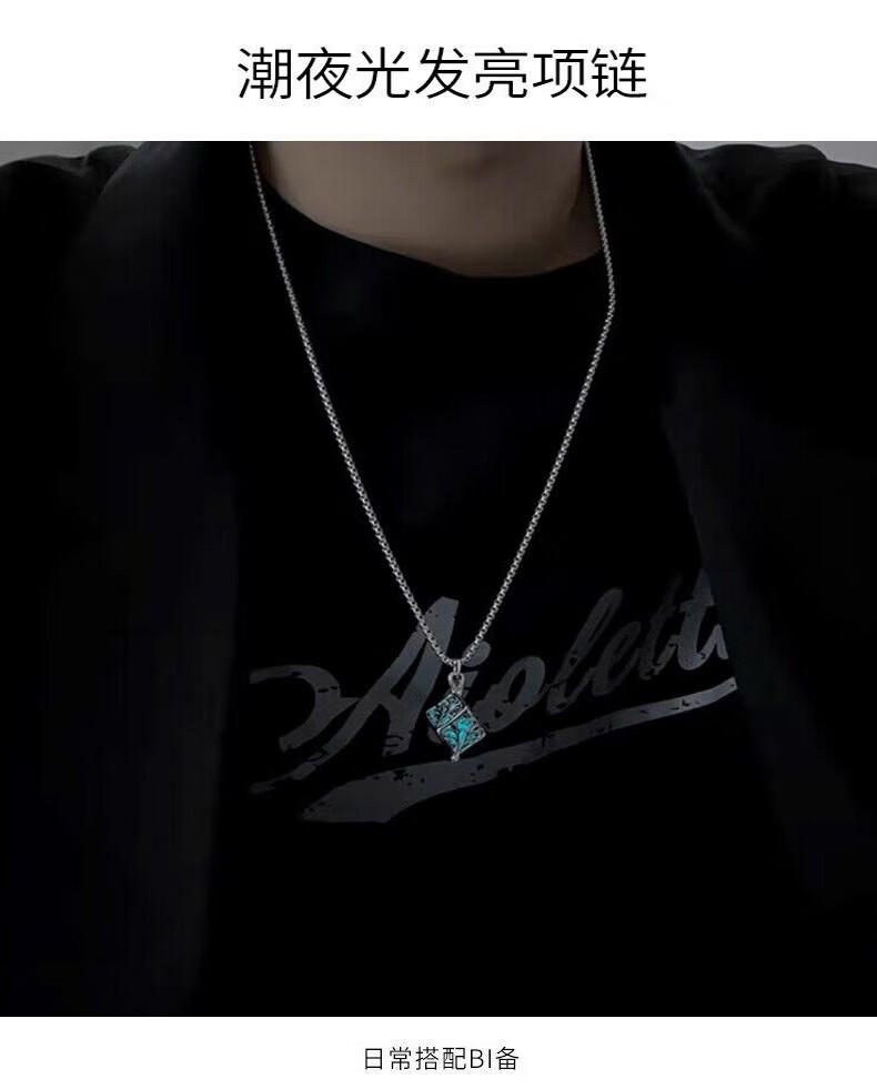 QMXD luminous necklace men's trendy hip-hop tree of life pendant student titanium steel chain versatile necklace men's sweater chain
