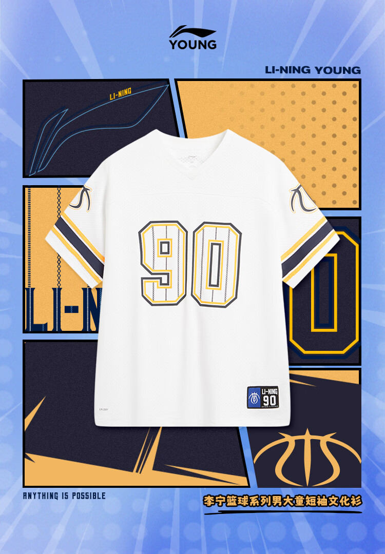 Li Ning (LI-NING) children's clothing children's short-sleeved T-shirt for boys and older children quick-drying and sweat-wicking comfortable, cool and breathable cultural shirt 175YHSW073-4