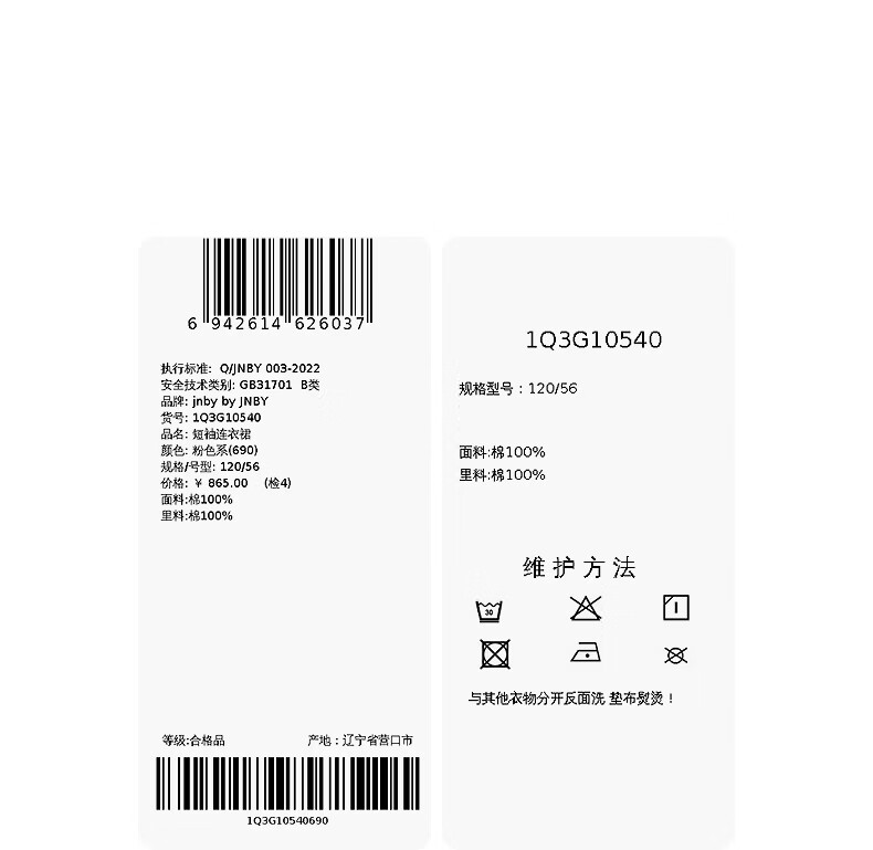 jnby by JNBY新款江南布衣童装连衣裙26春女童1Q3G10540 690/粉色系 130cm