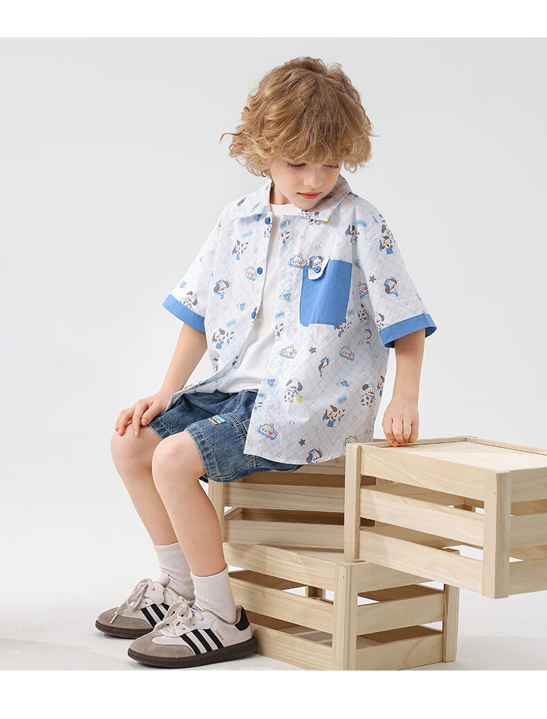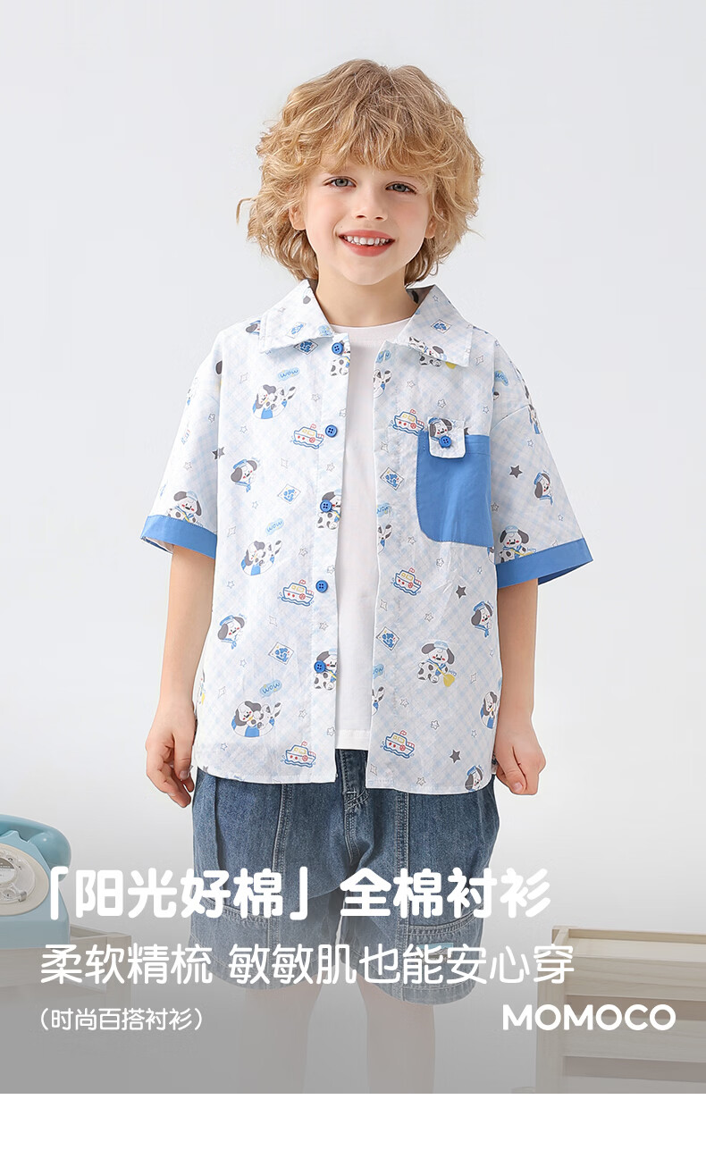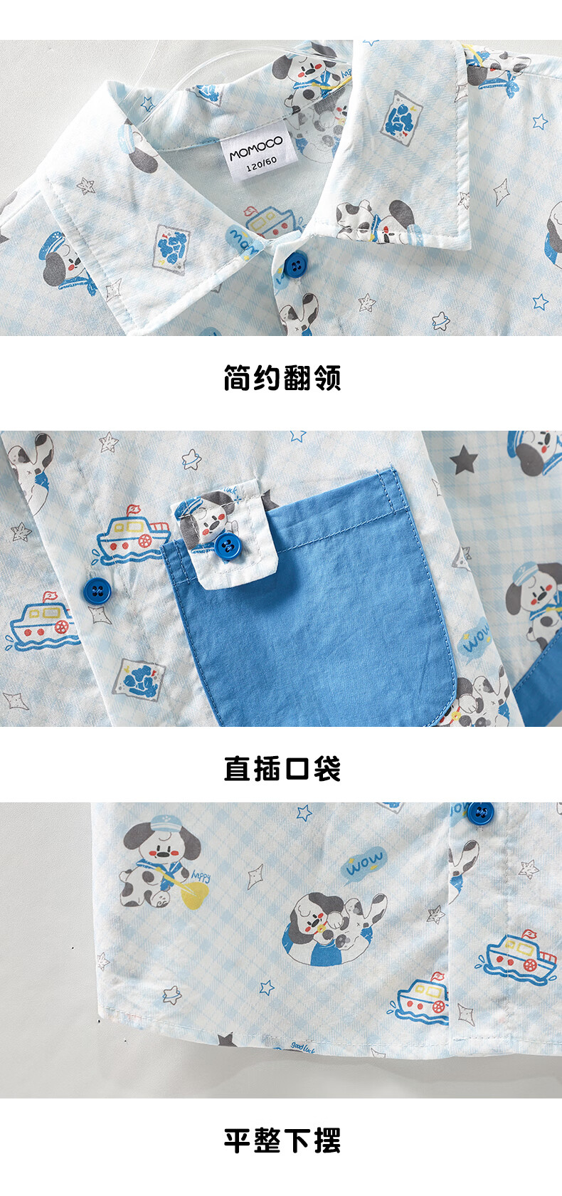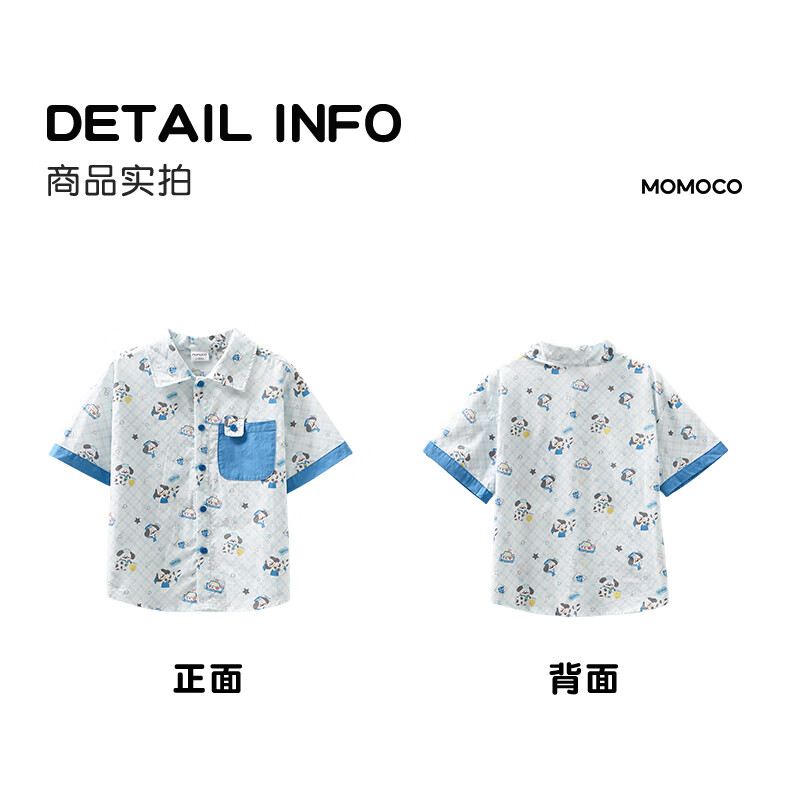 Mami Maca (MOMOCO) children's shirt summer boys short-sleeved summer fashion versatile shirt white full print 140