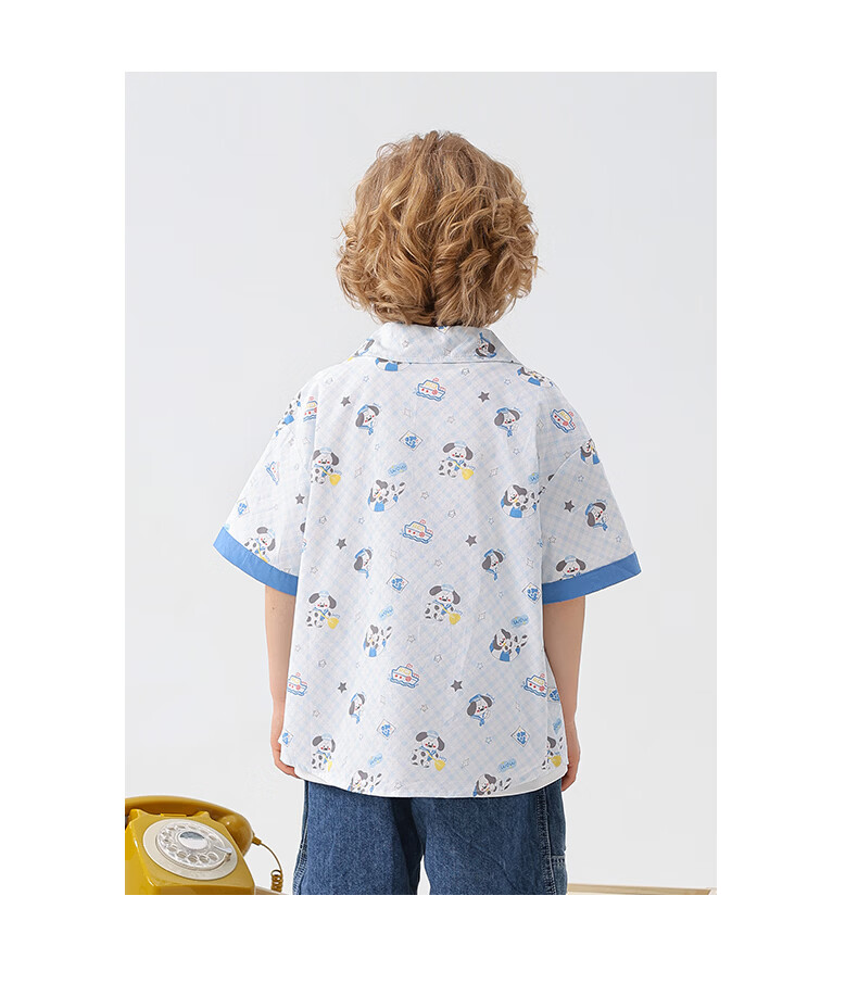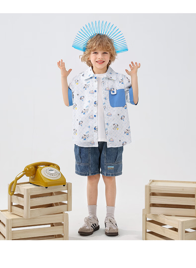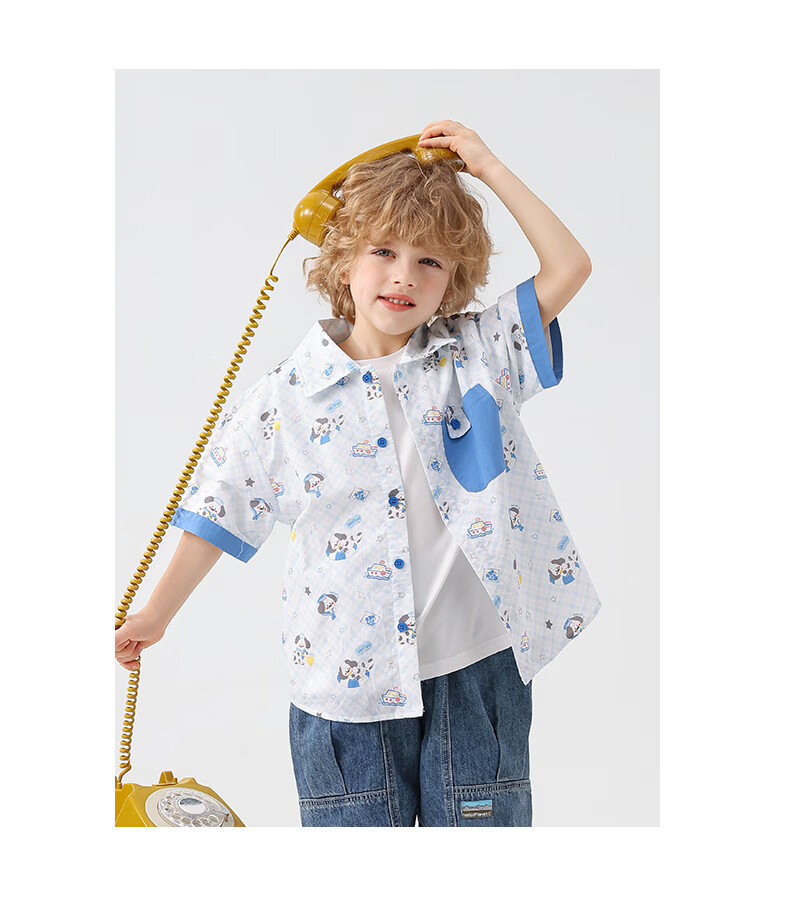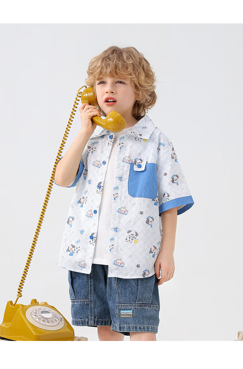 Mami Maca (MOMOCO) children's shirt summer boys short-sleeved summer fashion versatile shirt white full print 140