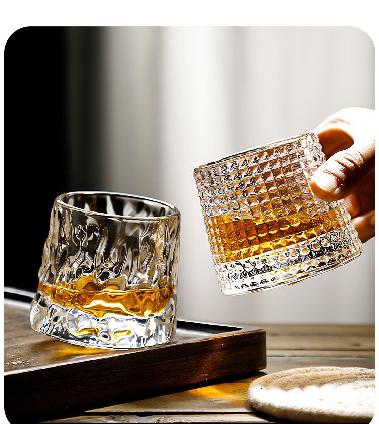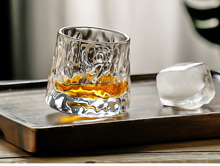 Gudong Xiaoming spiral whiskey glass crystal glass foreign wine glass spirits home creative special-shaped beer liquor glacier cup glacier pattern 170ml 1 piece