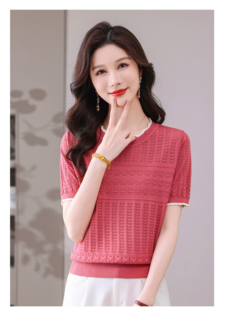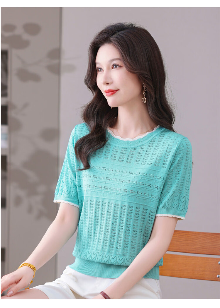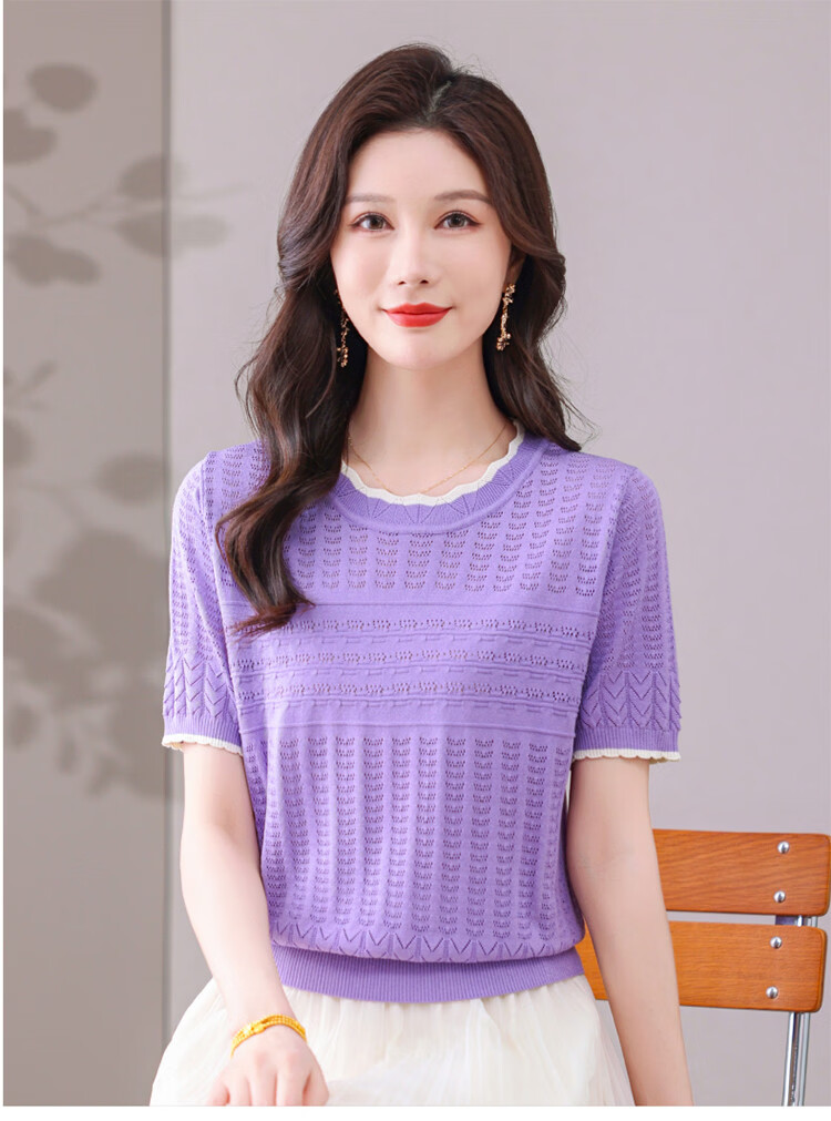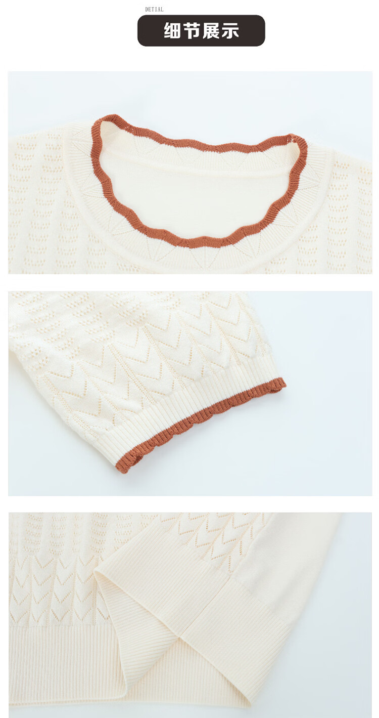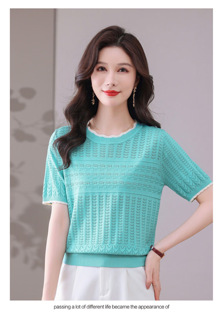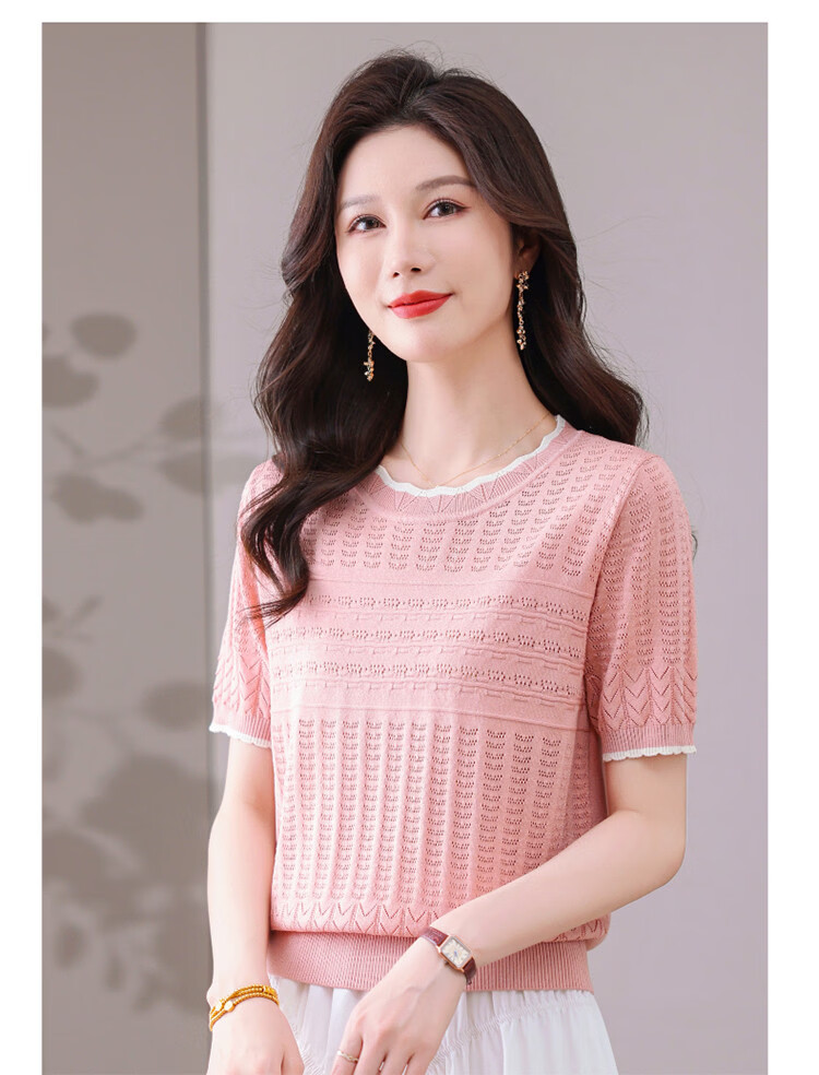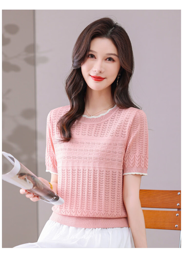 Snow Flying (SNOWFLYING) sweet and gentle style lace collar short-sleeved sweater for women 26 spring and summer hollow design women's loose and slim top