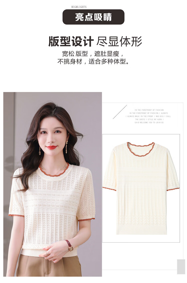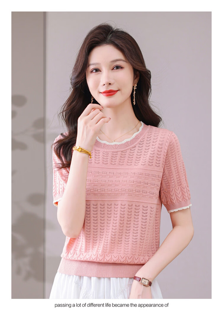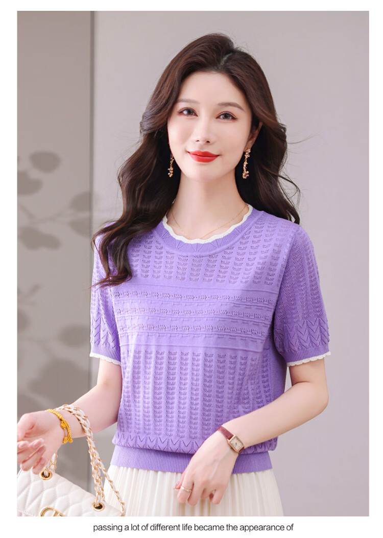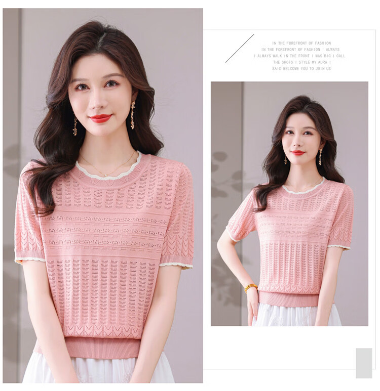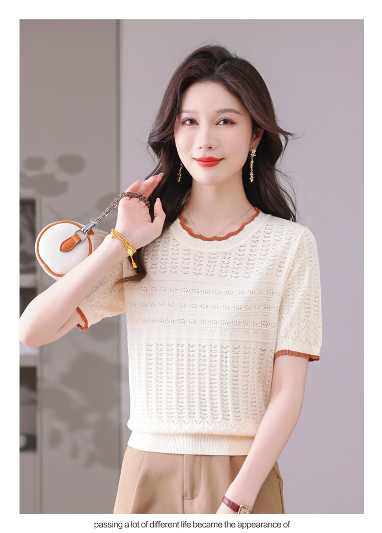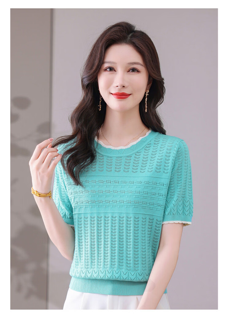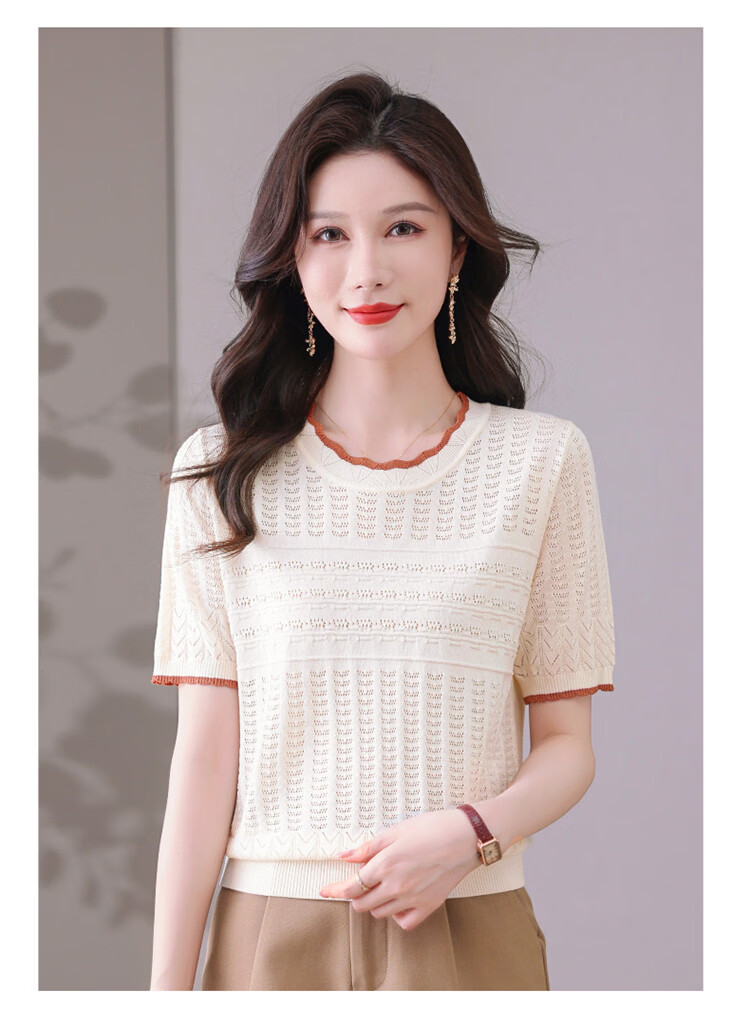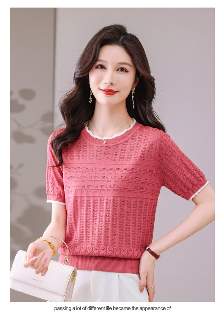 Snow Flying (SNOWFLYING) sweet and gentle style lace collar short-sleeved sweater for women 26 spring and summer hollow design women's loose and slim top