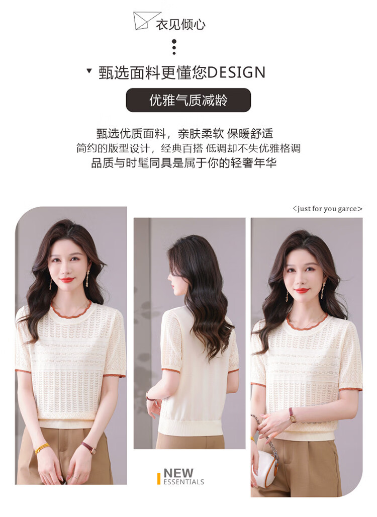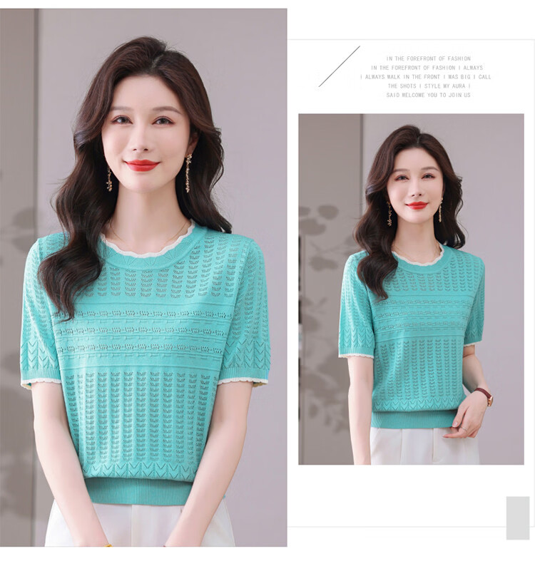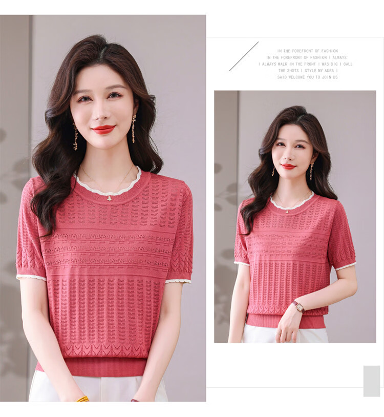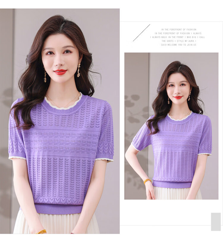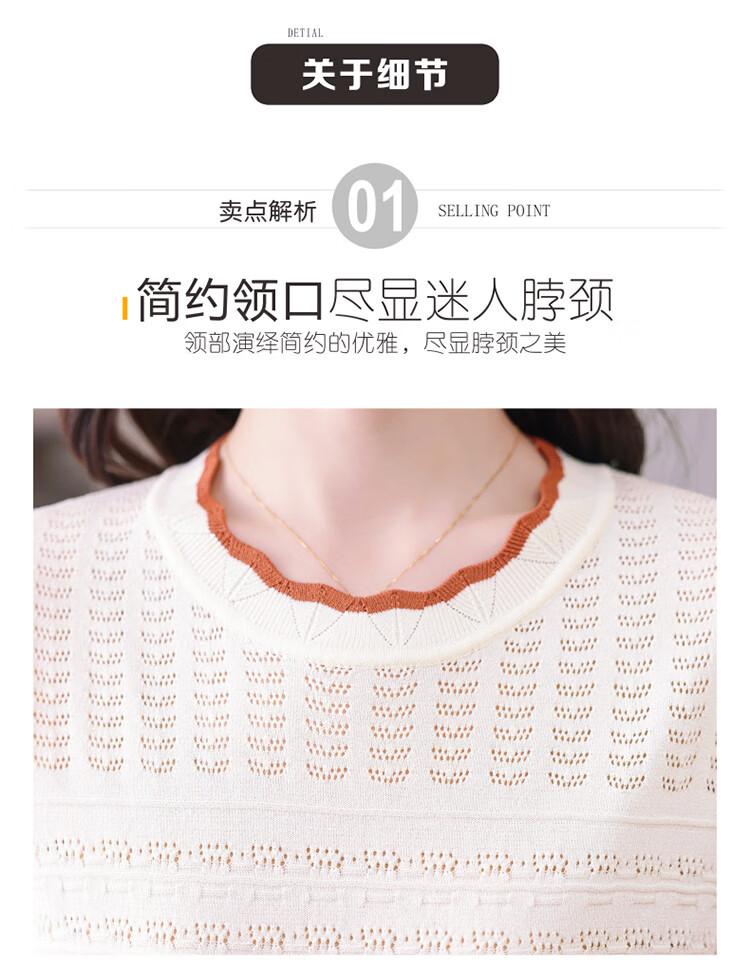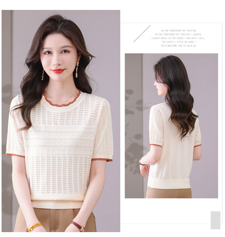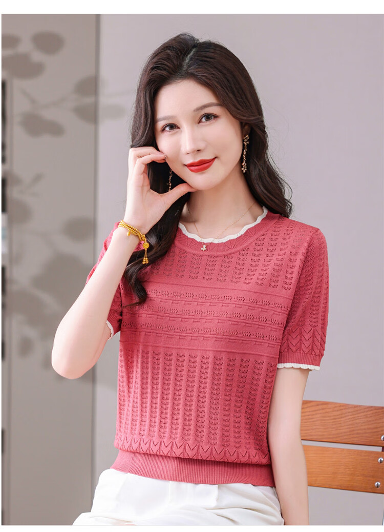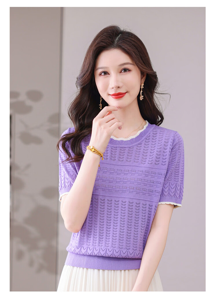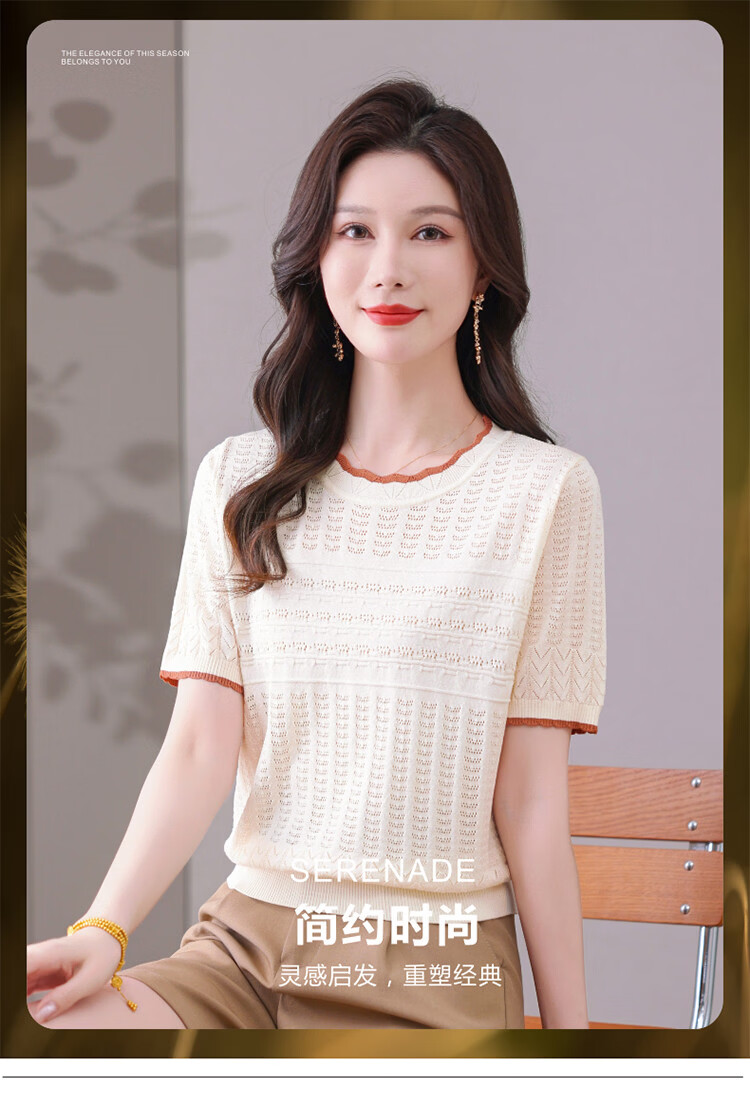 Snow Flying (SNOWFLYING) sweet and gentle style lace collar short-sleeved sweater for women 26 spring and summer hollow design women's loose and slim top