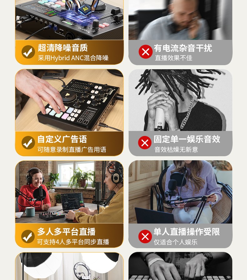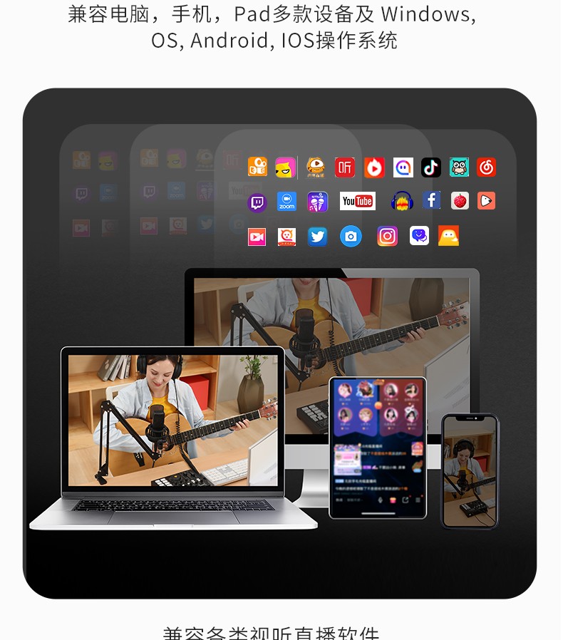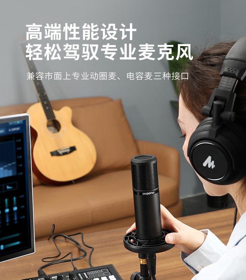 Maono external sound card set Anchor live broadcast professional recording equipment K song sound repair complete set of mobile phone computer condenser microphone Maono Bobo Mai AM100+PM320S cantilever (professional live recording)