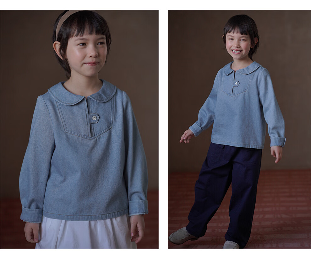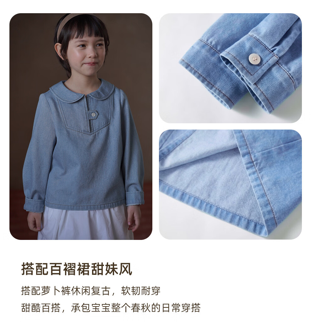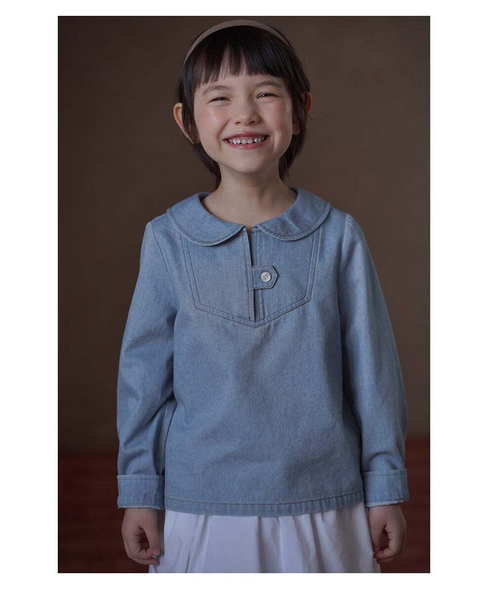 Hacikis children's clothing spring and autumn children's denim tops skin-friendly cotton doll collar shirt girls shirt girls 2026 spring clothing