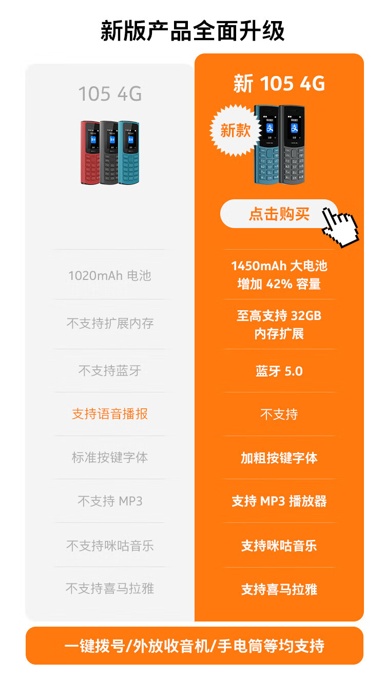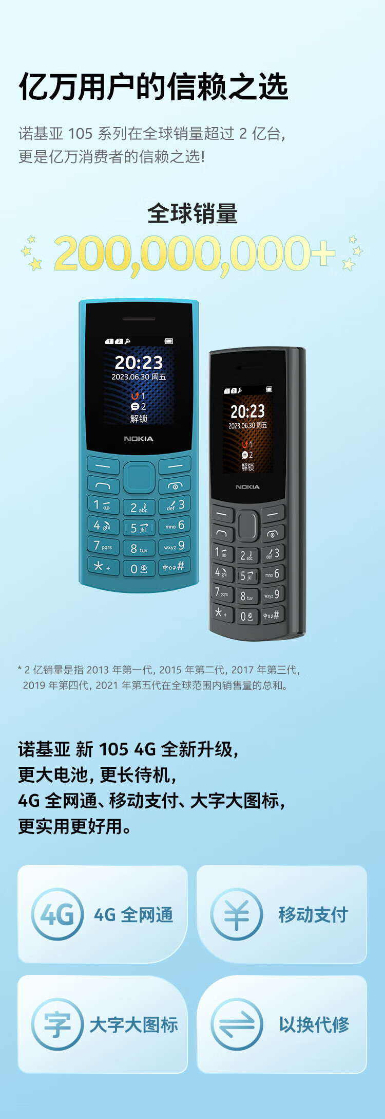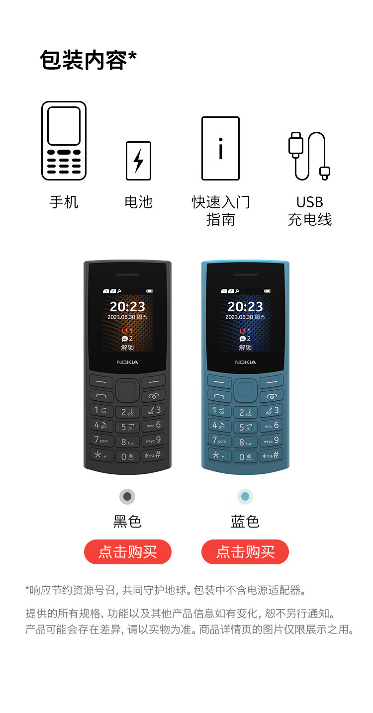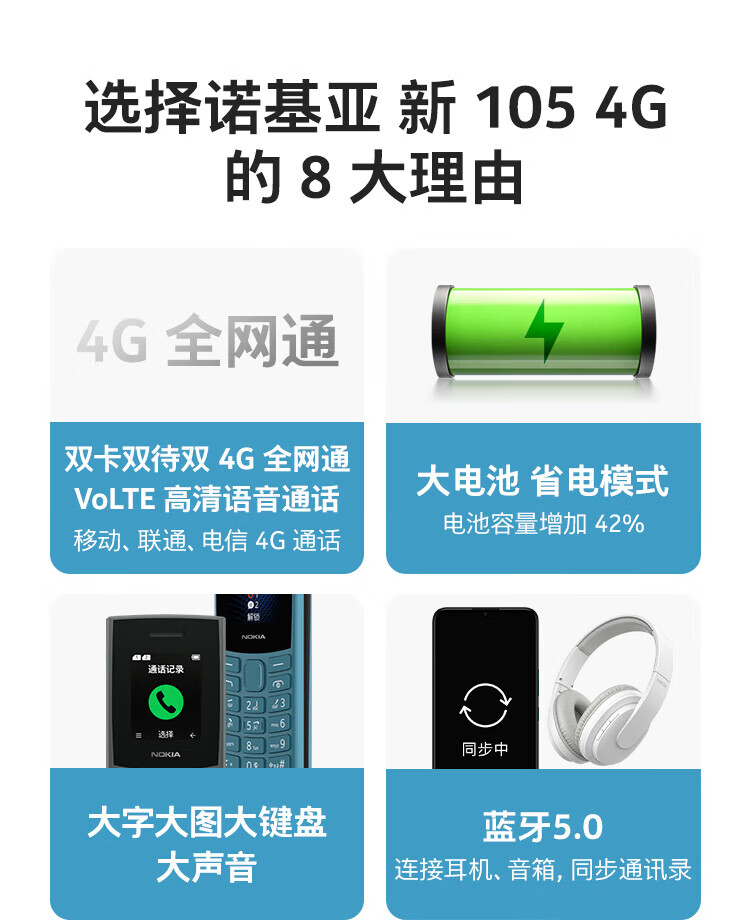 Nokia New Nokia 105 4G Full Netcom Dual SIM Dual Standby Super Long Standby Big Button Elderly Phone Student Backup Function Phone Blue Official Standard