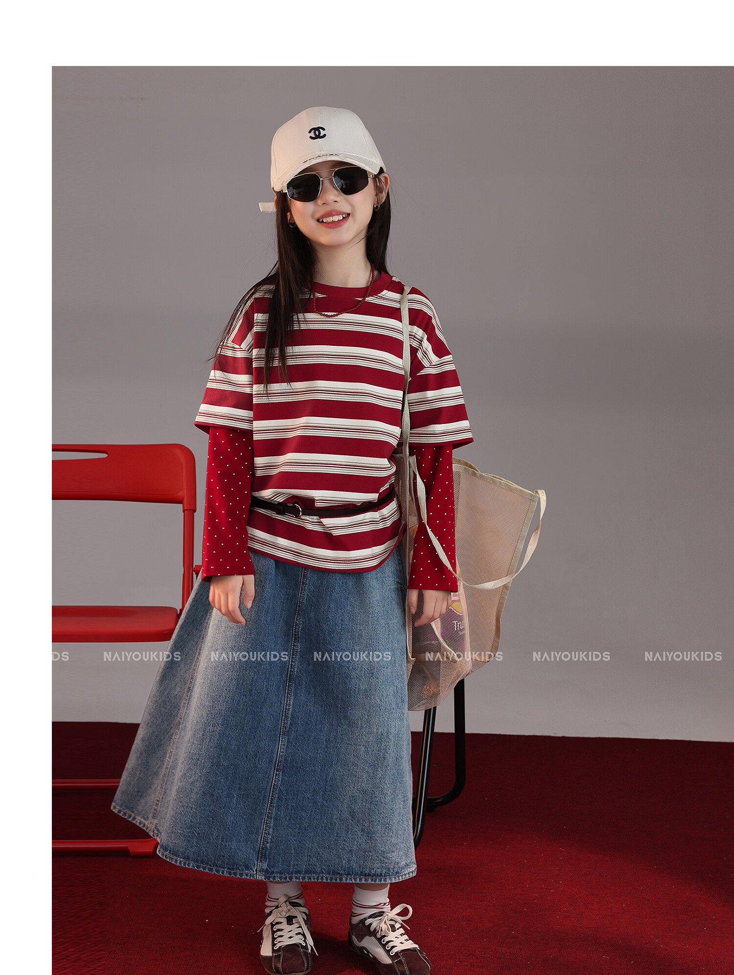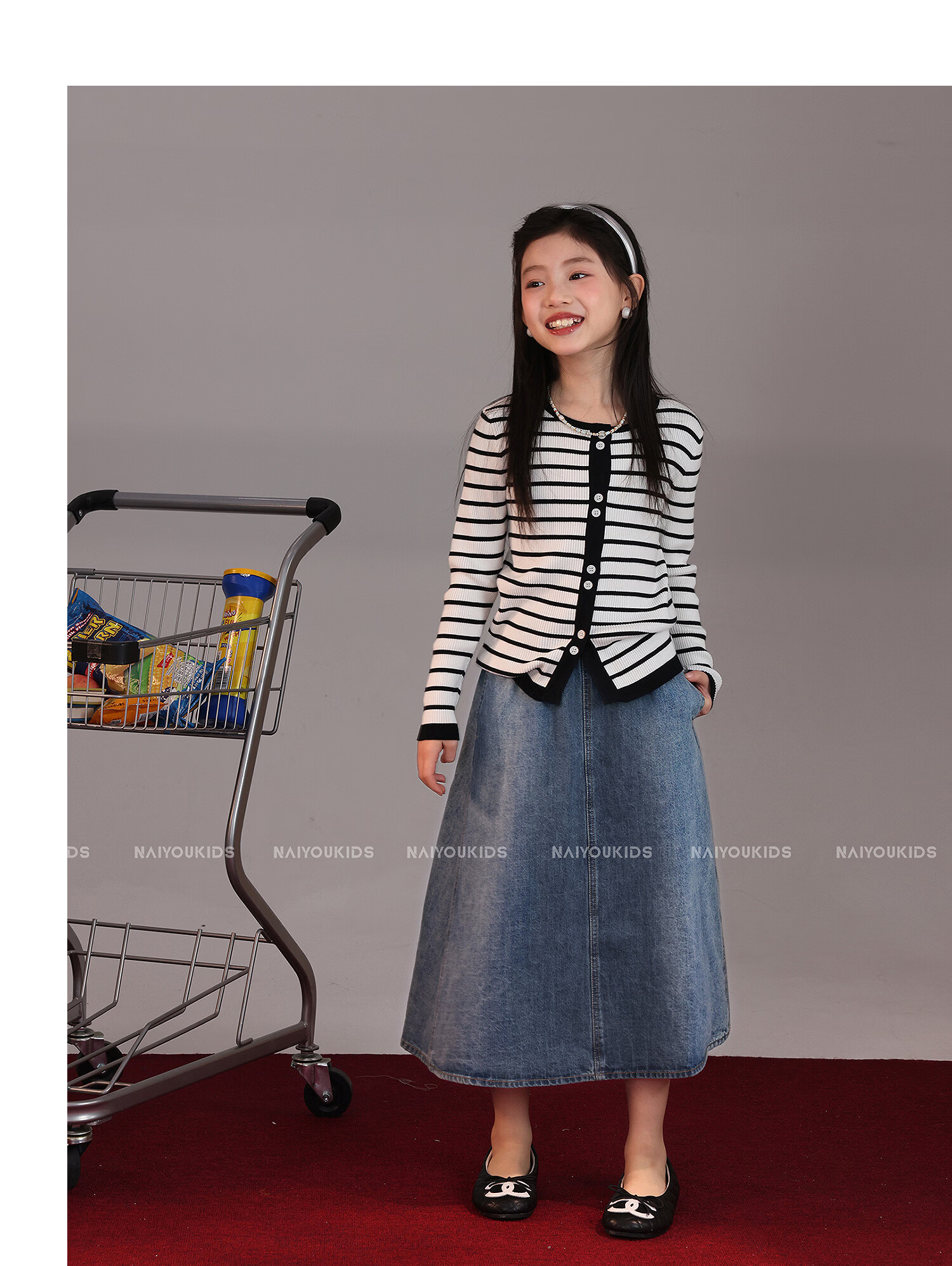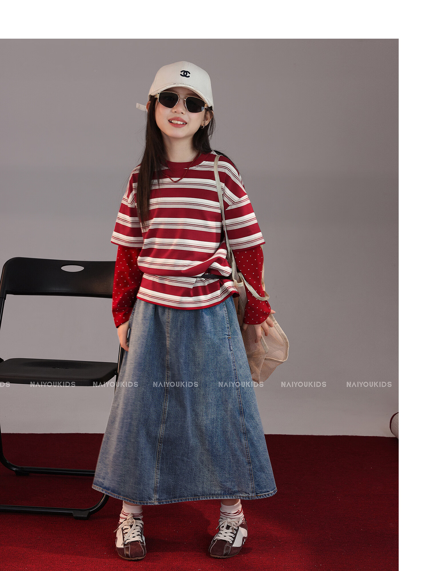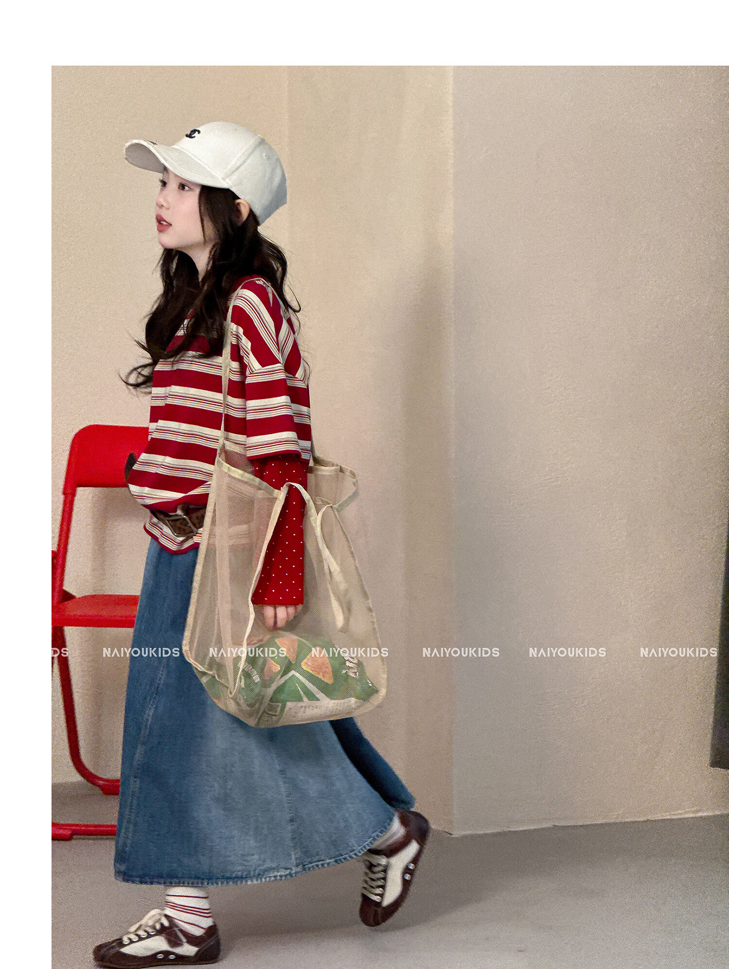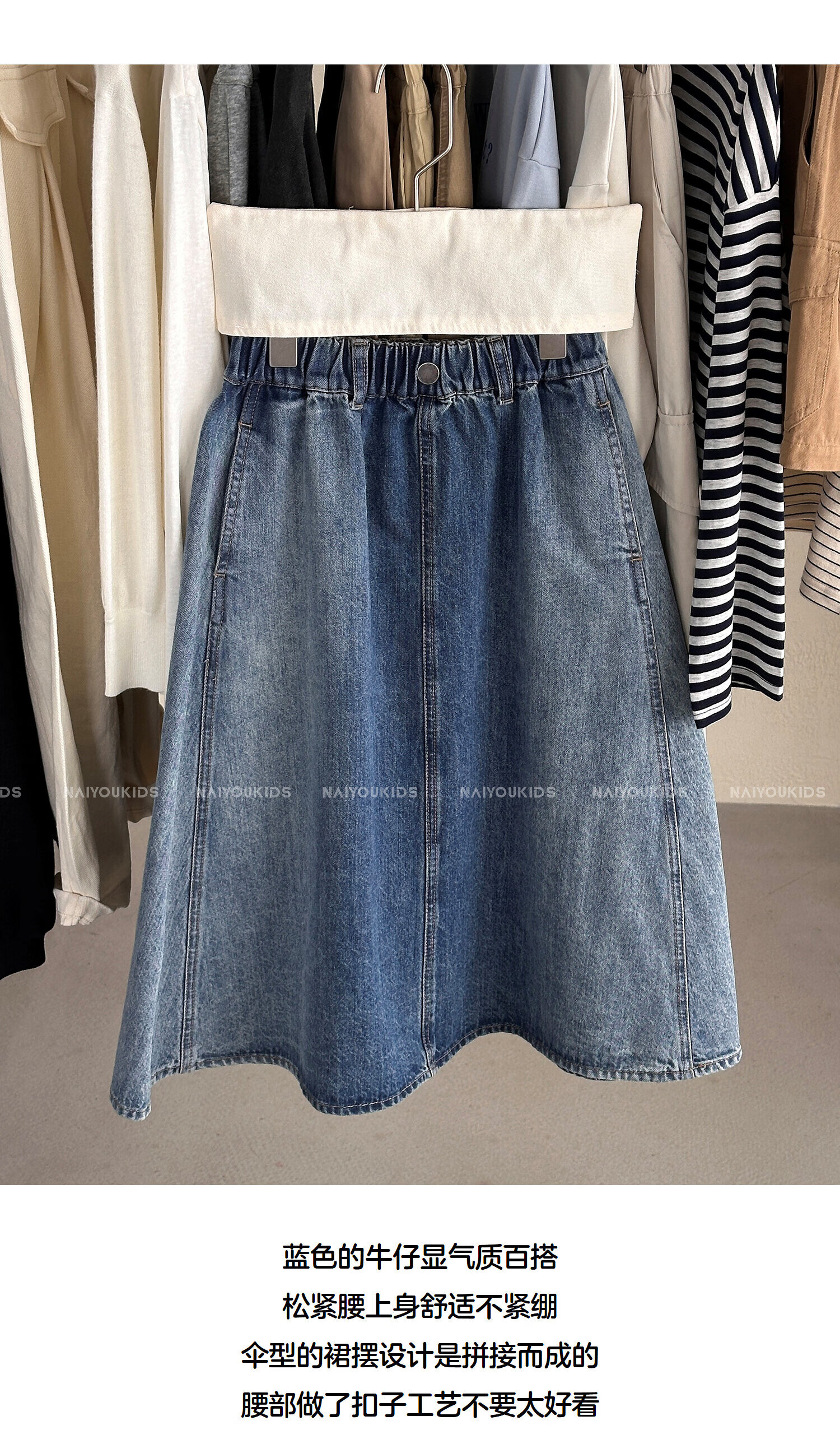 NAIYOUKIDS A-line big swing cream kids children's clothing girls 2026 new spring denim skirt children's short skirt A-line skirt