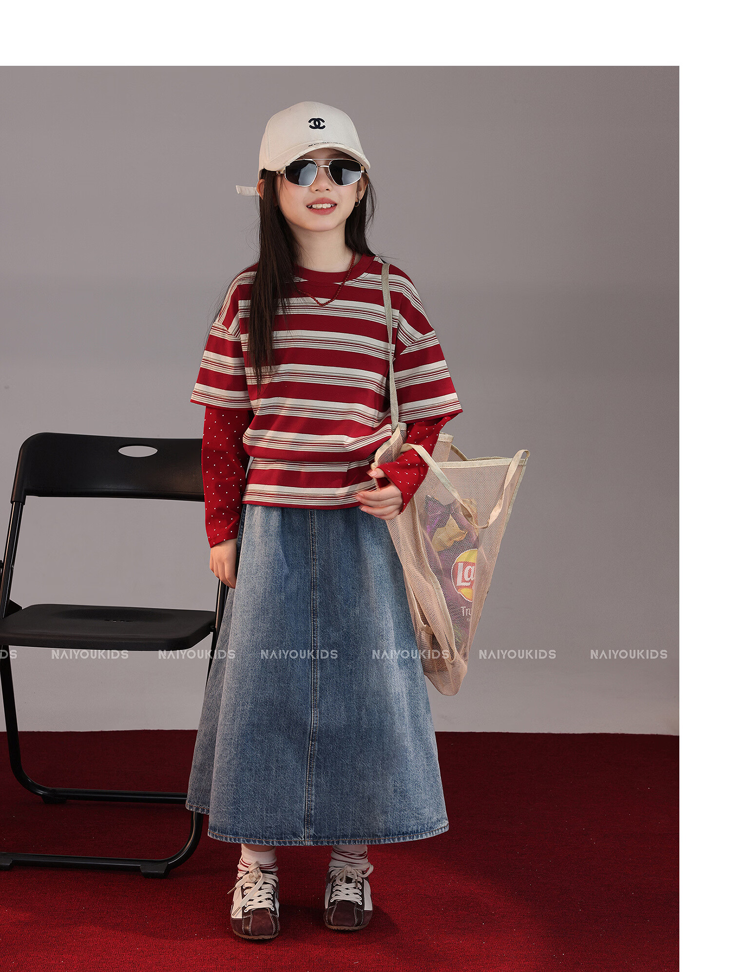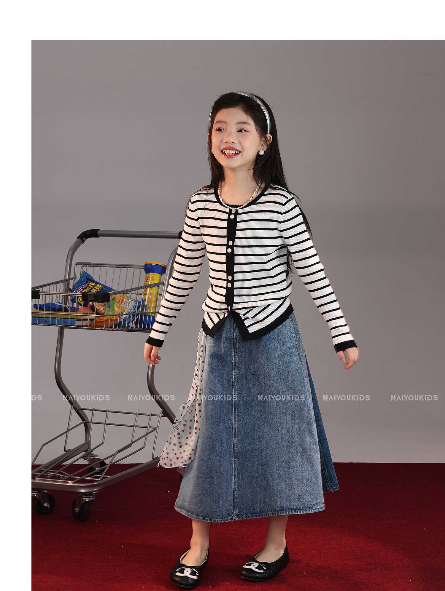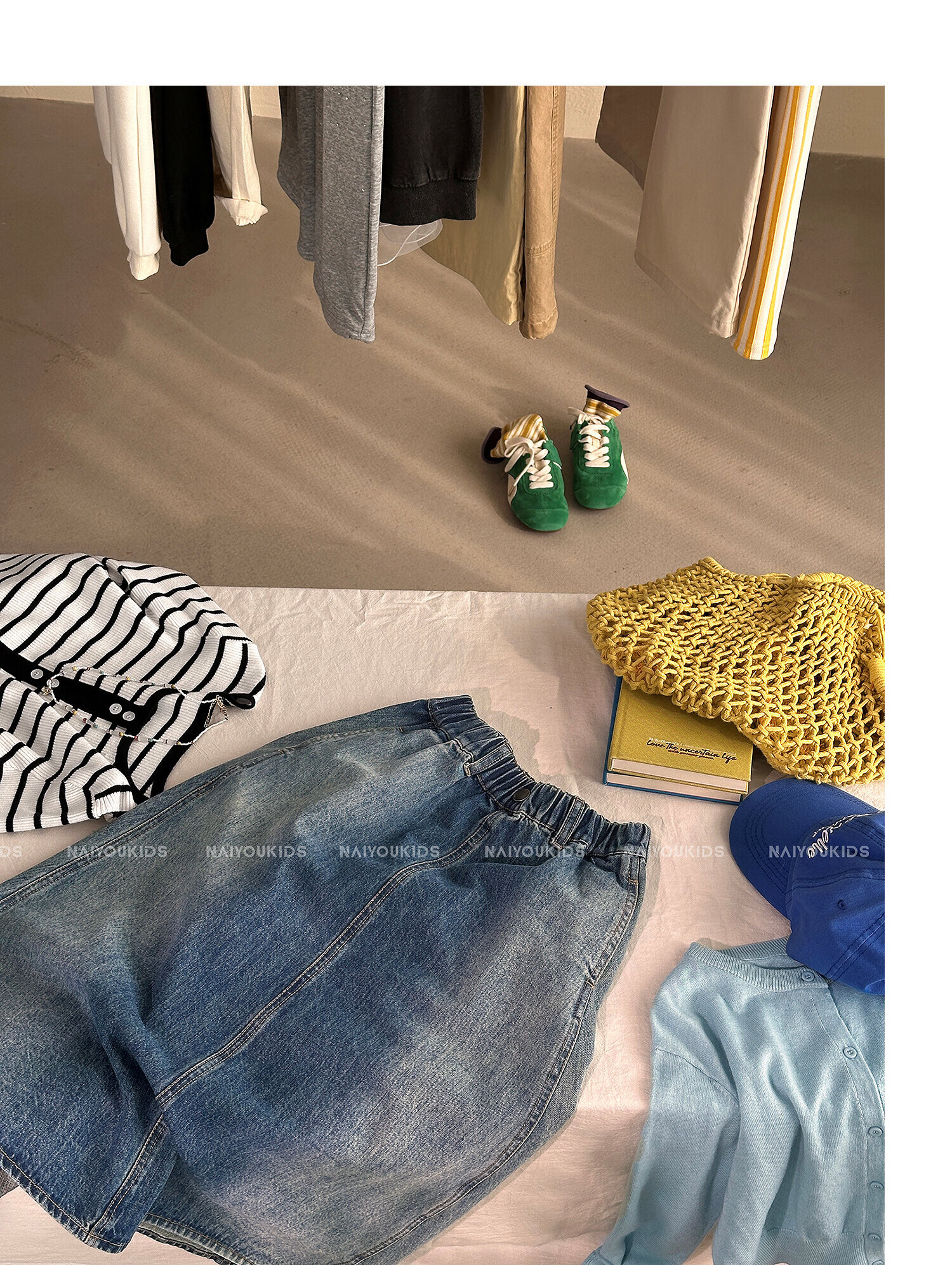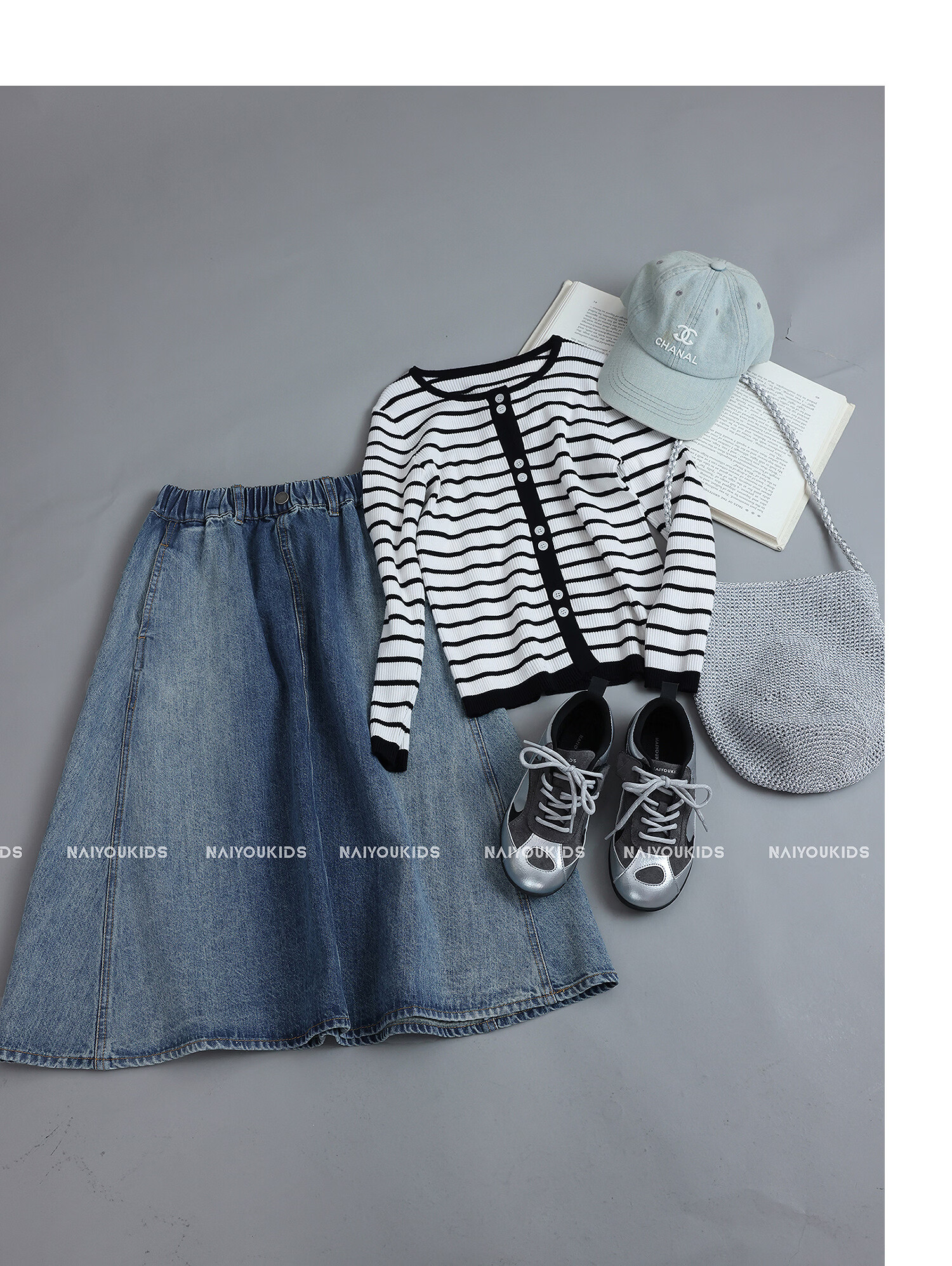 NAIYOUKIDS A-line big swing cream kids children's clothing girls 2026 new spring denim skirt children's short skirt A-line skirt