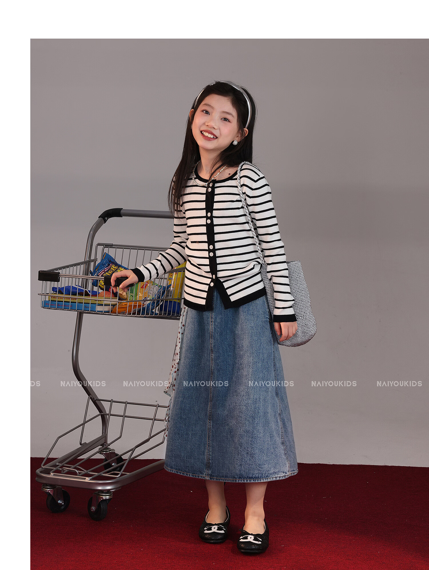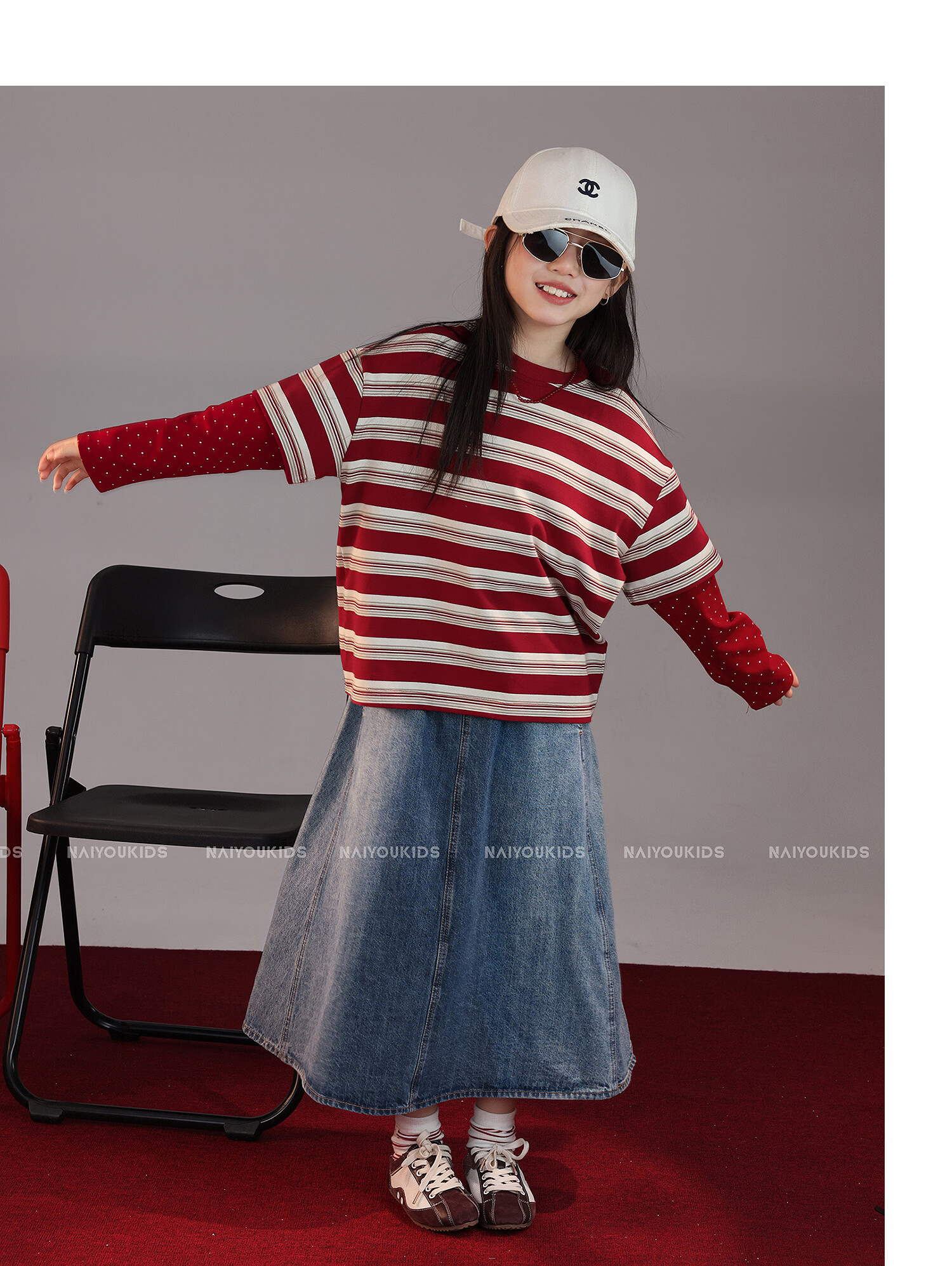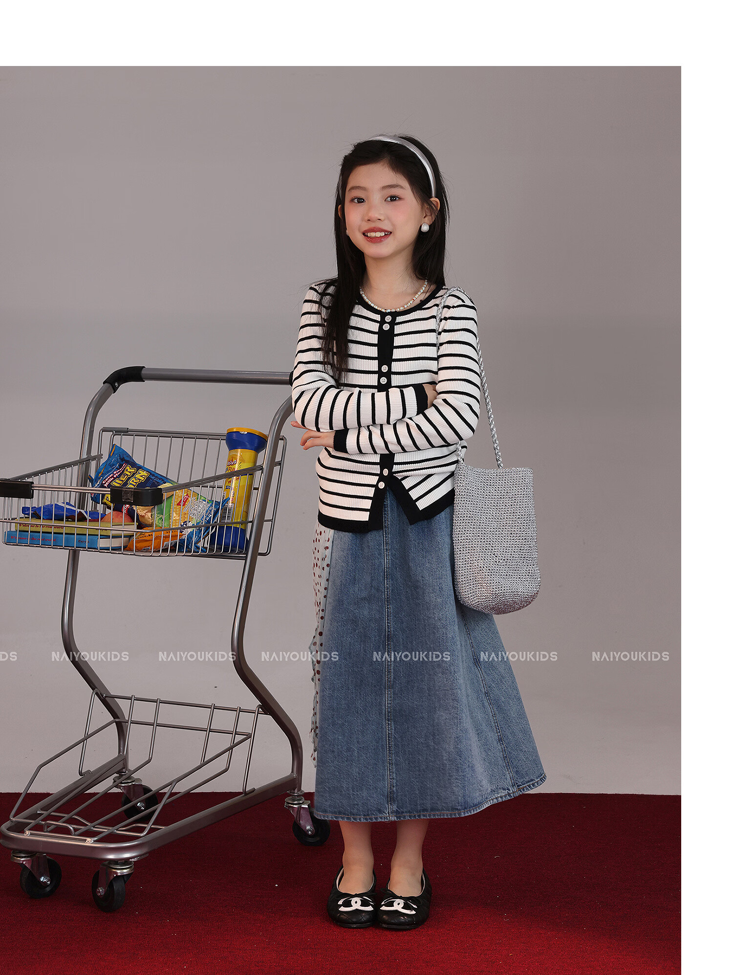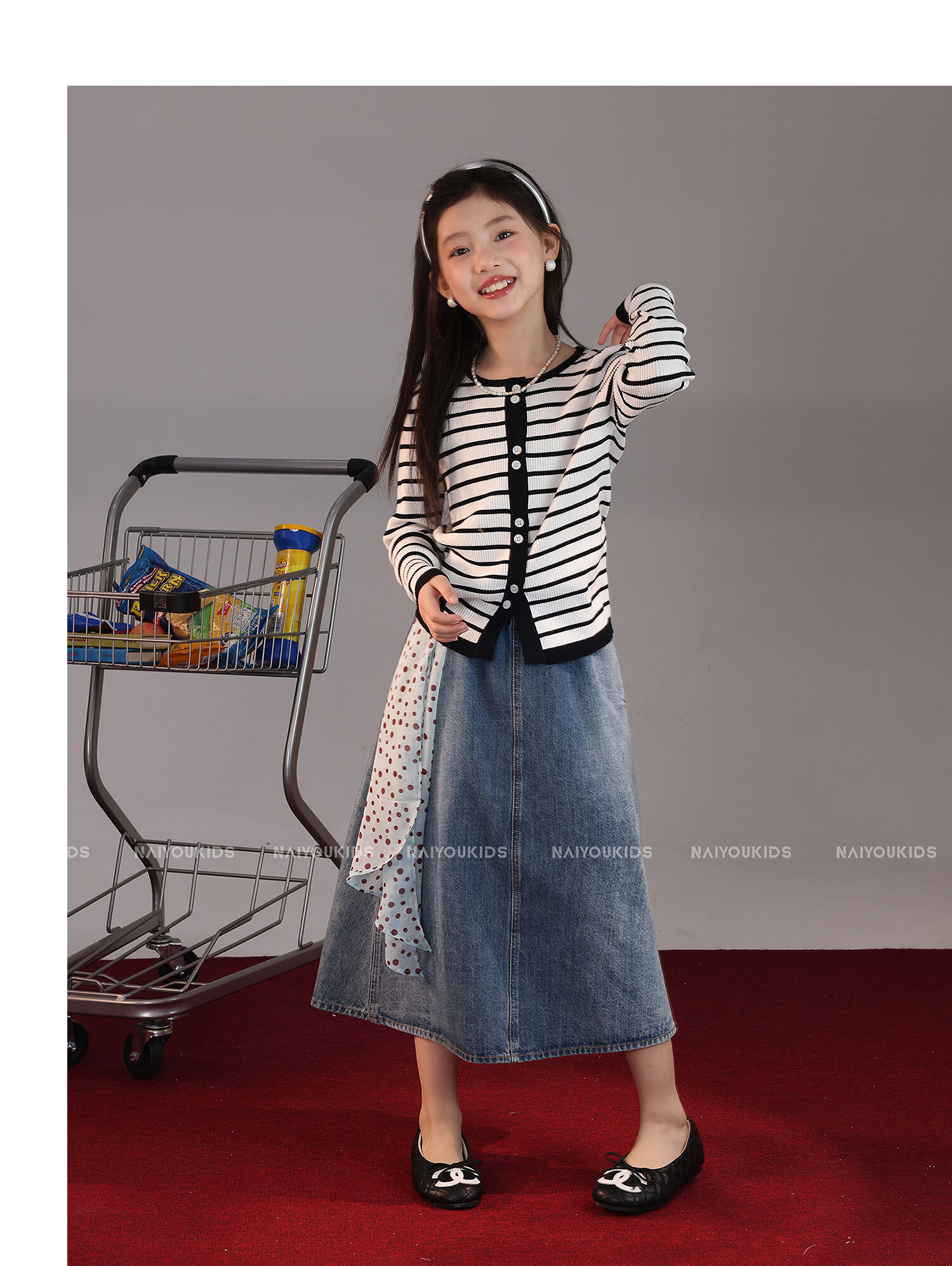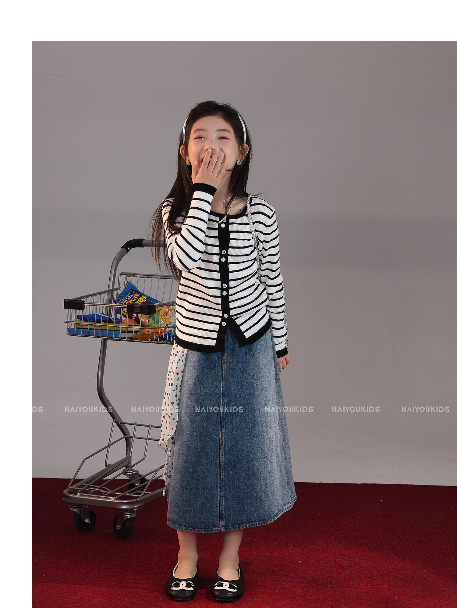 NAIYOUKIDS A-line big swing cream kids children's clothing girls 2026 new spring denim skirt children's short skirt A-line skirt