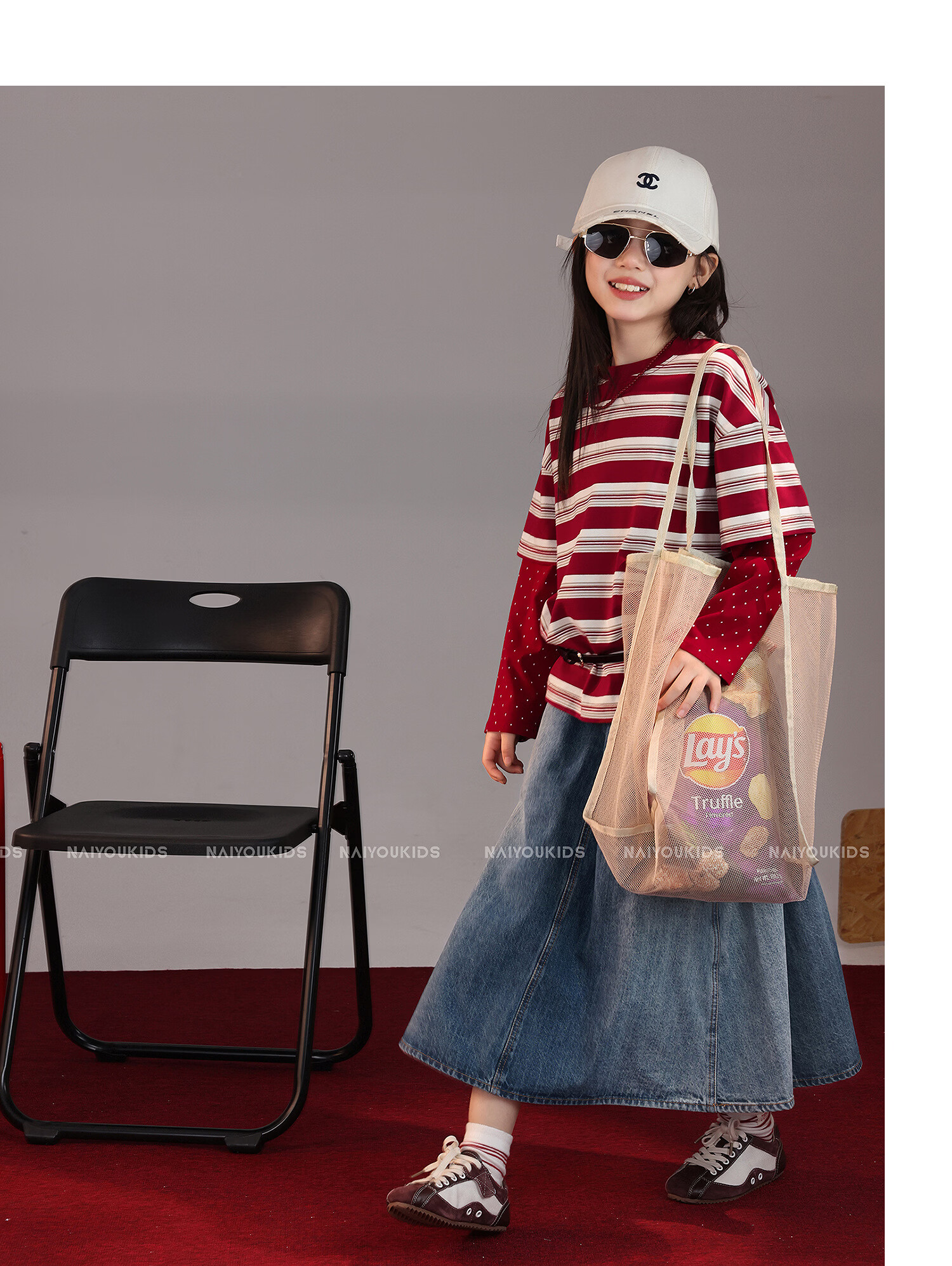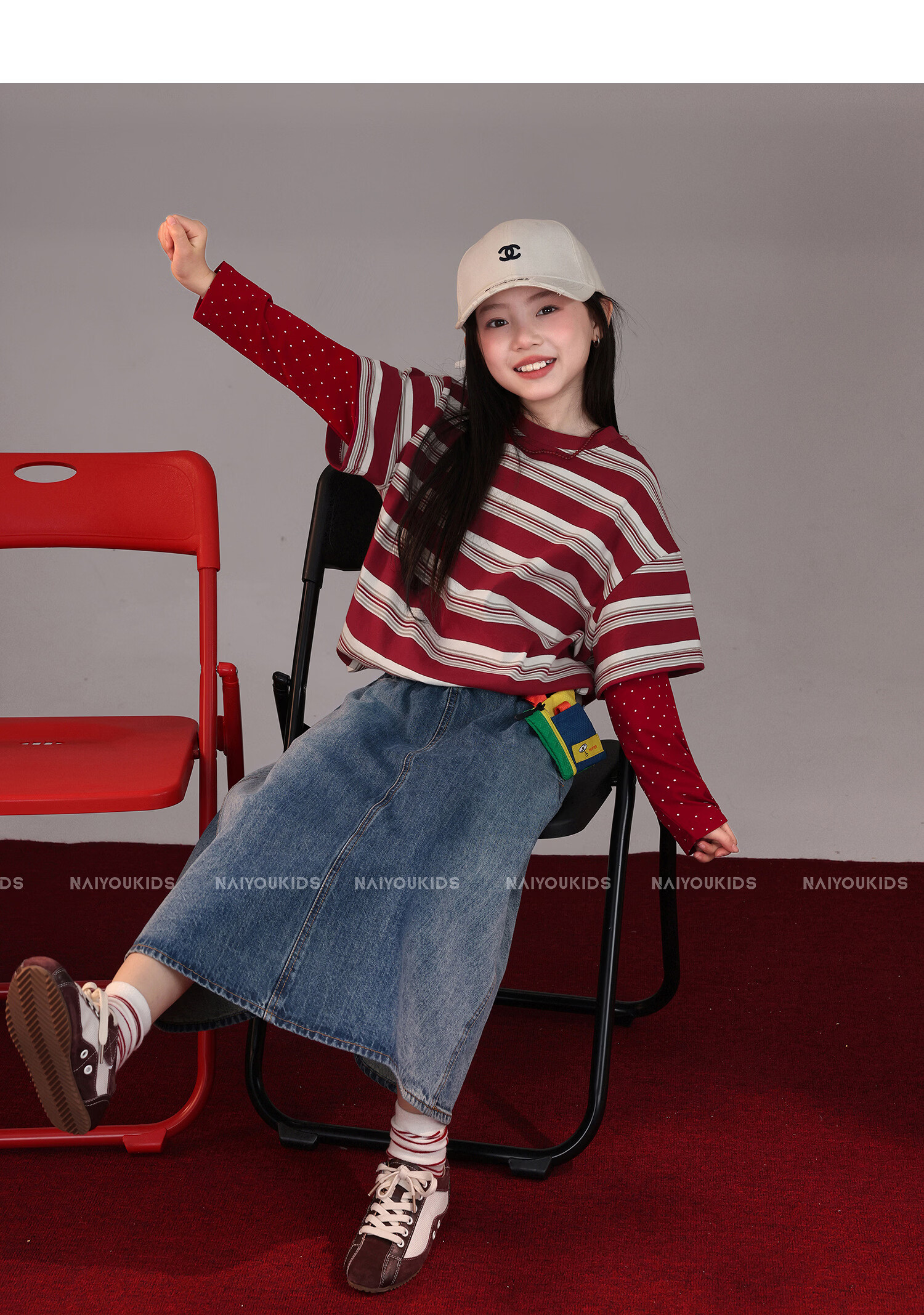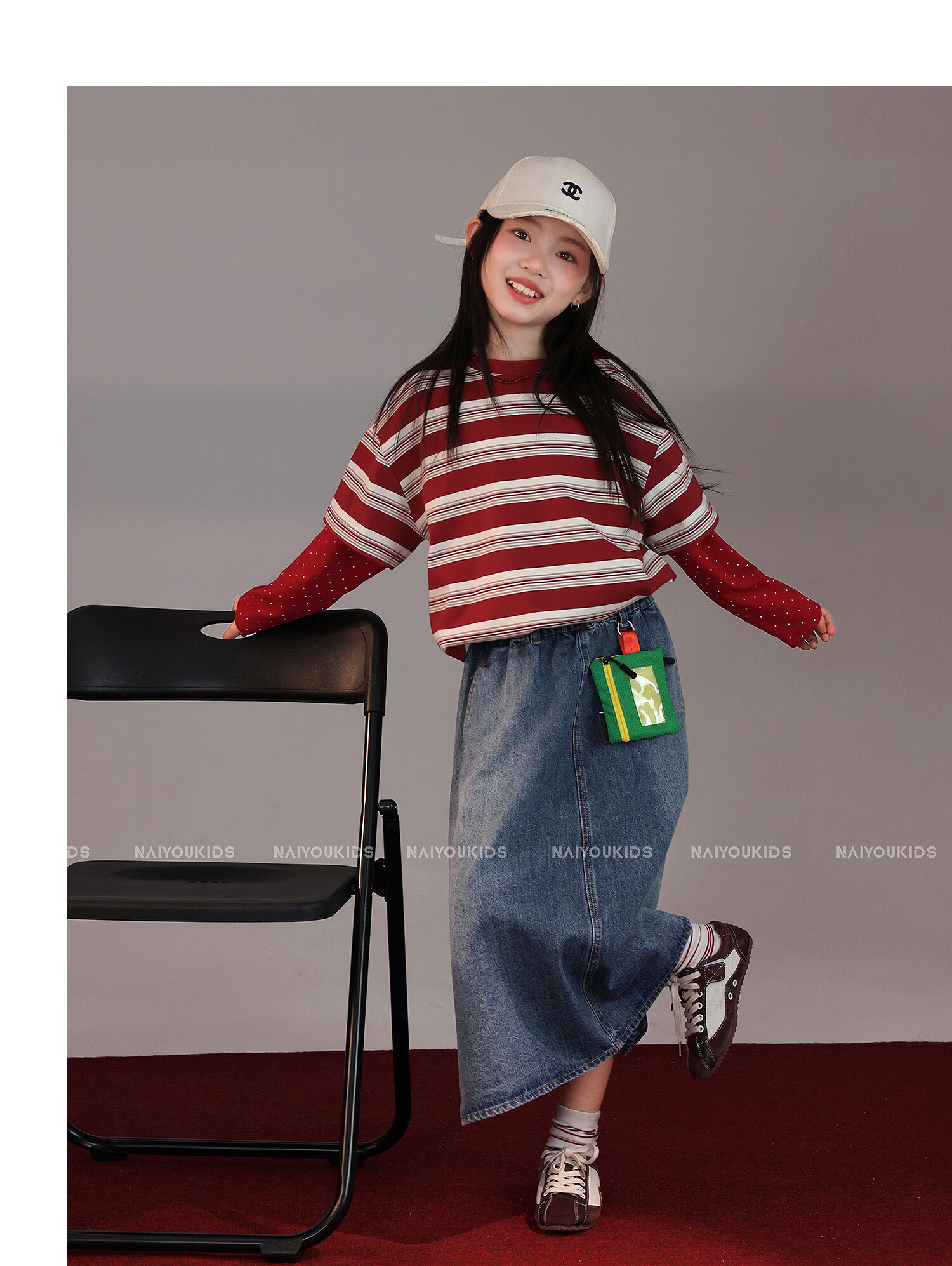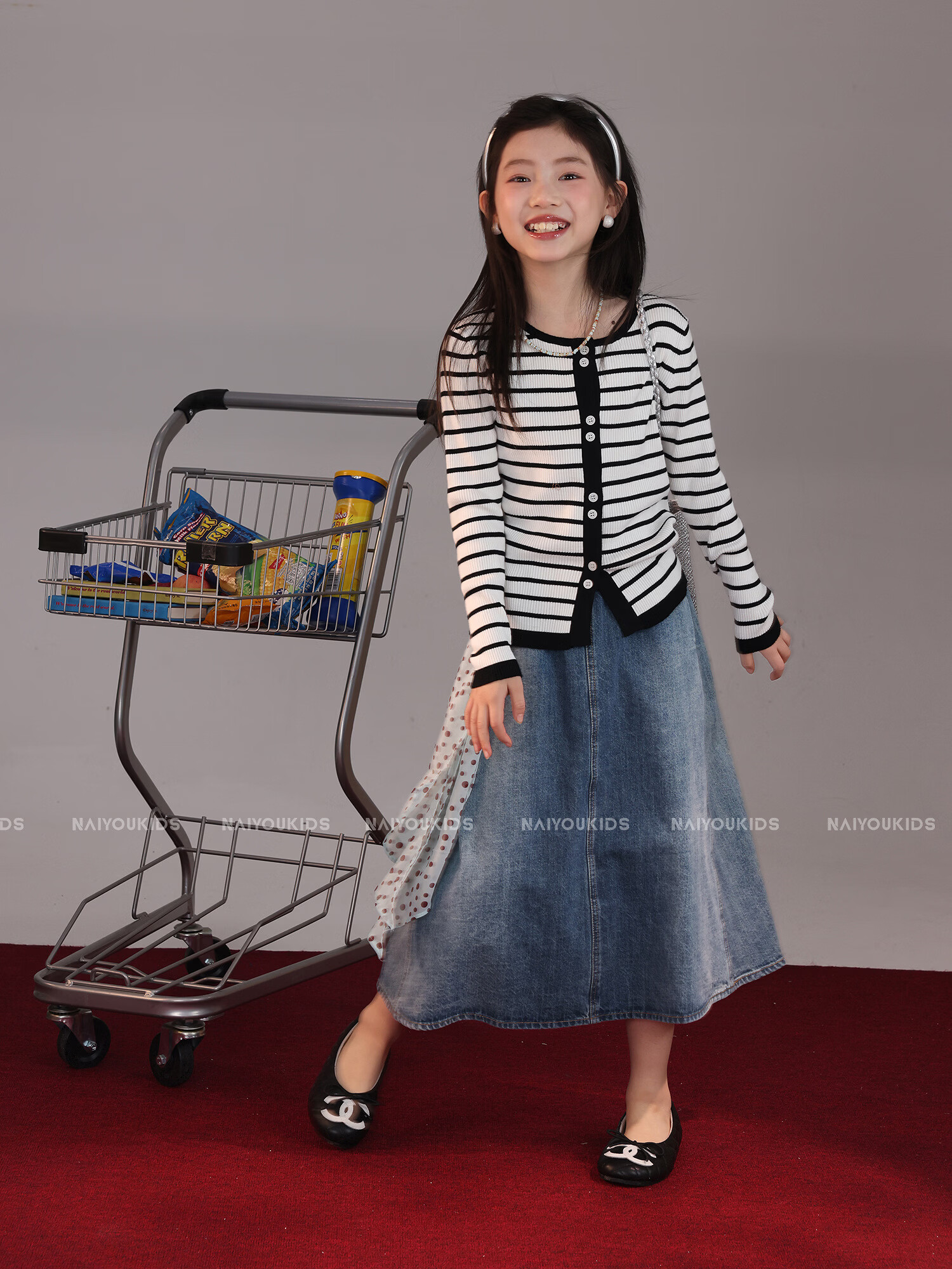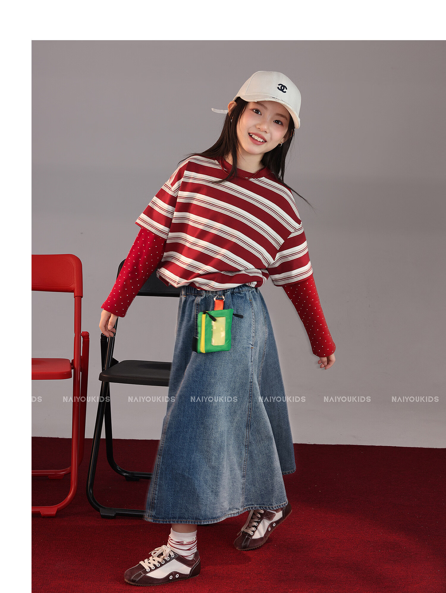 NAIYOUKIDS A-line big swing cream kids children's clothing girls 2026 new spring denim skirt children's short skirt A-line skirt