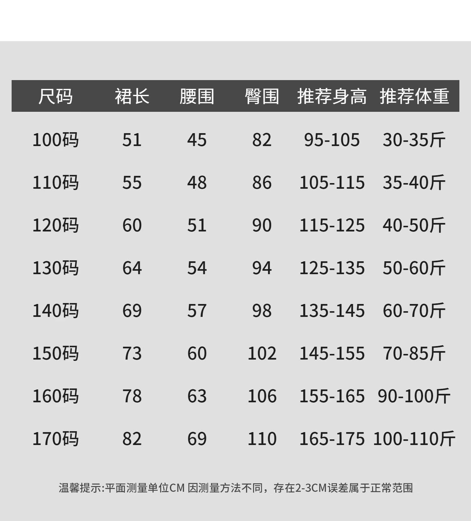 China (cm) 160-165/84-86 165-170 / 88-90 167-172 / 92-96 168-173 / 98-102 170-176 / 106-110