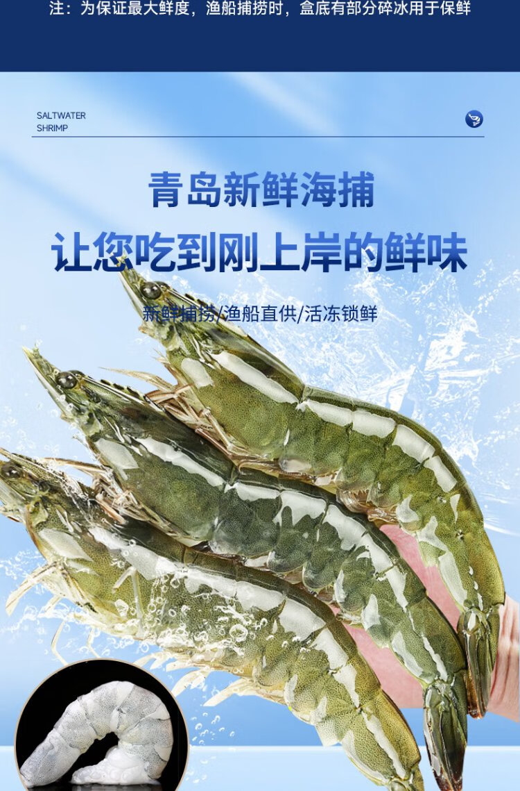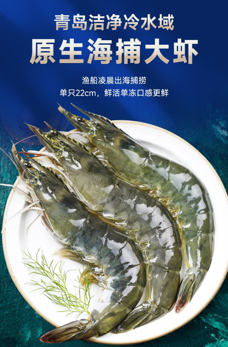 Hunyuan Beast Shrimp Domestic Qingdao Freshly Caught Prawn Extra Large Green Prawn Frozen Sea Shrimp Fresh Shrimp White Shrimp Qingdao Salt Frozen Prawn 3-4Jin Jin equal to 0.5kg (net weight) 15-18cm (recommended by the store manager)