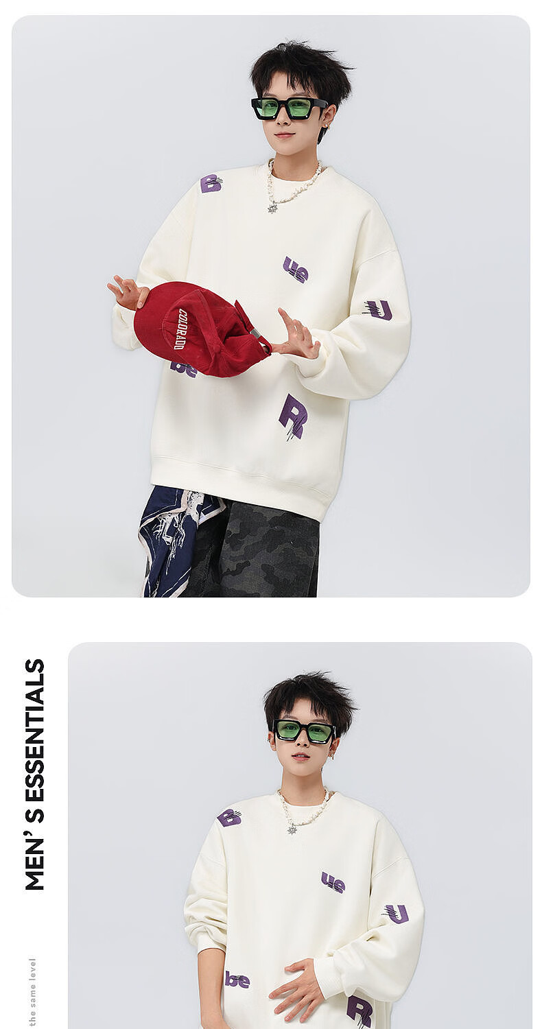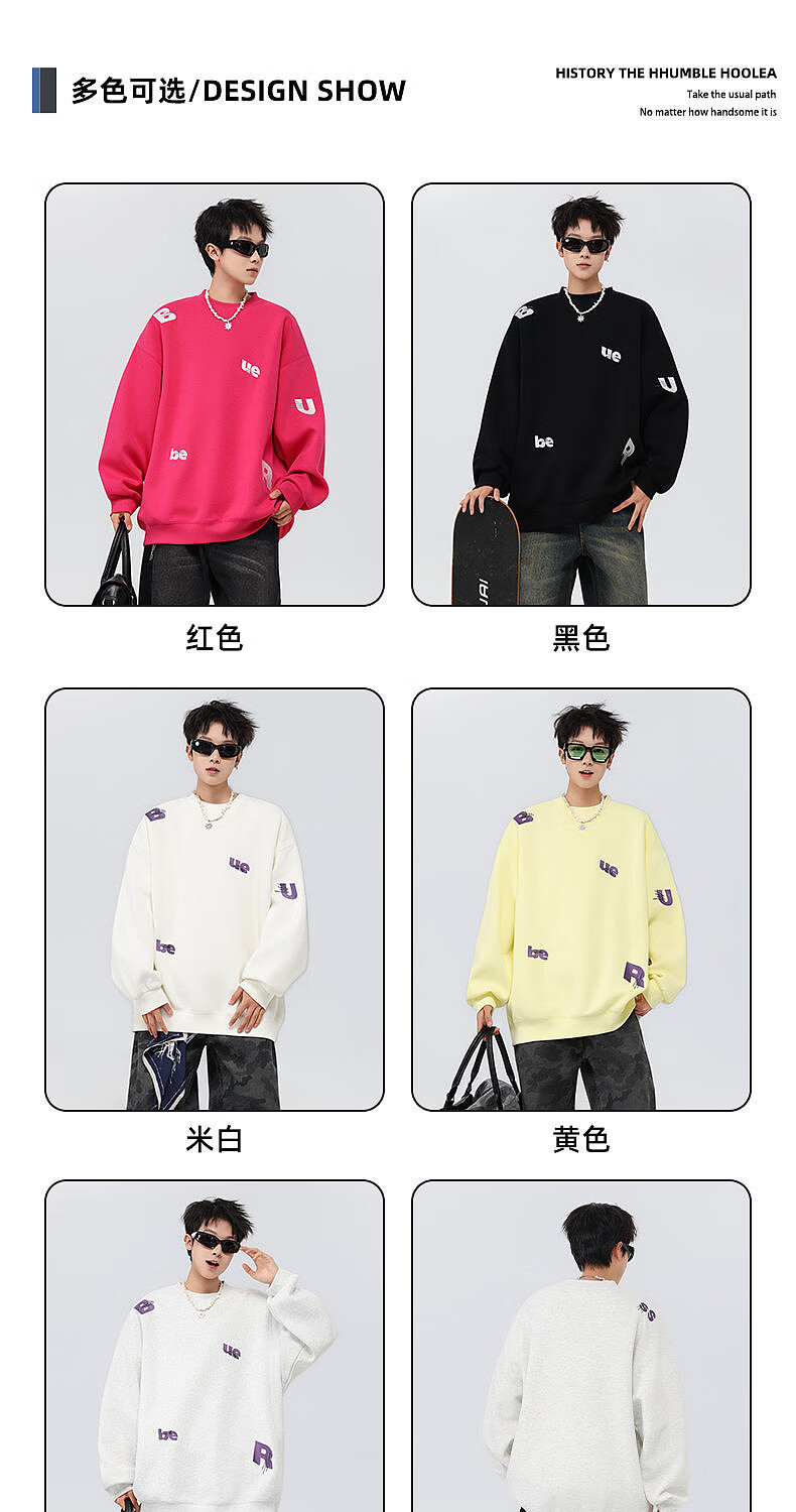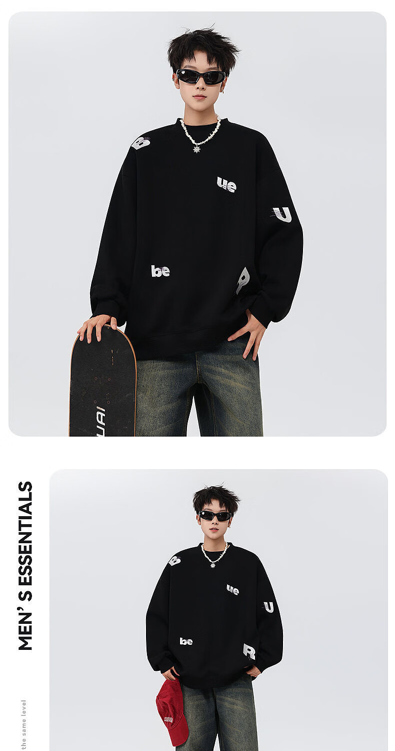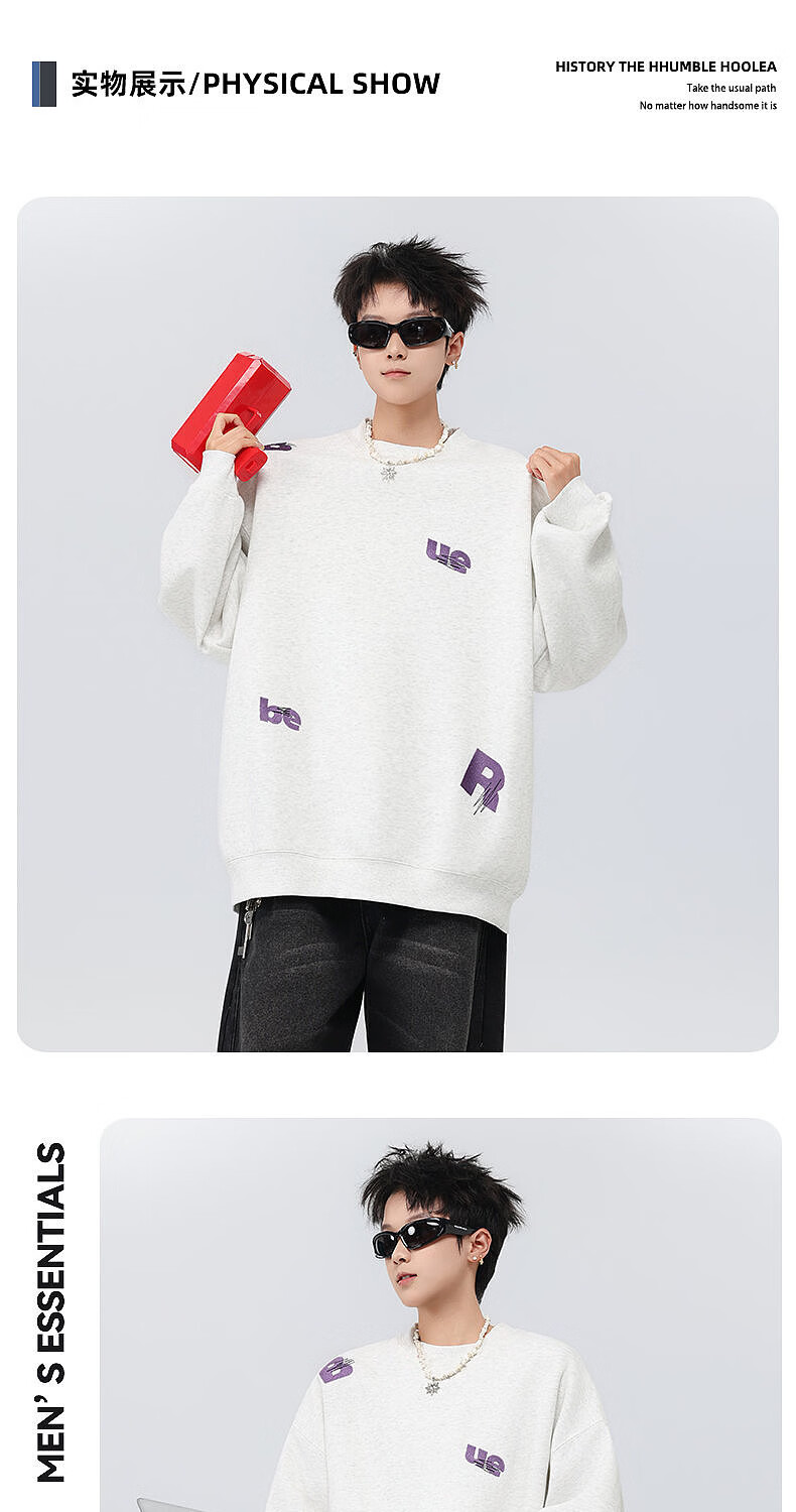 Xiaofu American retro trendy brand handsome heavyweight hooded round neck casual sweatshirt with letters for men in spring and autumn casual tops for couples