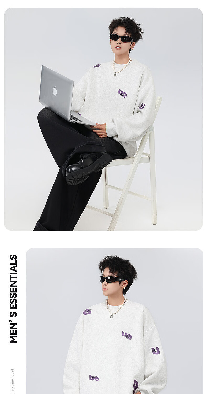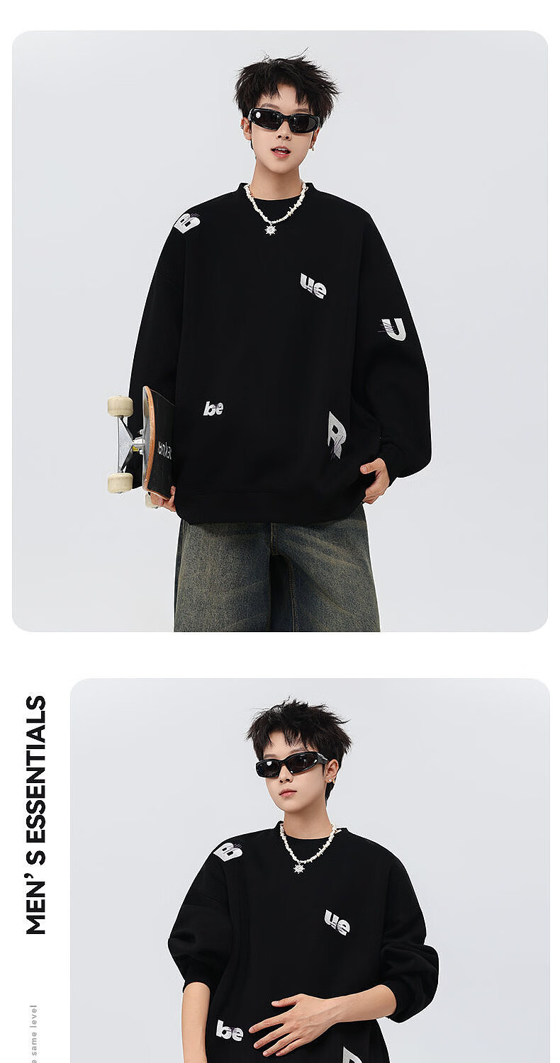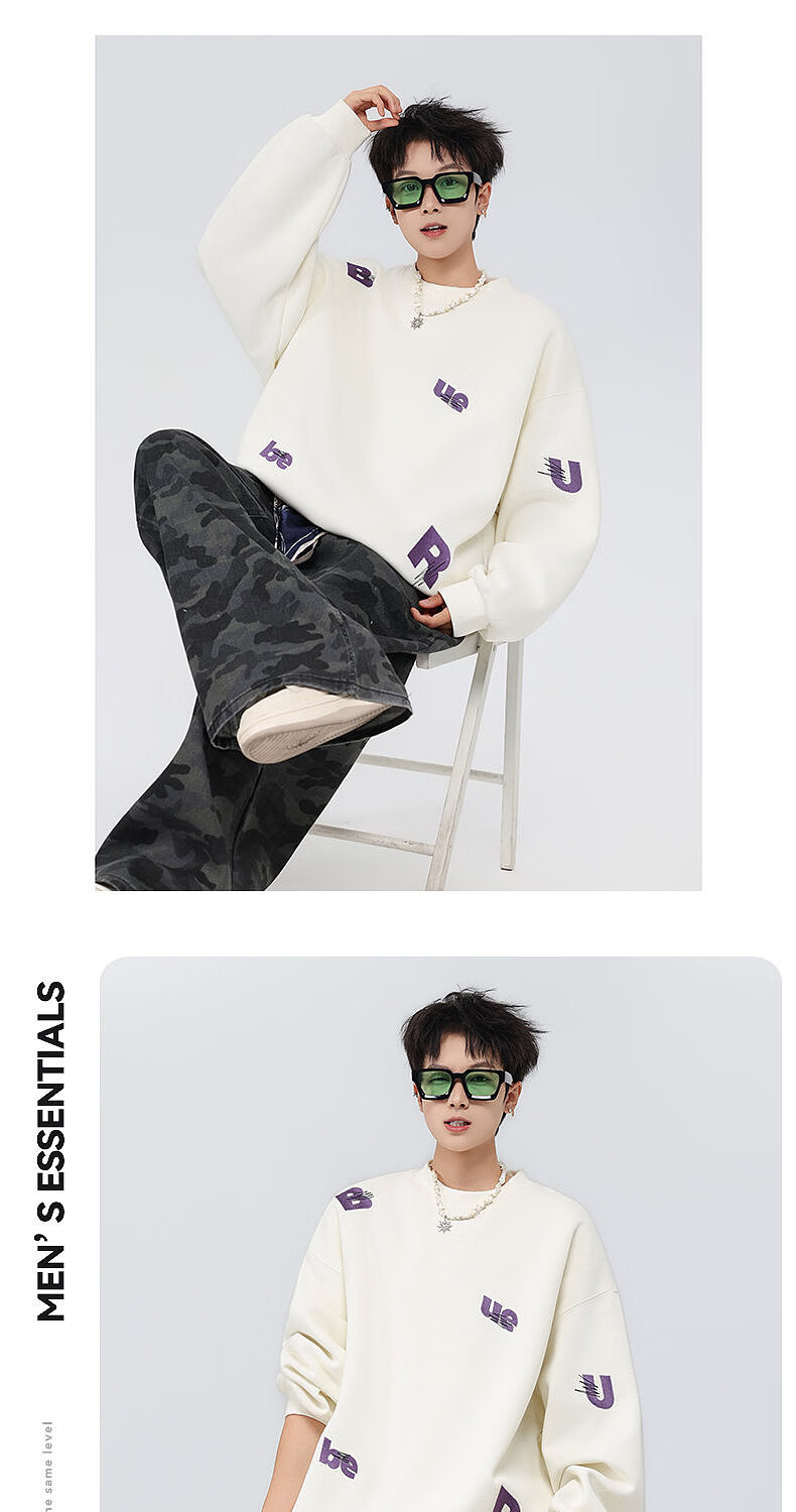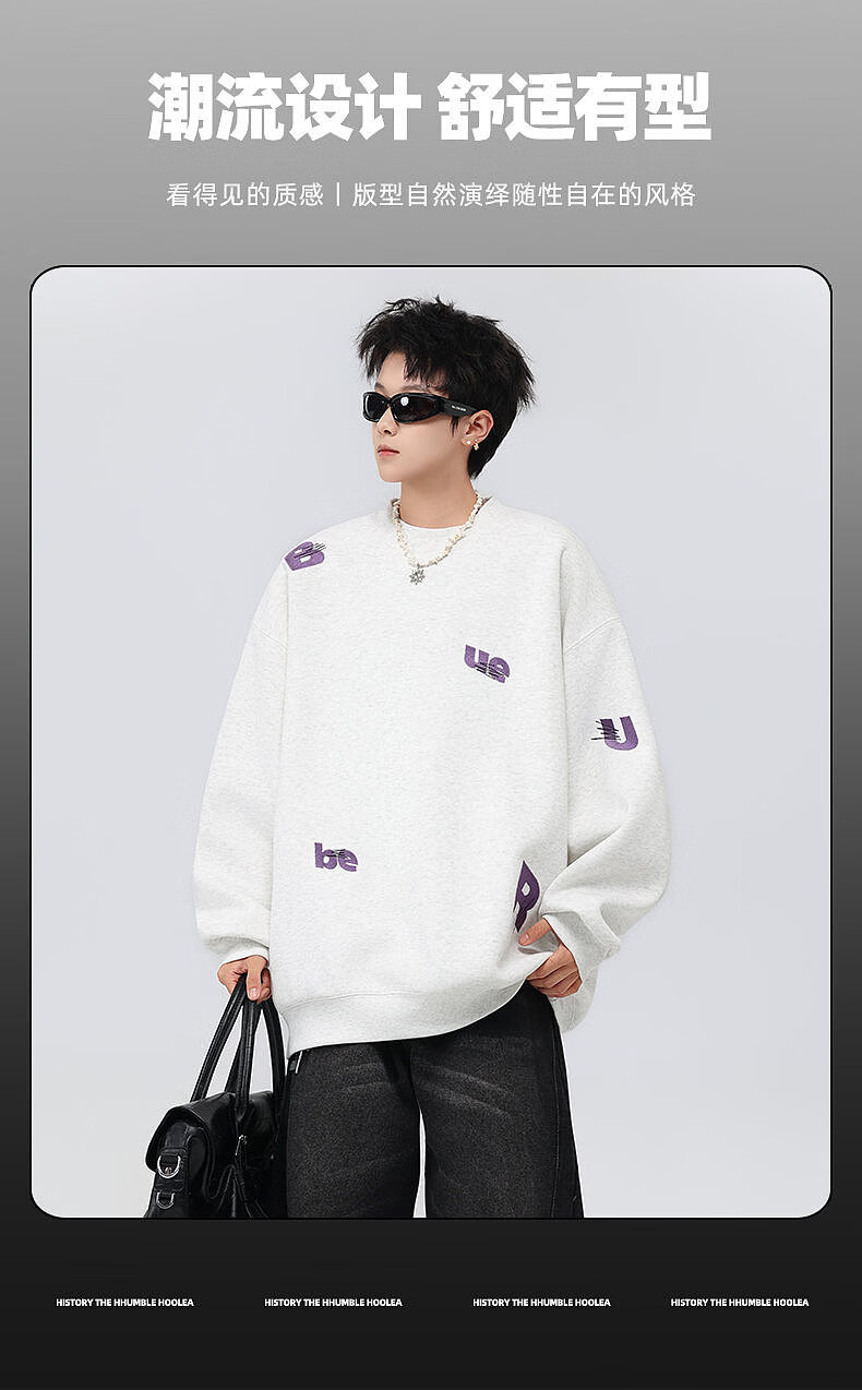 Xiaofu American retro trendy brand handsome heavyweight hooded round neck casual sweatshirt with letters for men in spring and autumn casual tops for couples