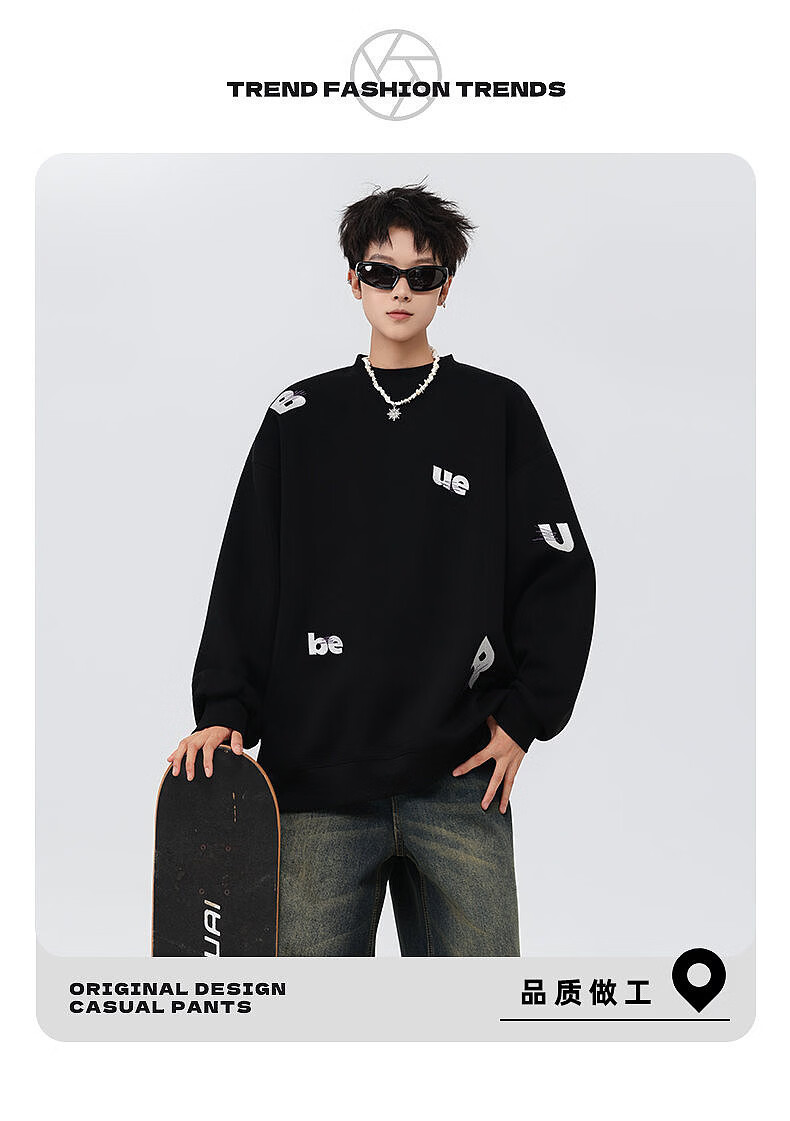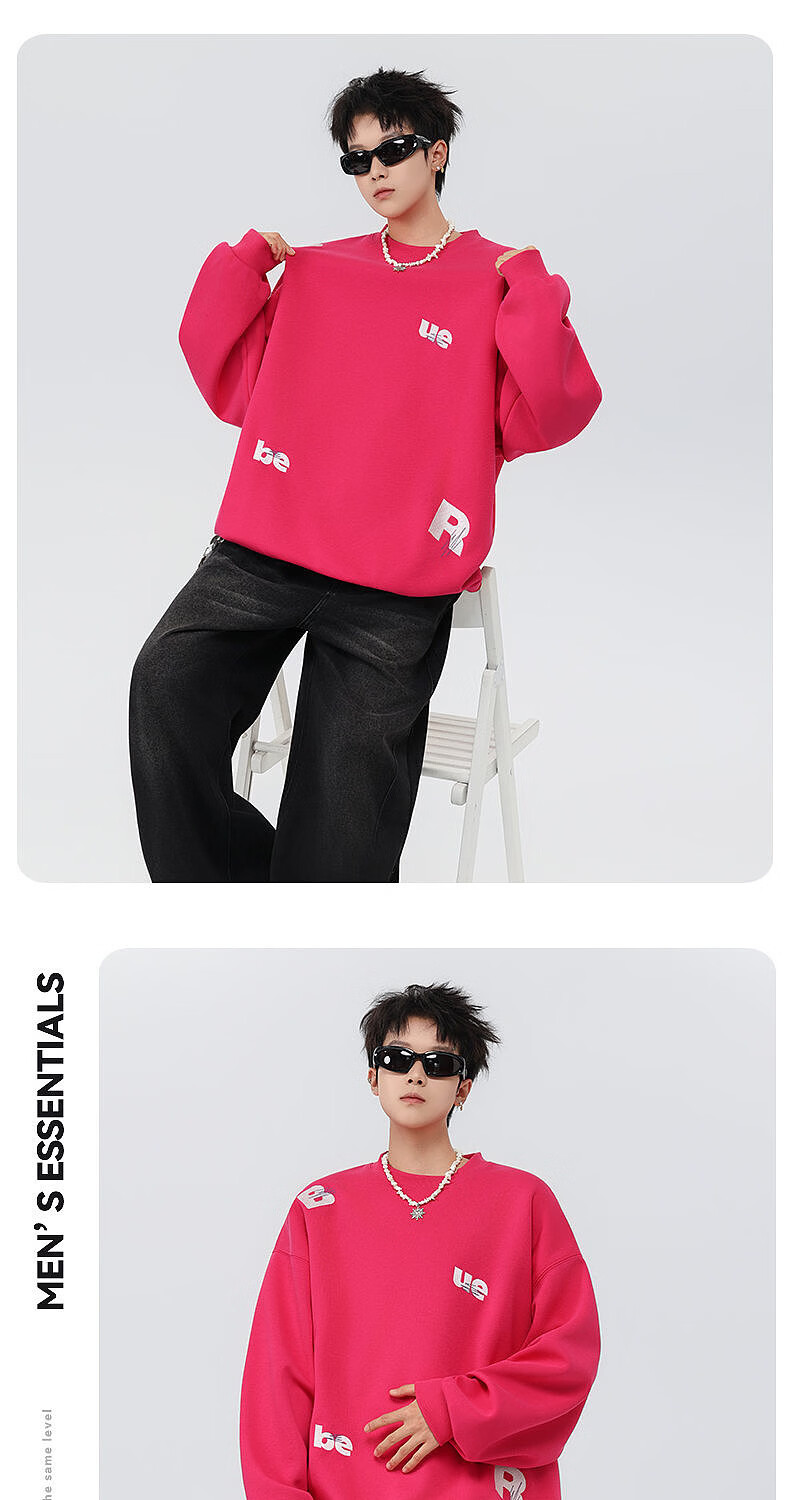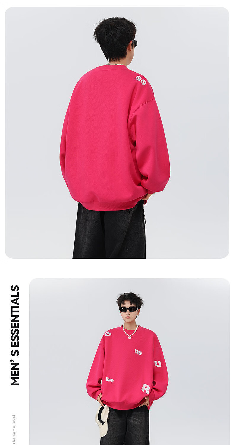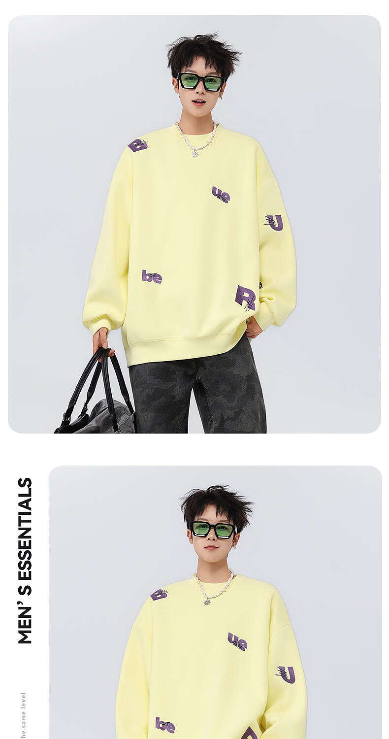 Xiaofu American retro trendy brand handsome heavyweight hooded round neck casual sweatshirt with letters for men in spring and autumn casual tops for couples