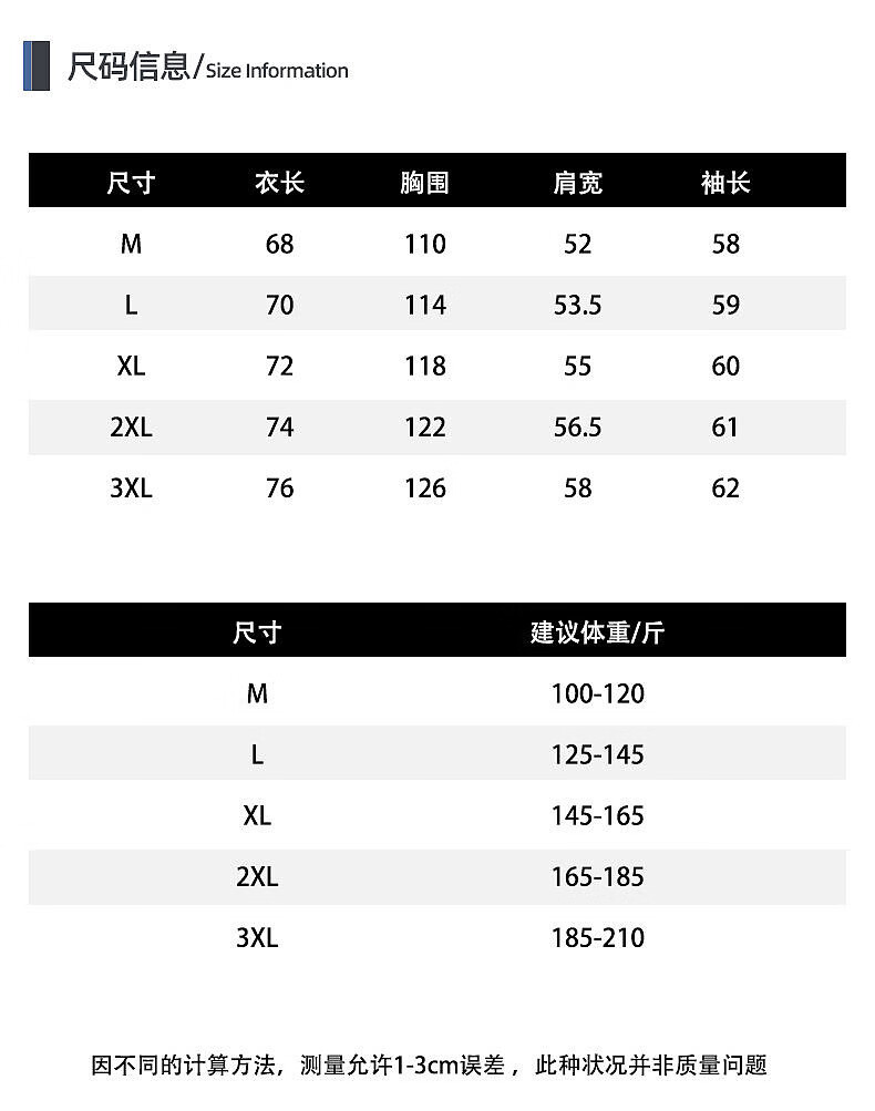 China (cm) 165 / 88-90 170 / 96-98 175 / 108-110 180 / 118-122 185 / 126-130