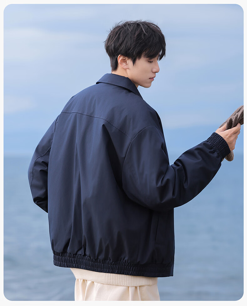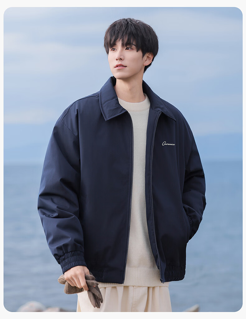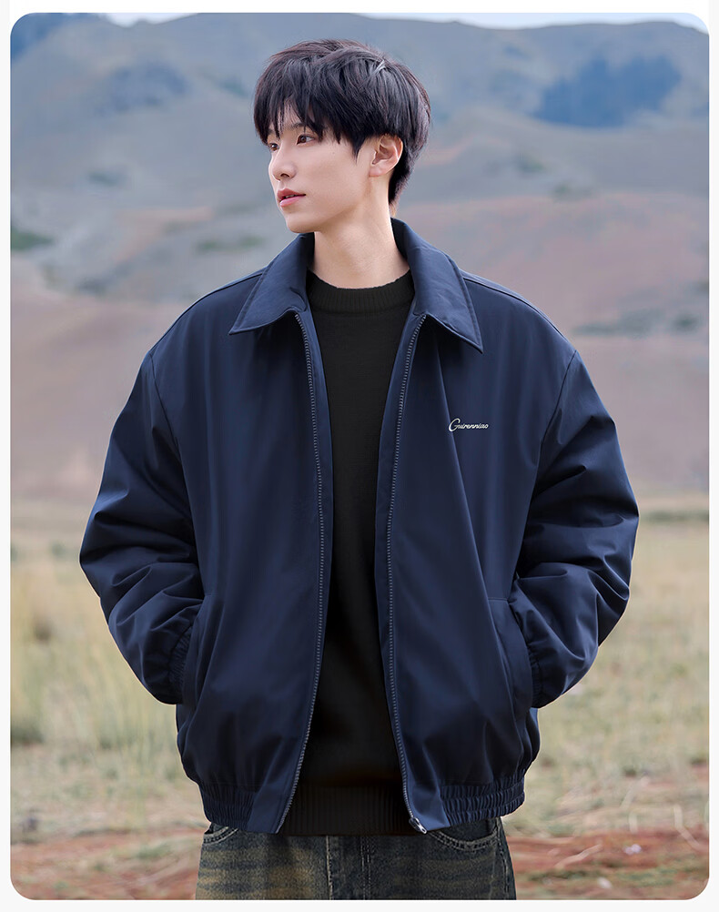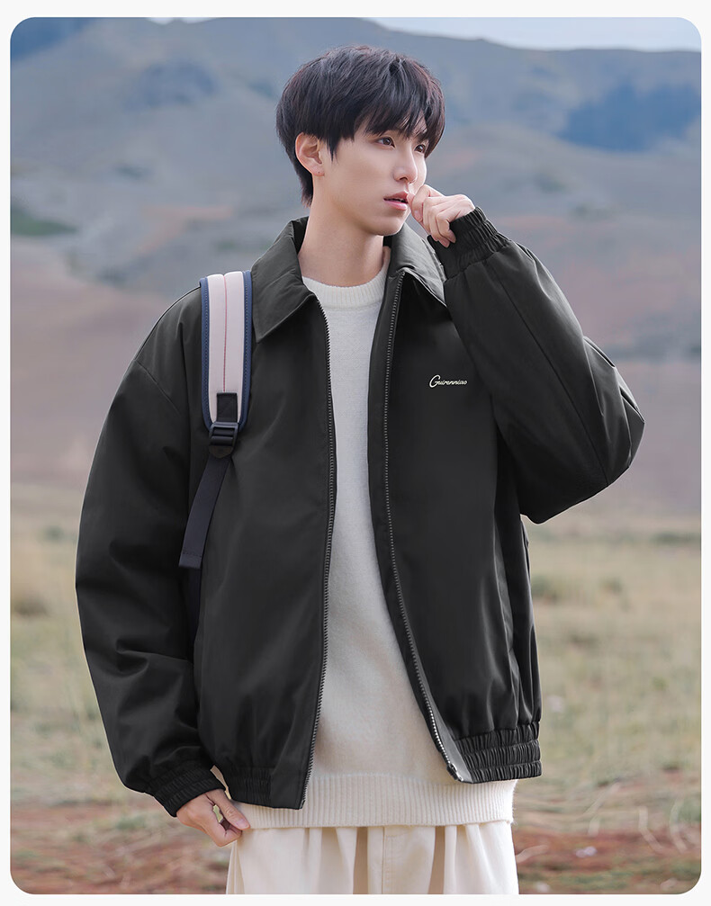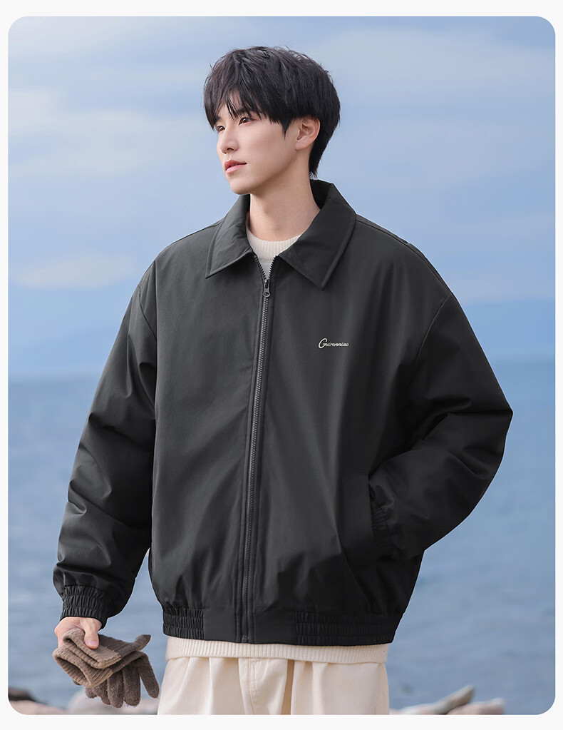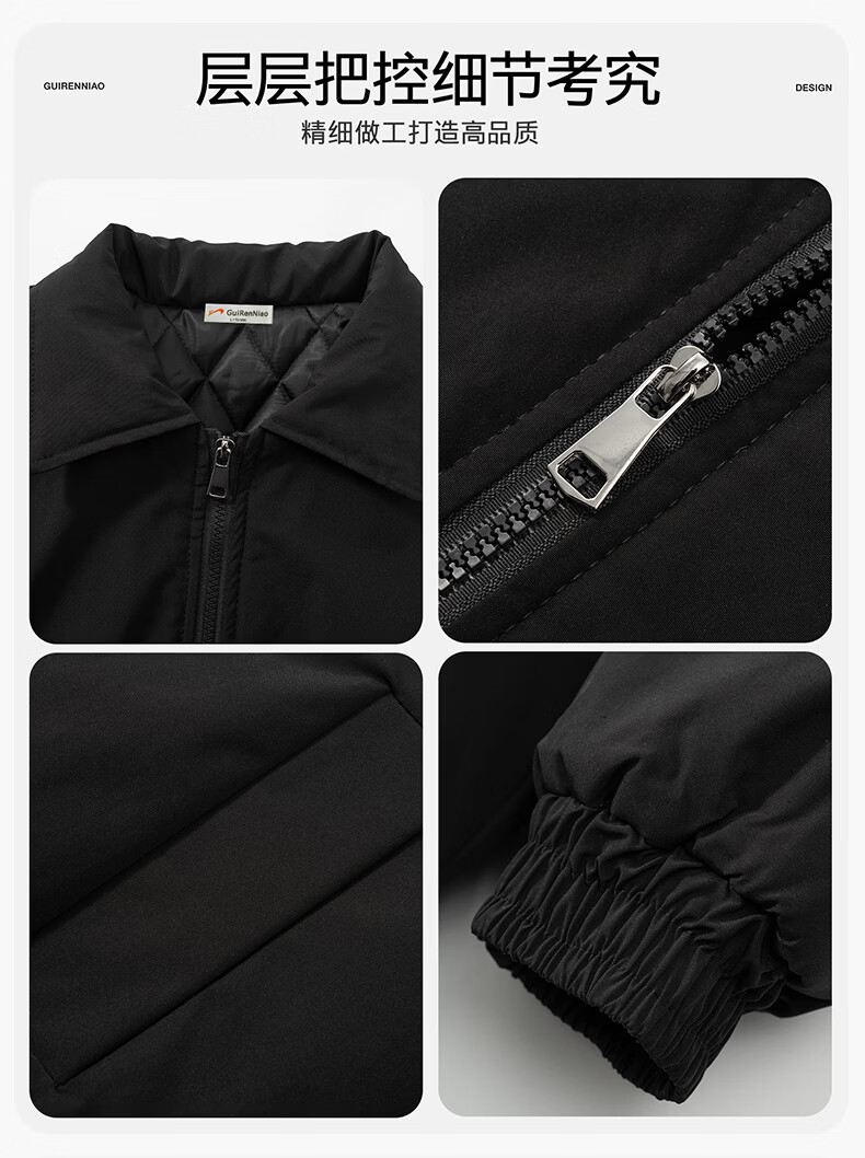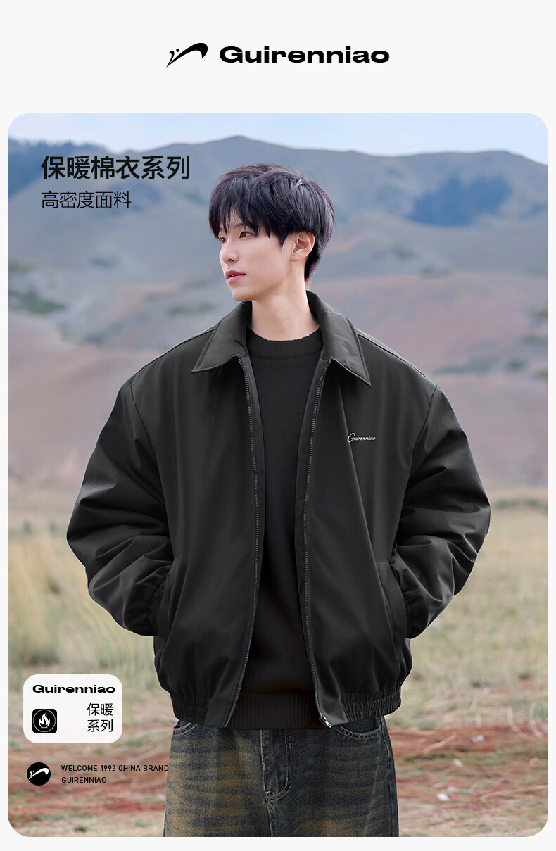 Guireniao American Fashion Cotton Clothes Men's Lapel Jacket-style Cotton Clothes Outdoor Warm Casual Tops Black M